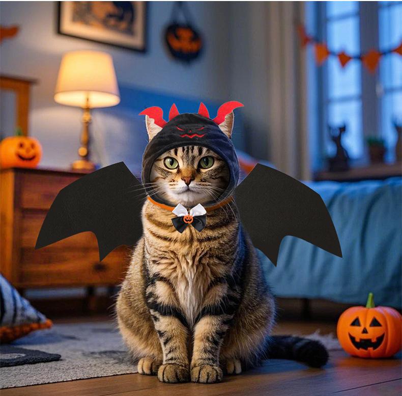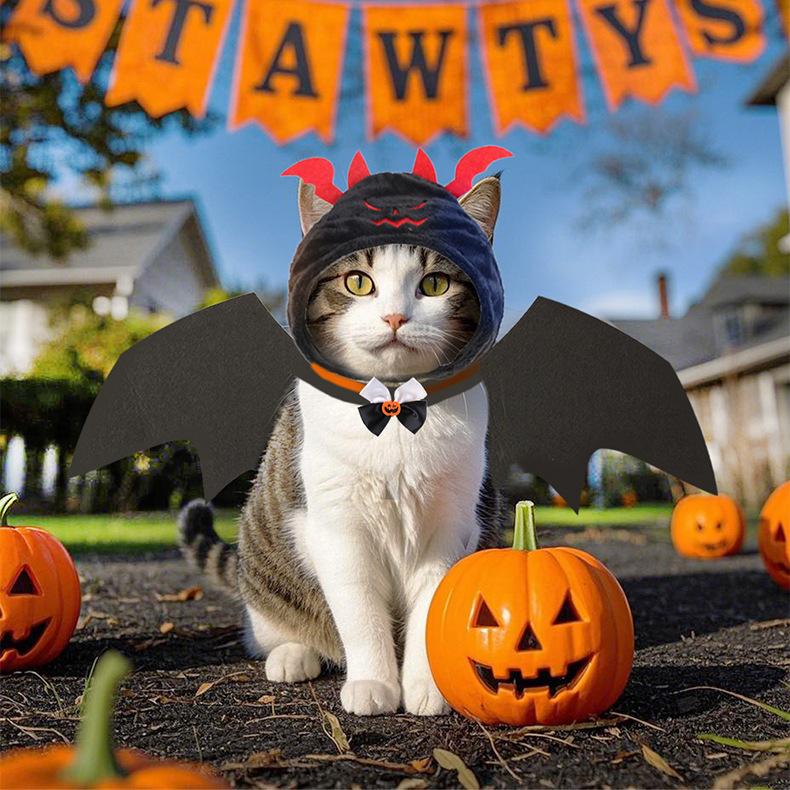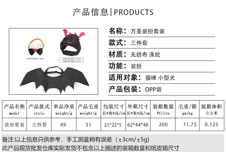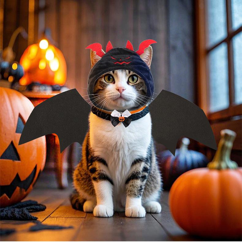 Nuevo Set de Tres Piezas Transfronterizo Alas de Gato Diablo Capucha Pajarita de Calabaza Set de Capucha Disfraz de Transformación de Halloween