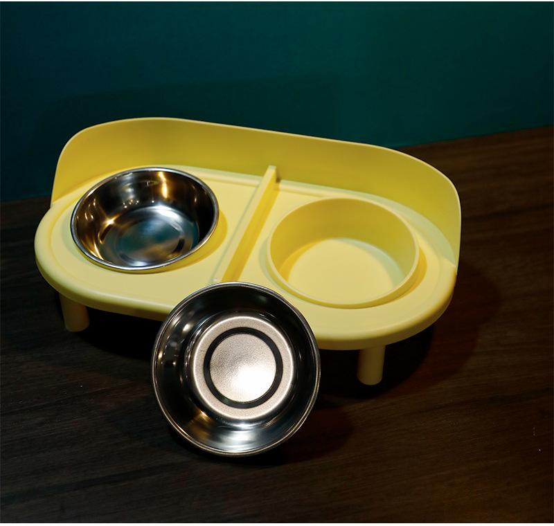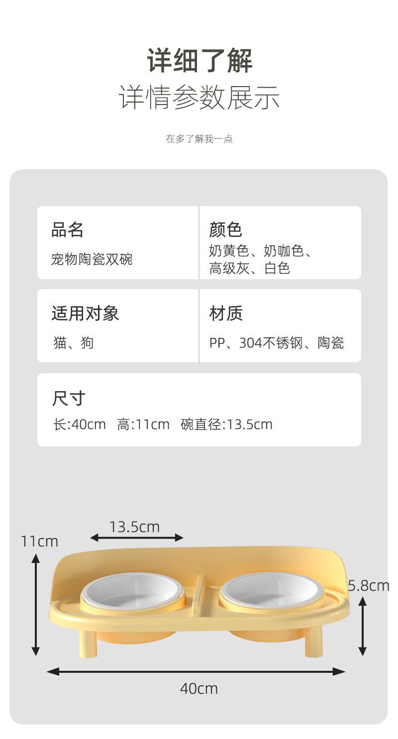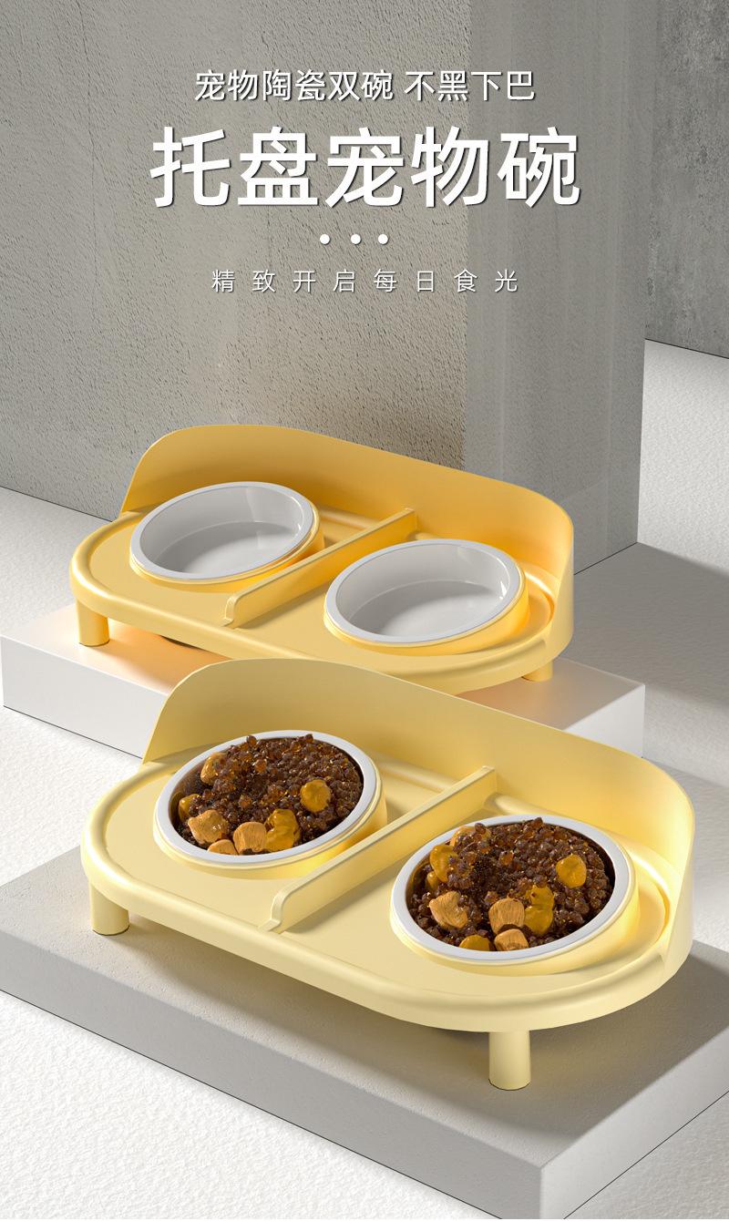 Nuevo Cuenco de Cerámica para Gatos Mascota Elevado Medio Cuenco Protección para el Cuello Doble Cuenco Cuenco para Comida Gato y Perro Universal Cuenco para Agua Antivuelco Mascota