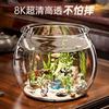 Pecera para Peces Betta, Tanque de Vidrio Pequeño Perezoso Ultra Transparente, Adorno de Escritorio Creativo para Sala de Estar, Luz Decorativa de Alta Gama