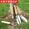 Herramientas de Jardín Mango de Madera Juego de Tres Piezas Pala Redonda Pala Cuadrada Rastrillo Planta Suculenta Jardinería de Hortalizas Herramientas de Jardinería