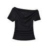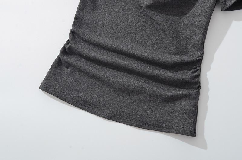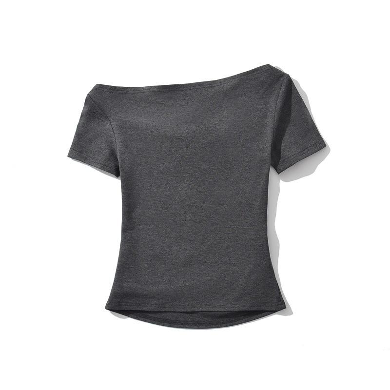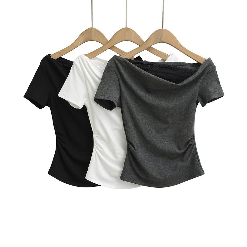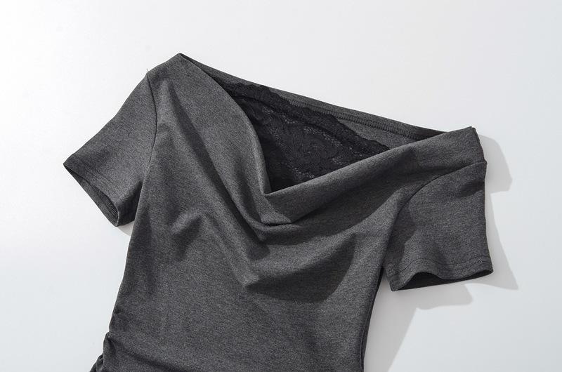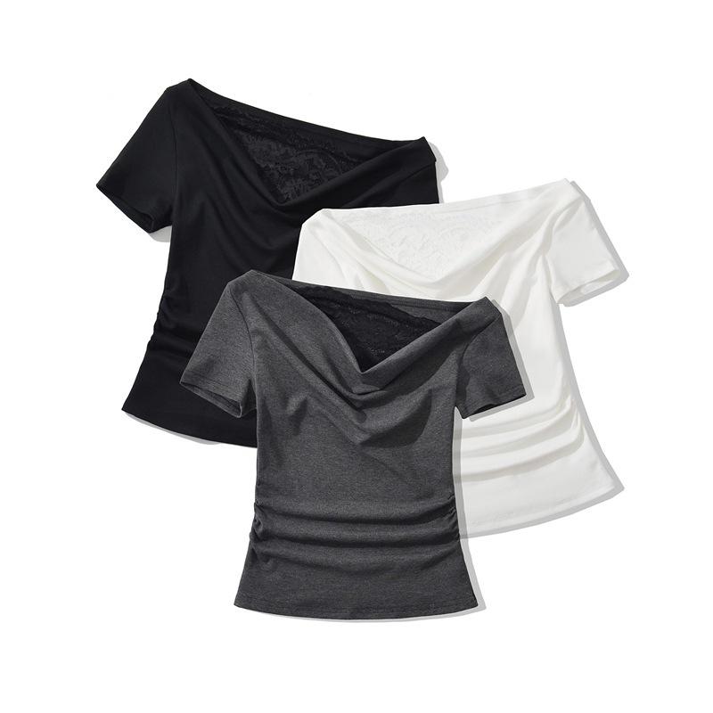 Compra Sexy Camiseta de Manga Corta con Encaje Empalmado, Hombro Descubierto, Cuello Caído, Ajustada, Elástica, Estilo Europeo y Americano, Verano, Top de Manga Corta para Mujer al por mayor en Joom.pro