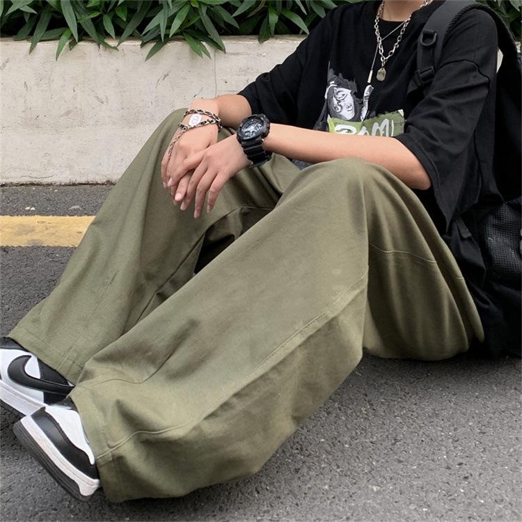 Pantalones Cargo Casuales para Hombre Primavera y Otoño Estilo Harajuku Hong Kong Ins Modernos Calle Rectos Sueltos Deportivos Pierna Ancha