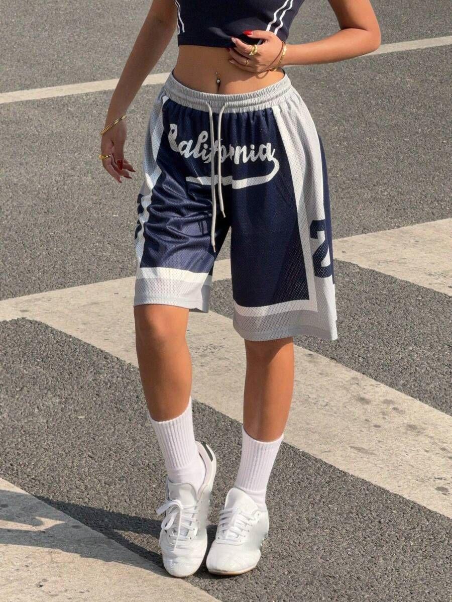 Shorts casuales americanos para hombres y mujeres, pantalones deportivos y de ocio, pantalones rectos holgados transpirables de malla hasta la rodilla