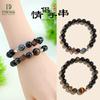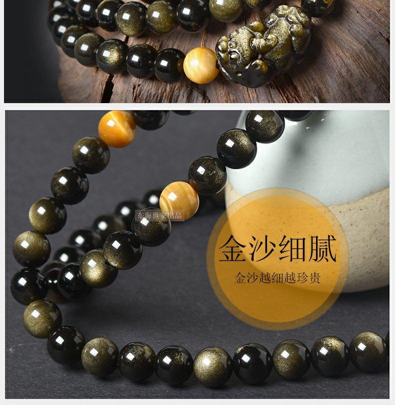 Pulsera de Obsidiana para Hombre y Mujer Ojos Coloridos Cuentas Negras Deslumbrantes Cristal para Parejas Pulsera de Obsidiana Dorada