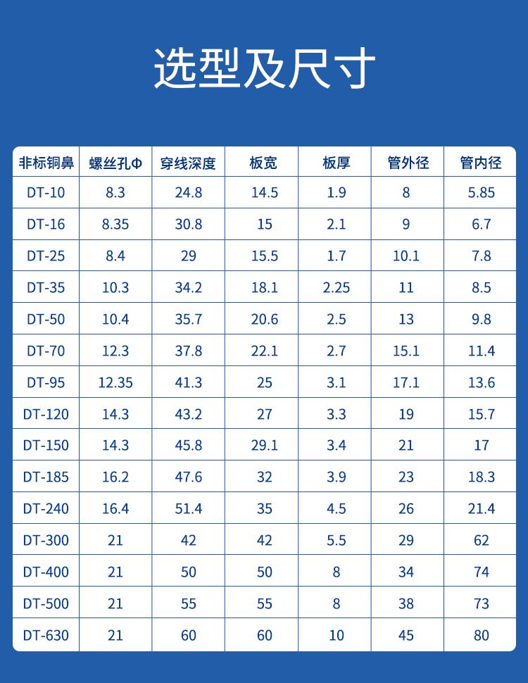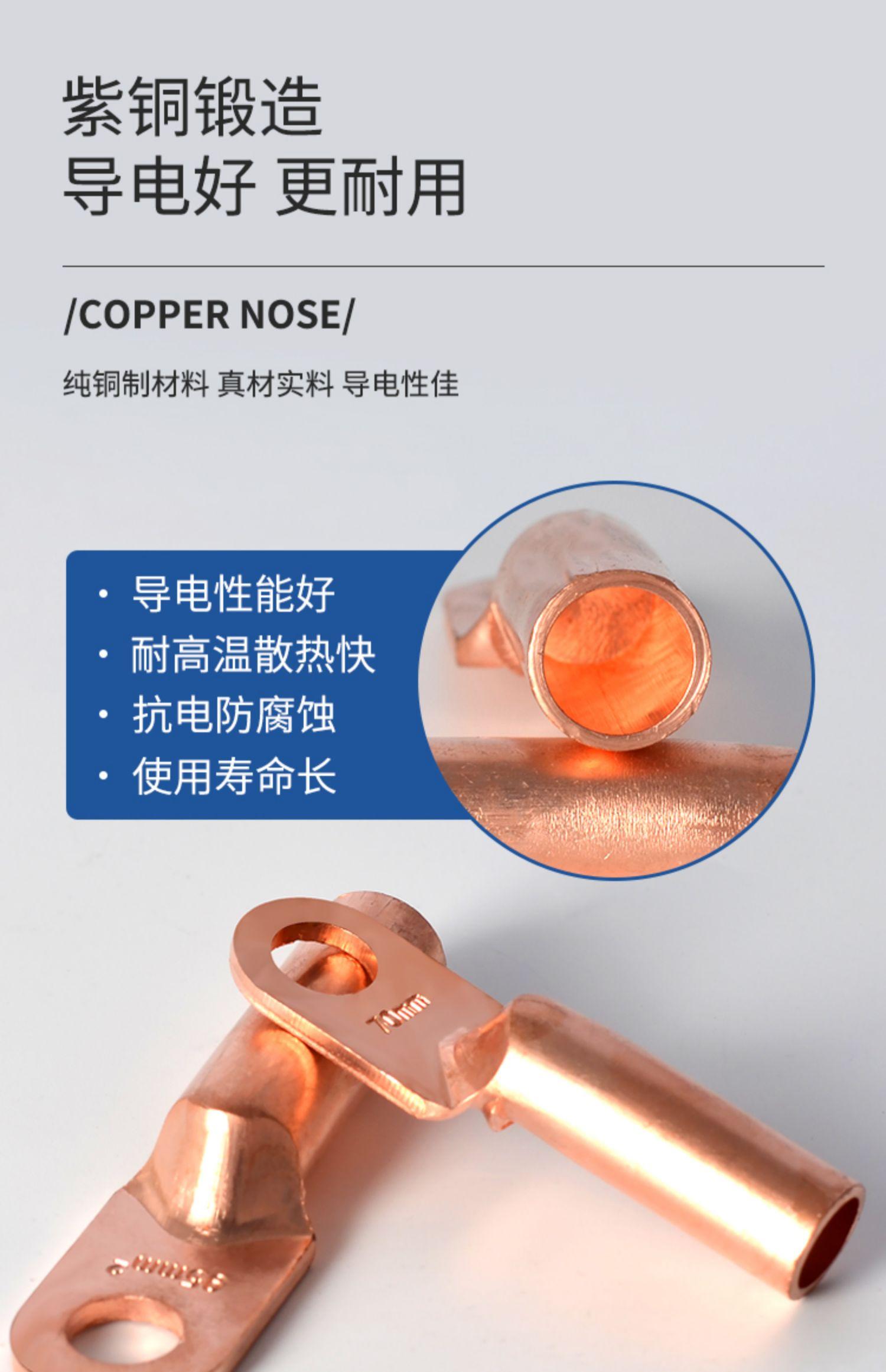 Nariz de cobre conector de cobre bloque de terminales cuadrados DT-10 nariz para cable de aceite y cableado oreja de cable de cobre