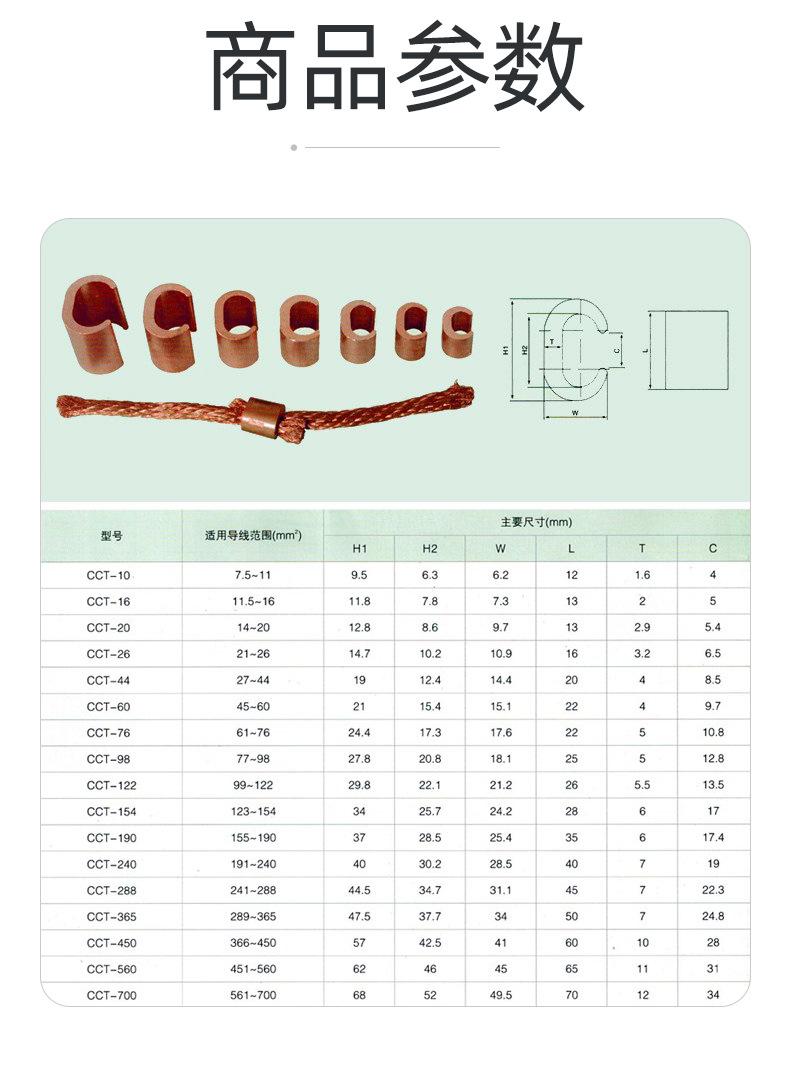 Terminal de abrazadera de cable tipo C, abrazadera de cable de cobre, conector de derivación de cable, abrazadera de cable CCT-10