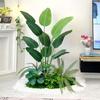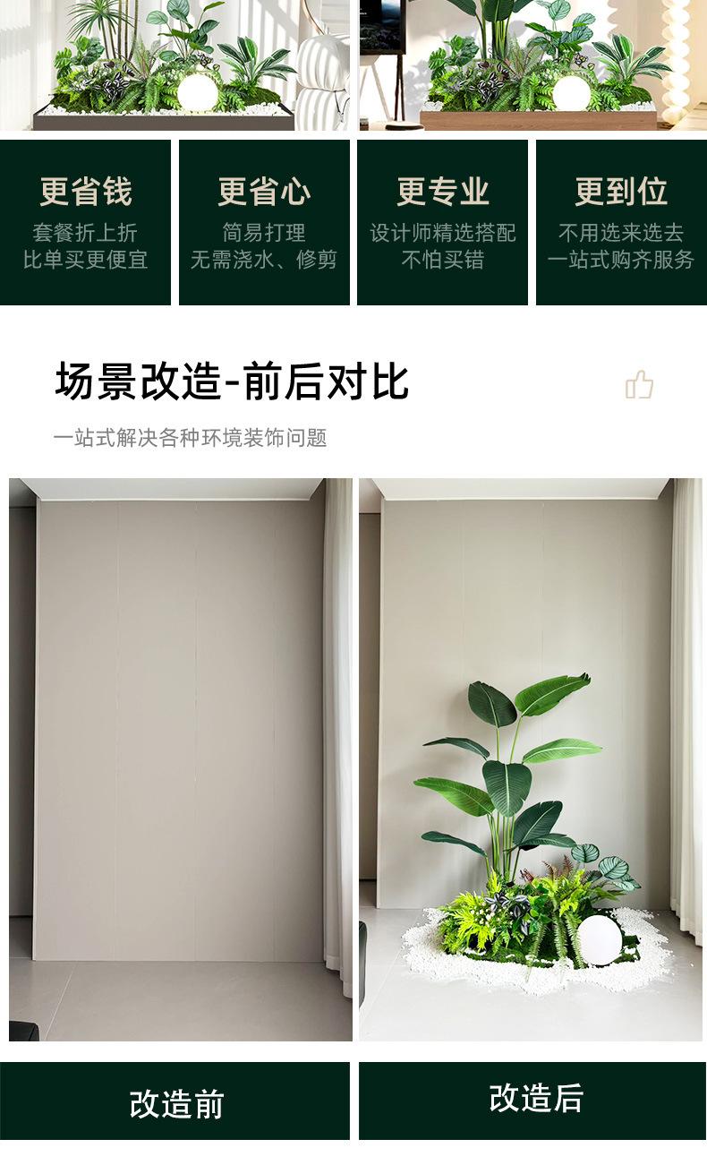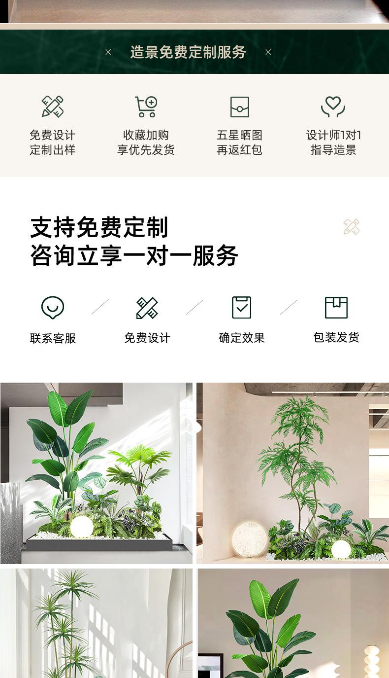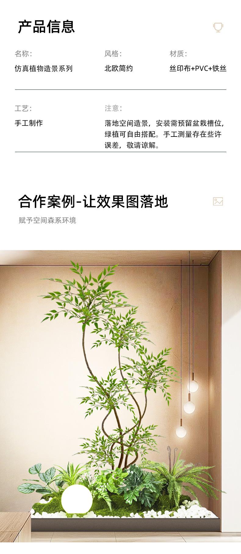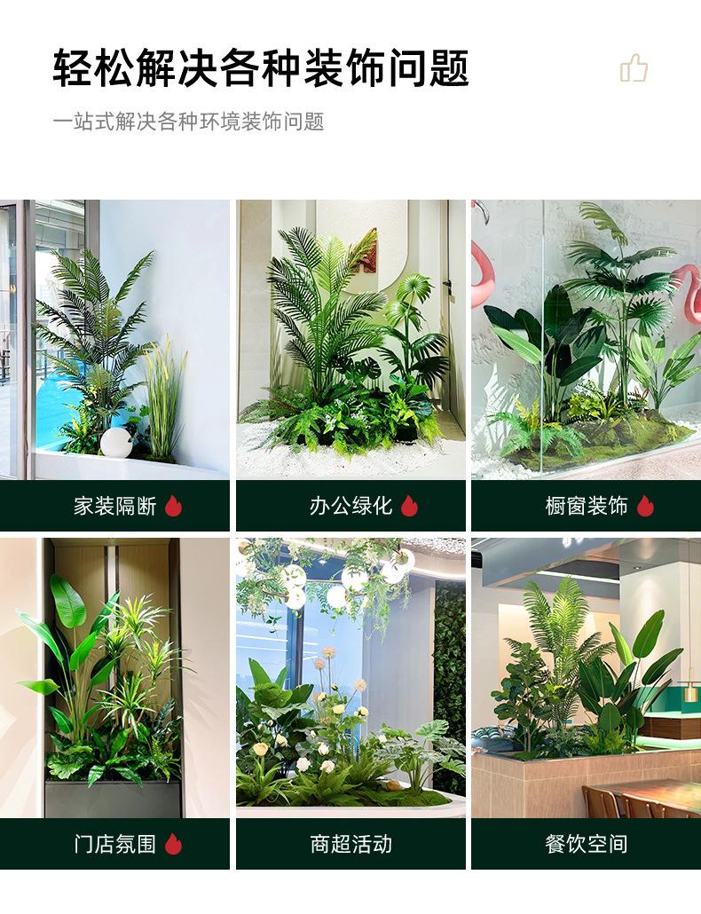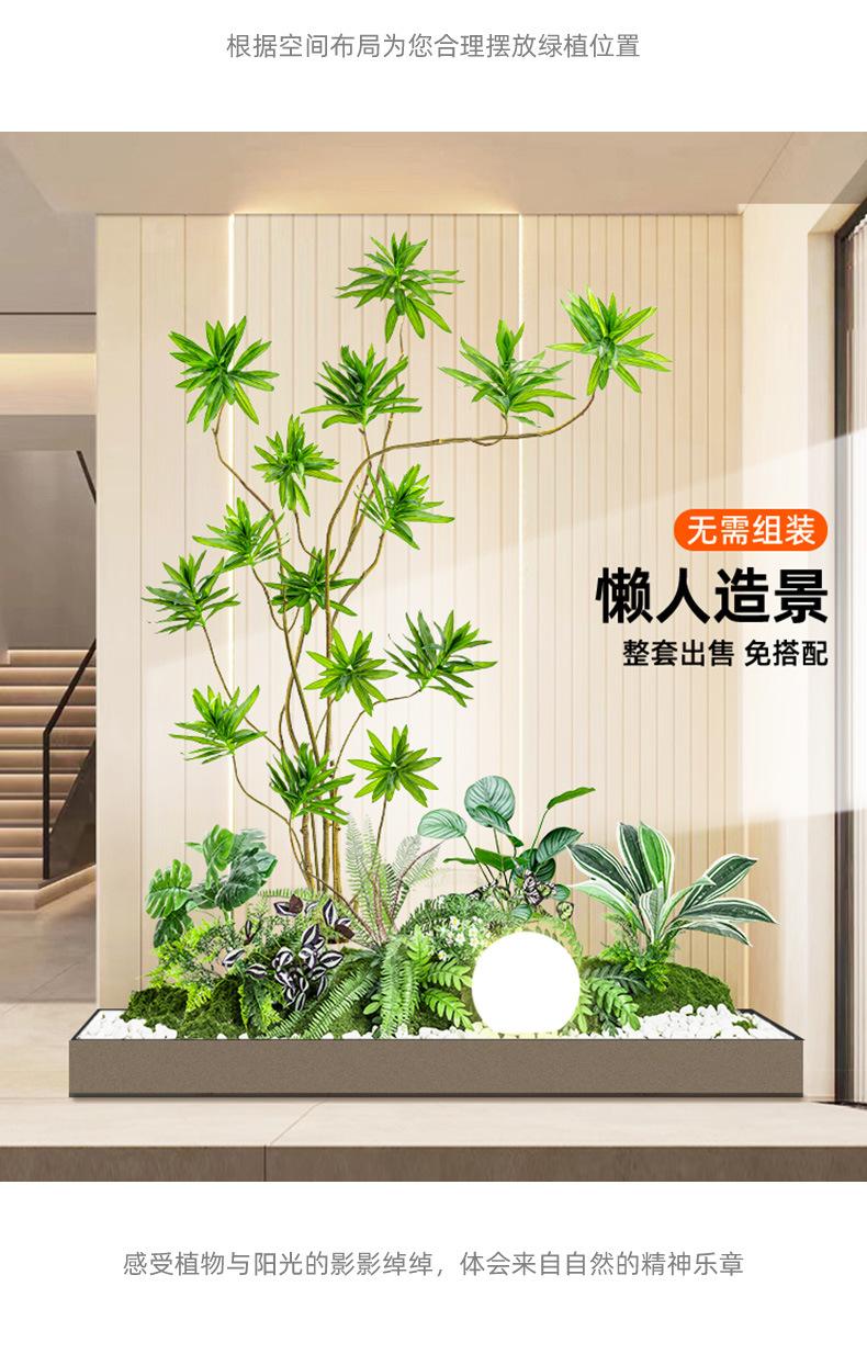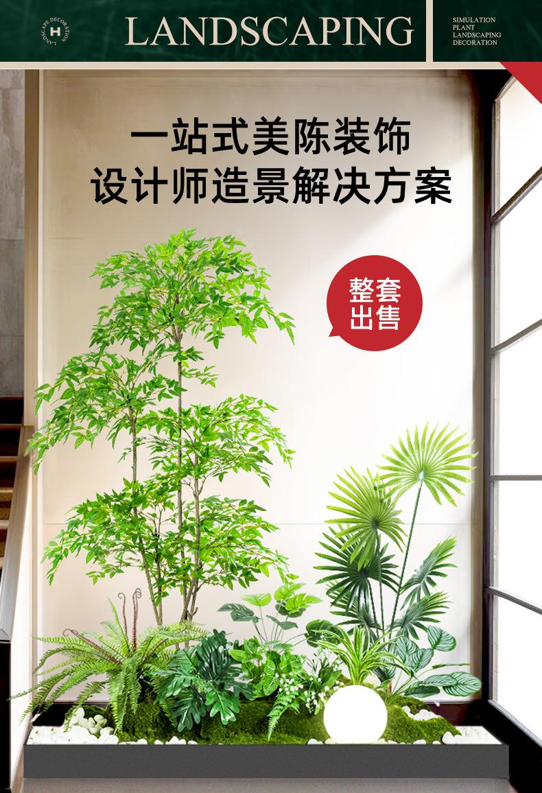 Simulación de plantas verdes combinadas para paisajismo bajo escaleras, centro comercial, paisaje de plantas tropicales falsas, árbol falso, planta en maceta de interior, adornos decorativos.