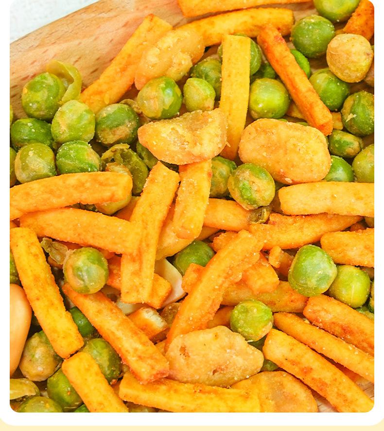 Gan Yuan Tiras de Camarón Frijol Fruta Camarón Fresco Carne Asada Cangrejo Sabor Amarillo Cacahuate Frijol Ancho Salteado Guisantes Verdes Antojos Snacks