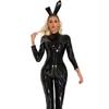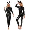 Symphony Ropa Íntima de Cuero Patentado con Entrepierna Abierta Femenina Aceite Muerto Negro Brillante Mono de Agua Uniforme Entrepierna con Cremallera Chica Gato