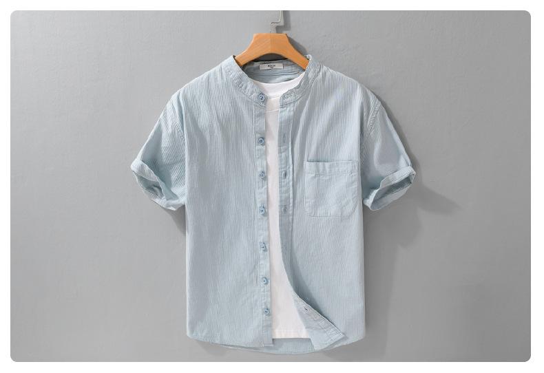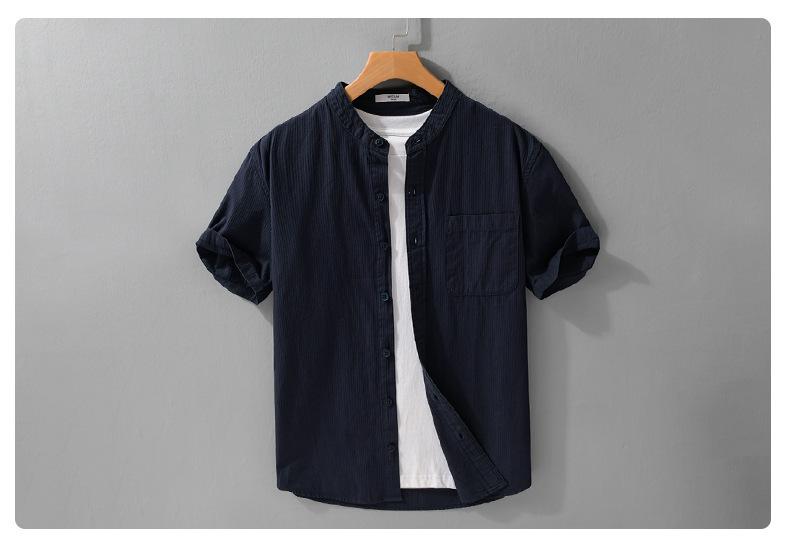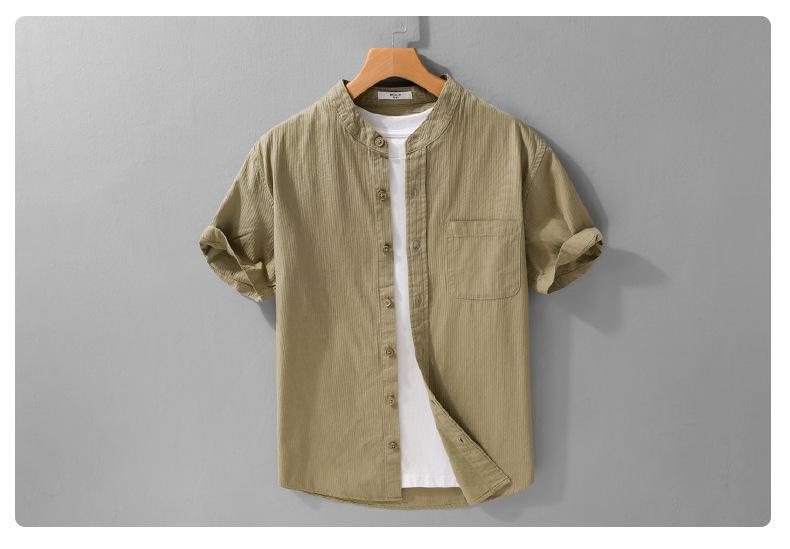 Camisa de Manga Corta para Hombre de Verano Simple y Versátil Casual Holgada para Hombre Retro Color Puro Juvenil 989