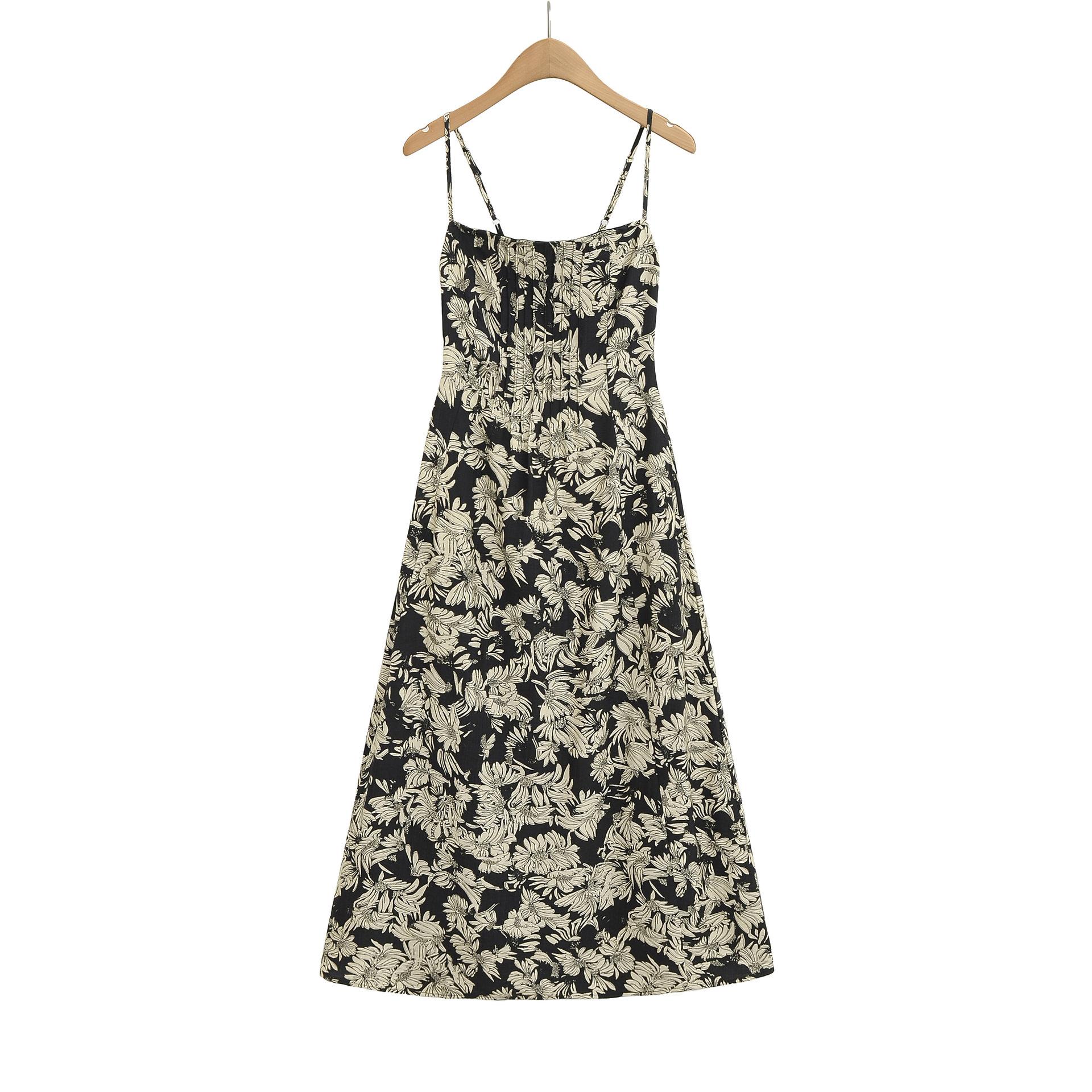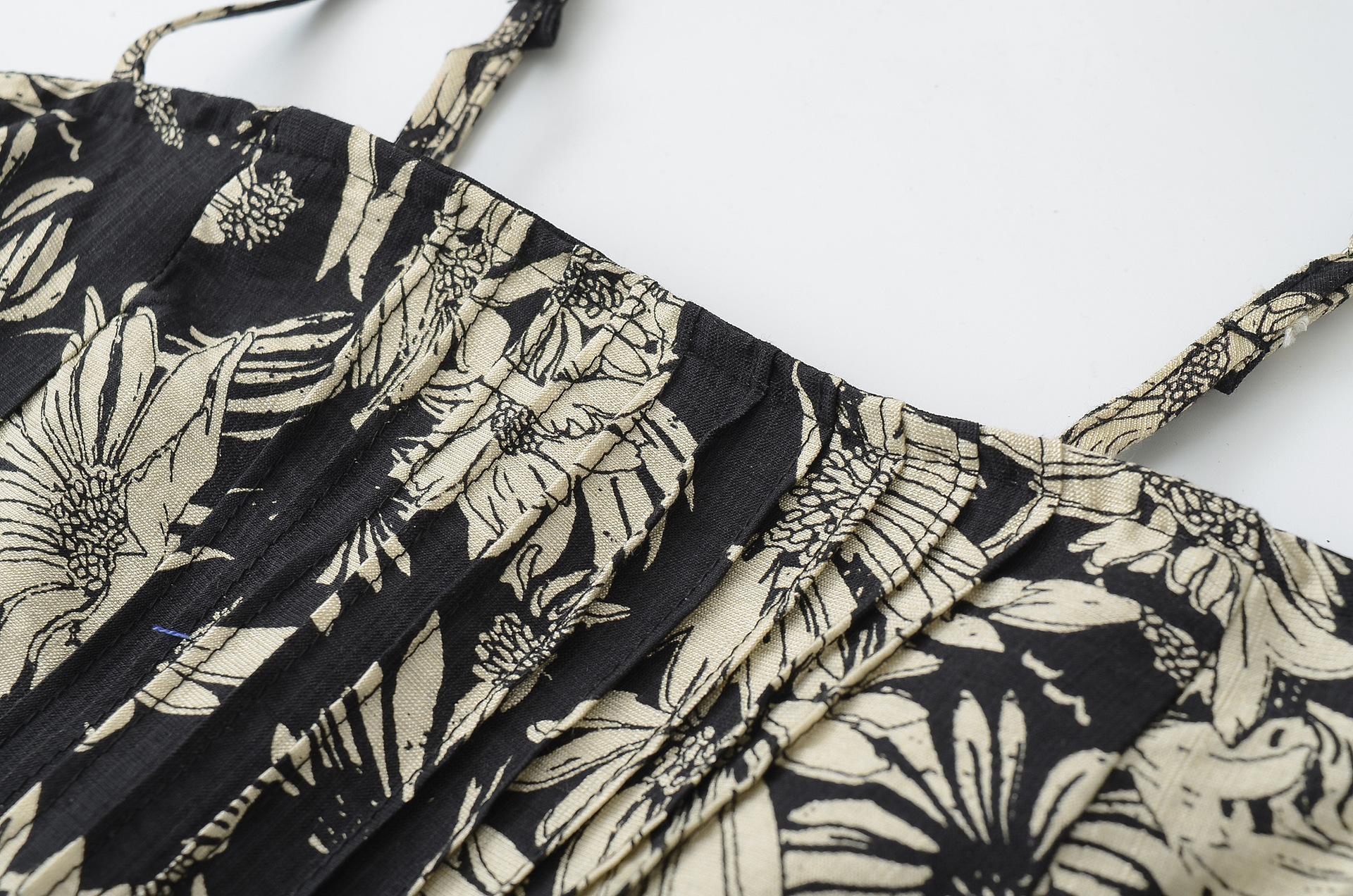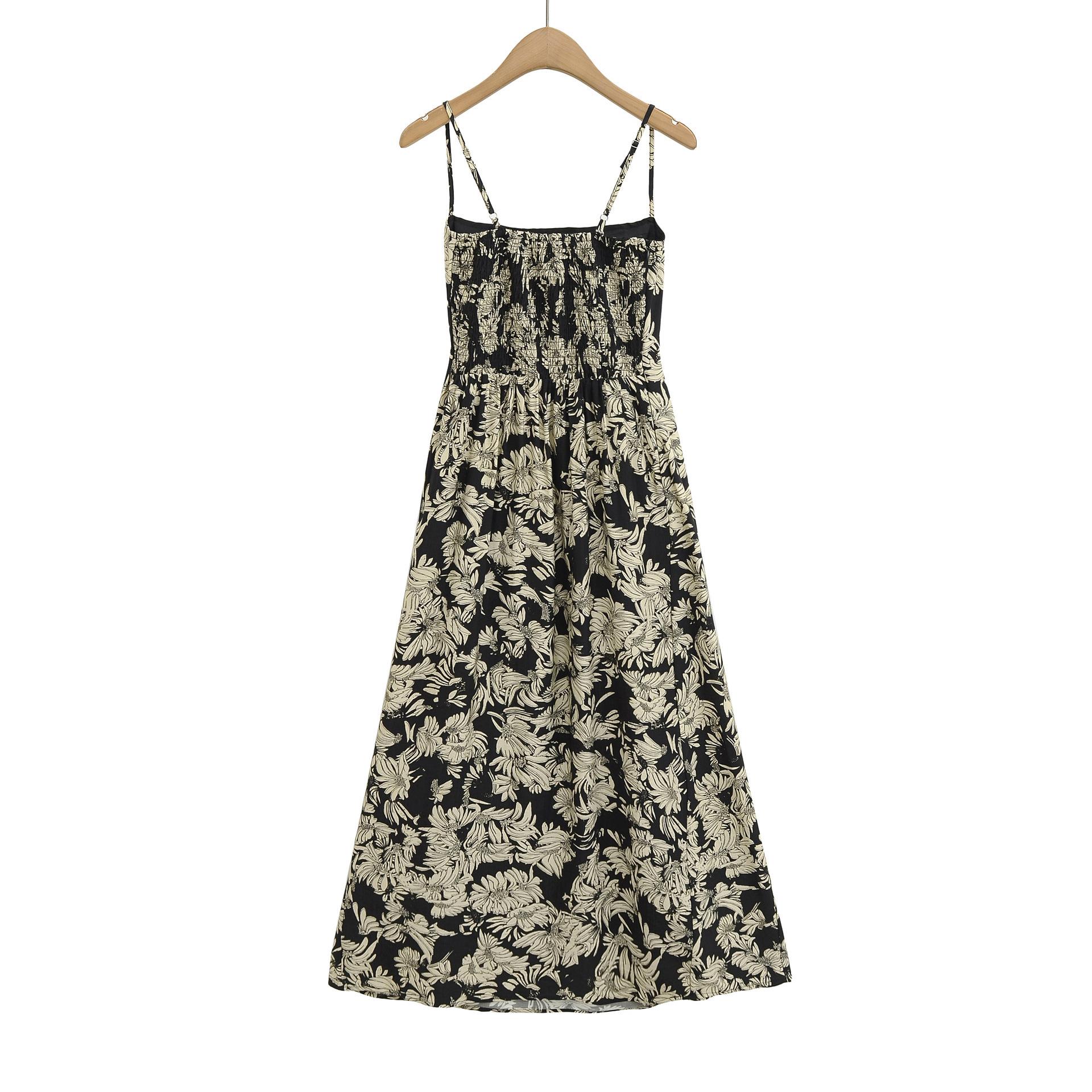 Q151-25 Nuevo Estilo de Verano Estilo Retro Francés Vacaciones de Verano en la Playa Casual Floral Tirantes Falda Larga Vestido