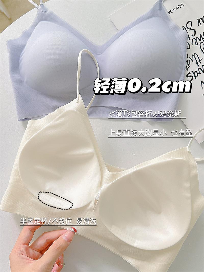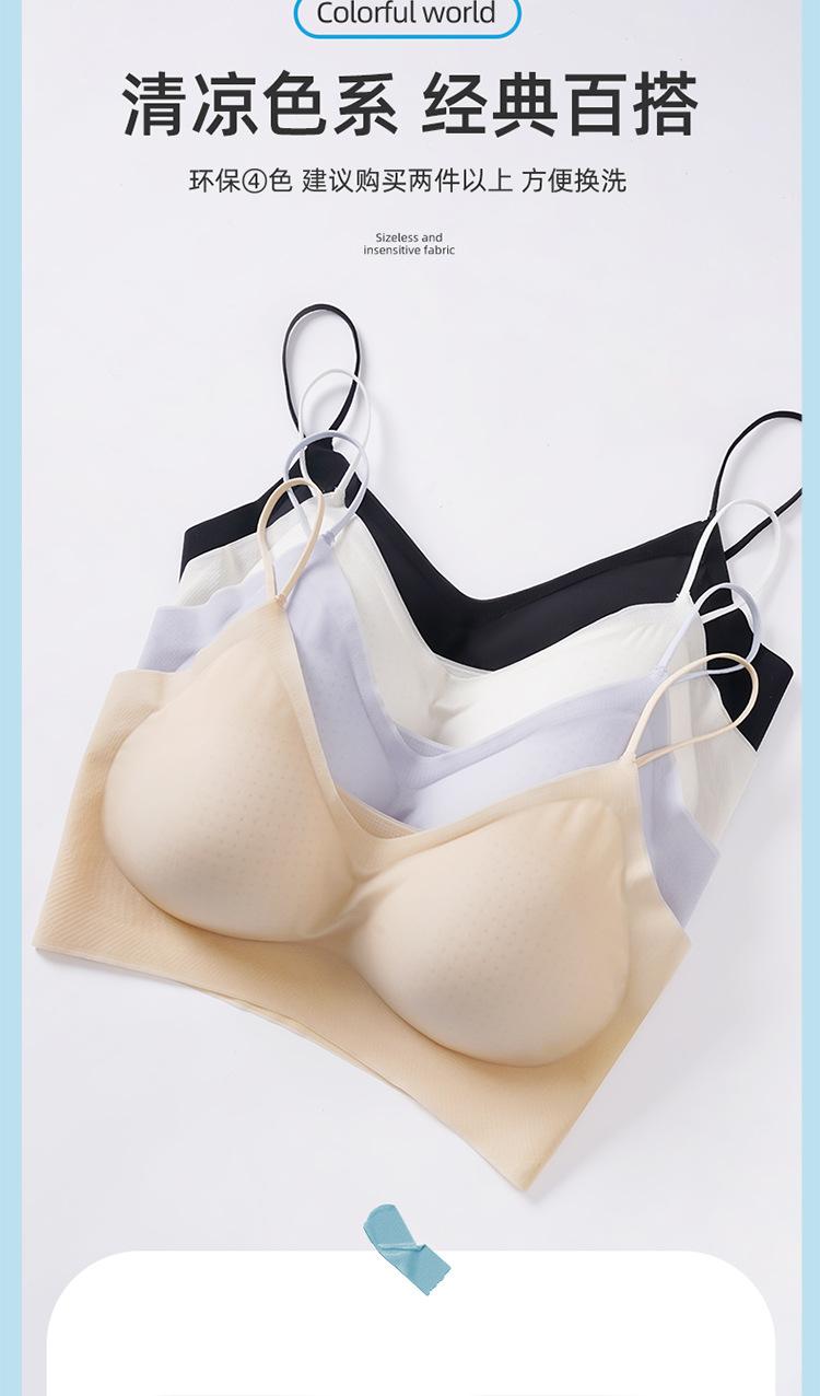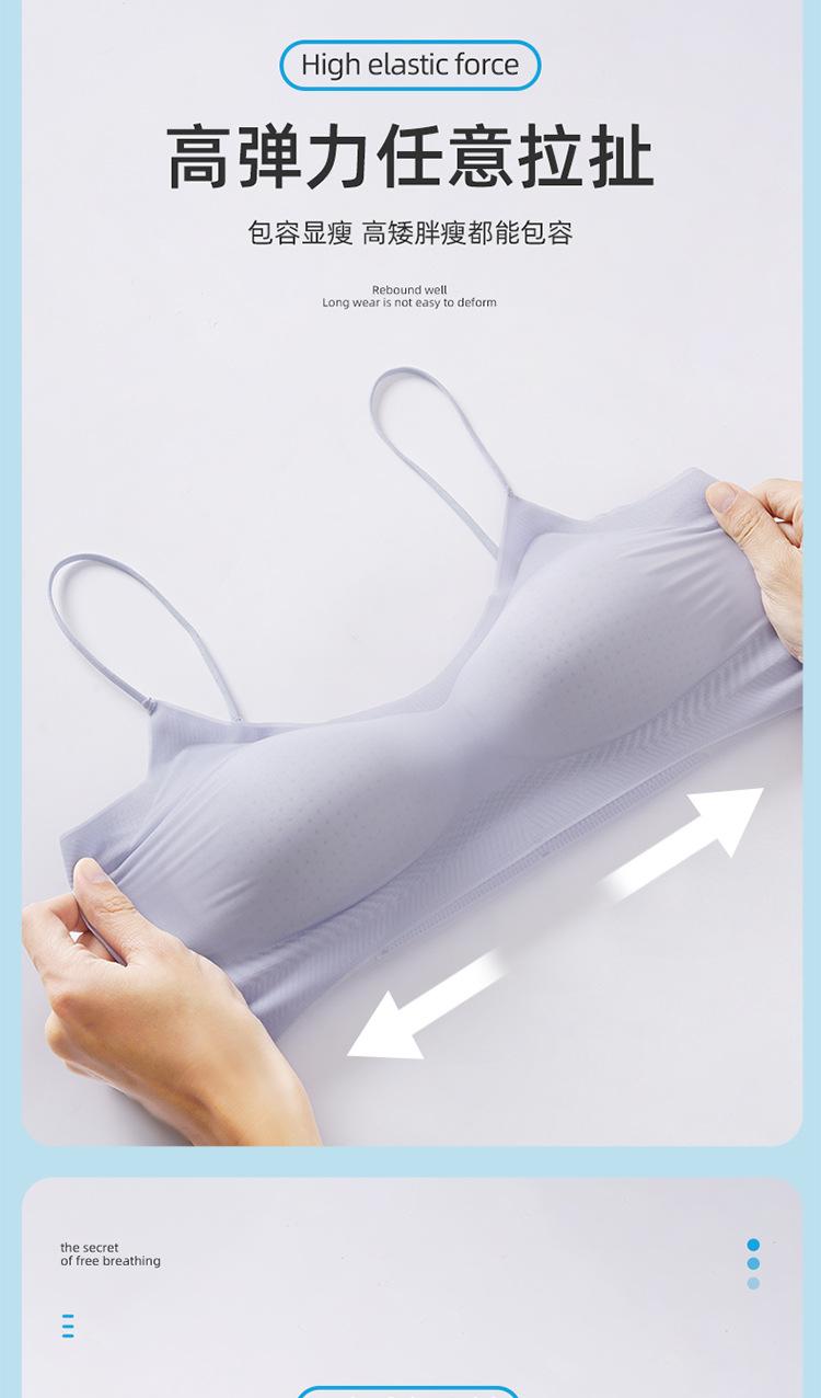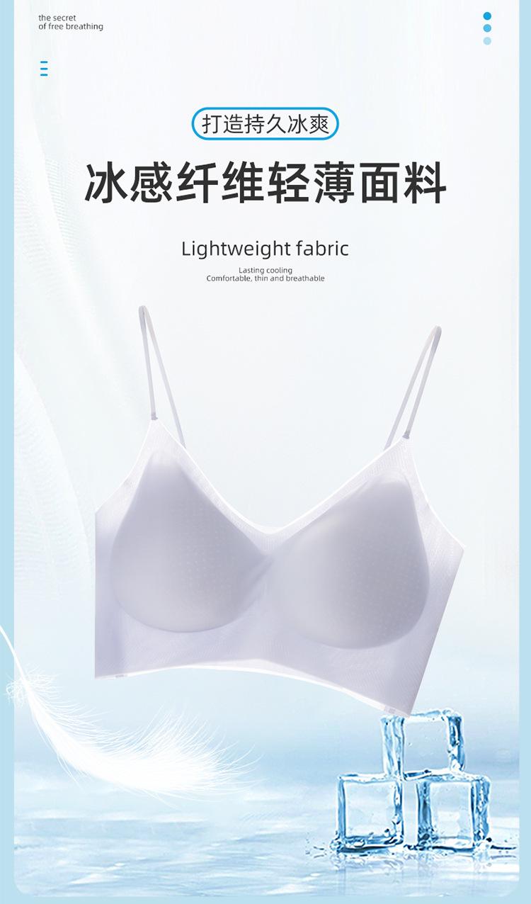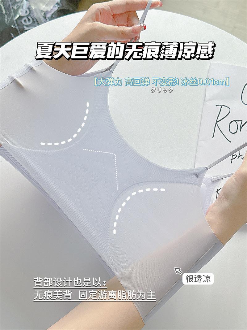 Sostén Acondicionador de Aire Delgado Ropa Interior Sin Costuras para Mujer Pecho Grande Pequeño Sensación Fresca Copa Fija Tirante Delgado Tipo Chaleco Sujetador Cómodo