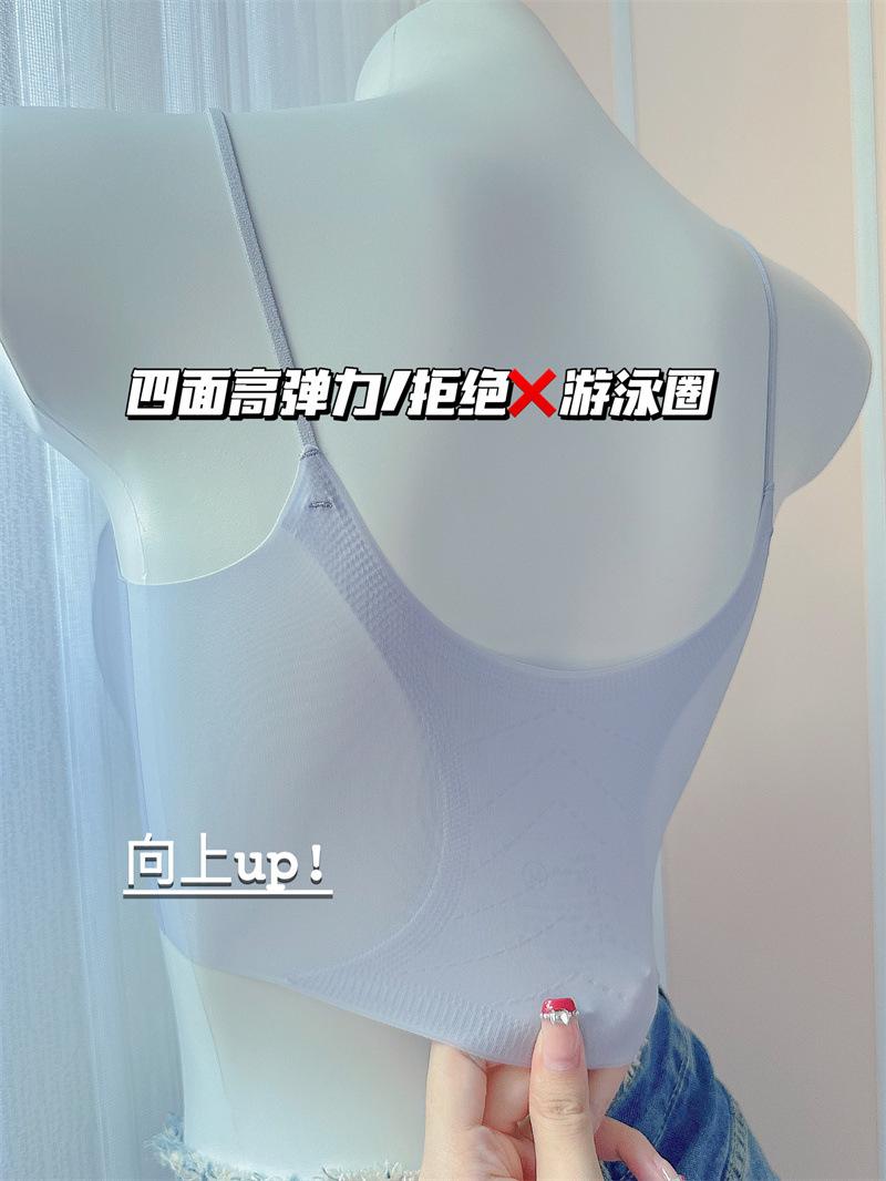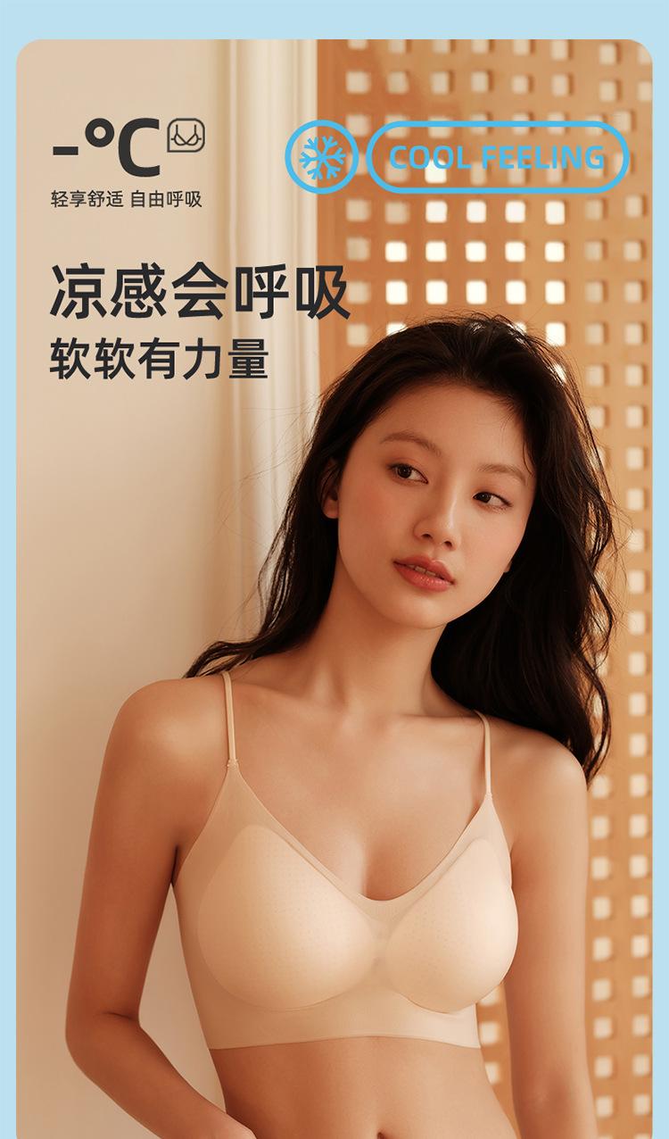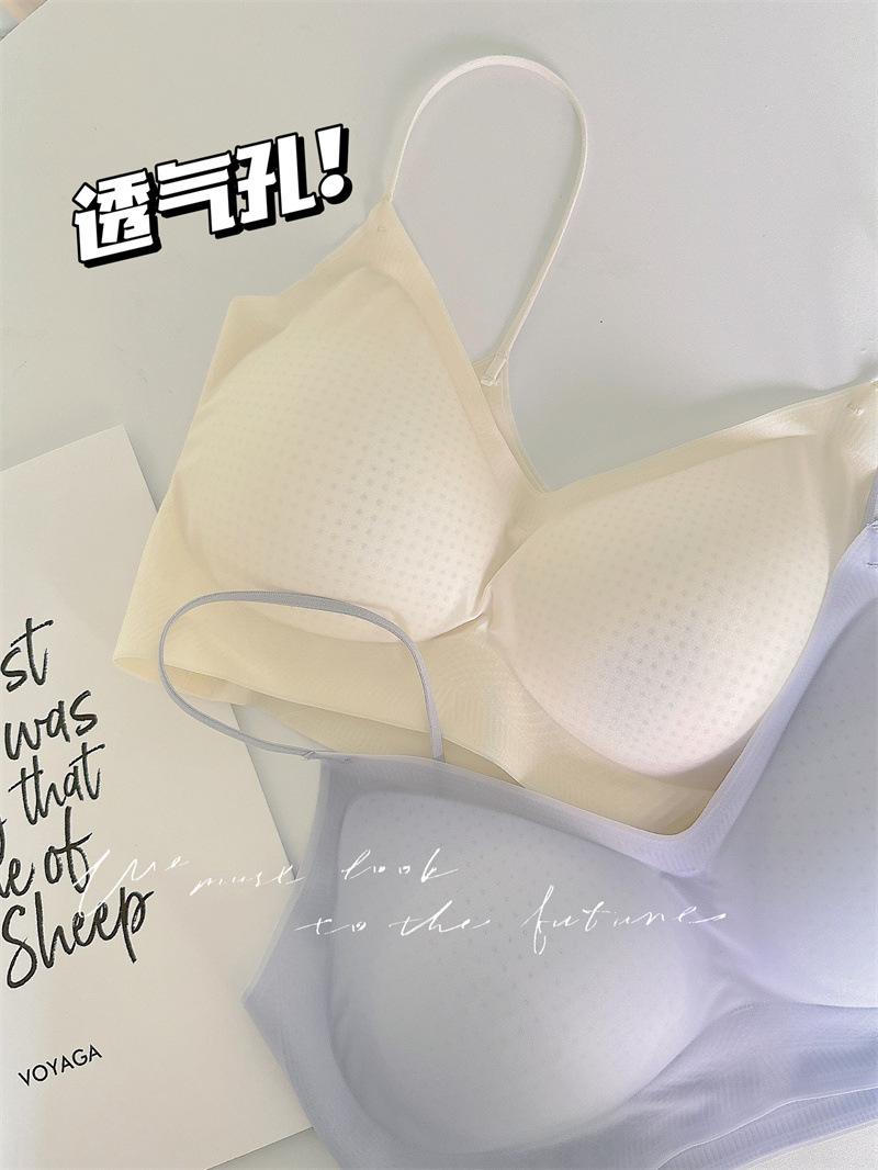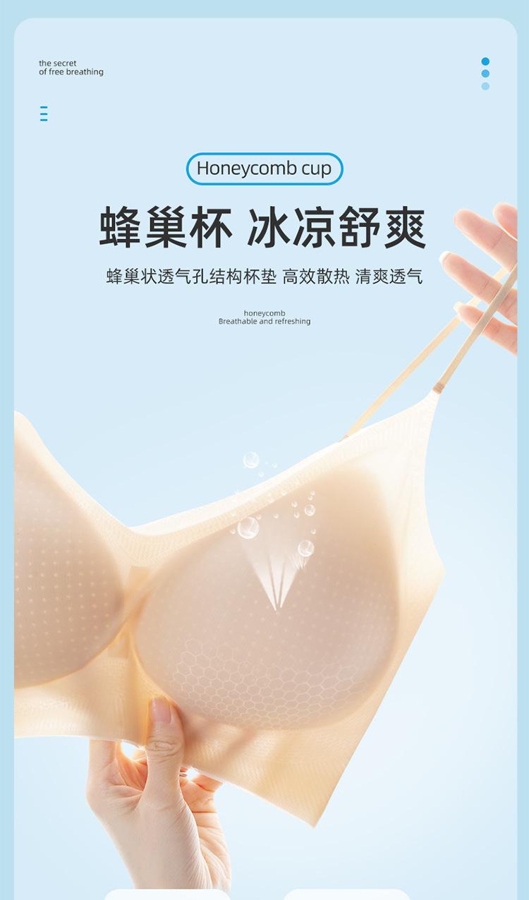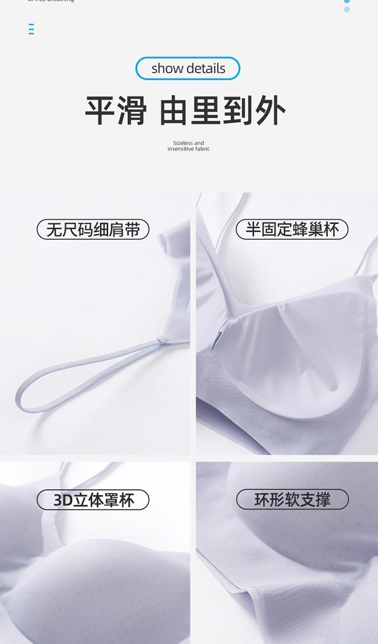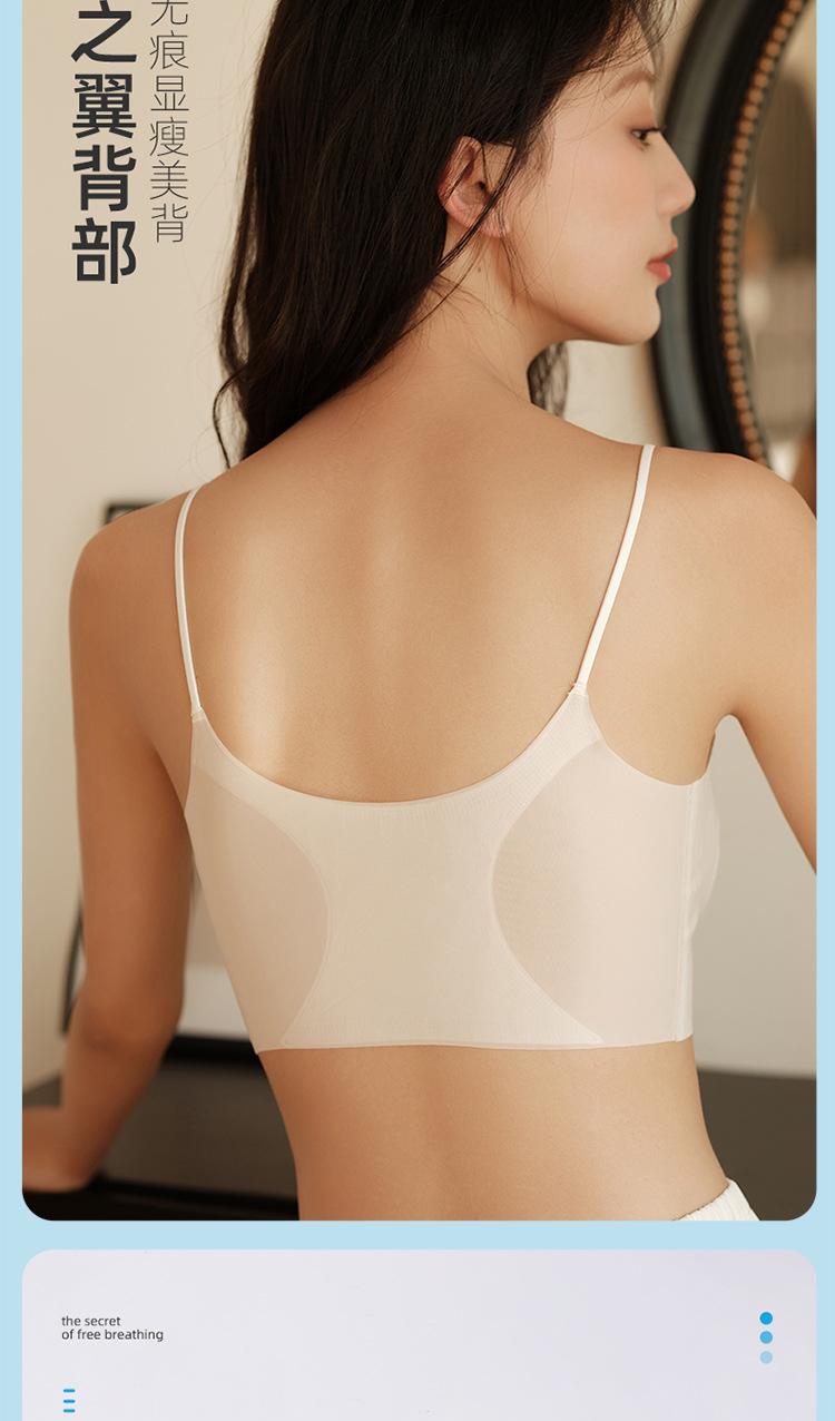 Sostén Acondicionador de Aire Delgado Ropa Interior Sin Costuras para Mujer Pecho Grande Pequeño Sensación Fresca Copa Fija Tirante Delgado Tipo Chaleco Sujetador Cómodo