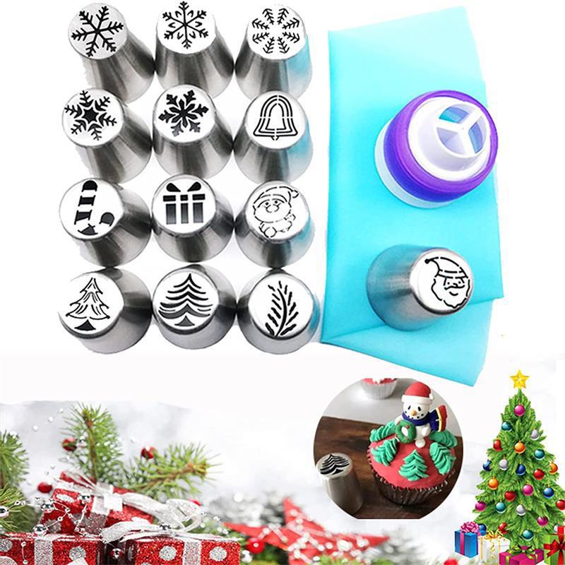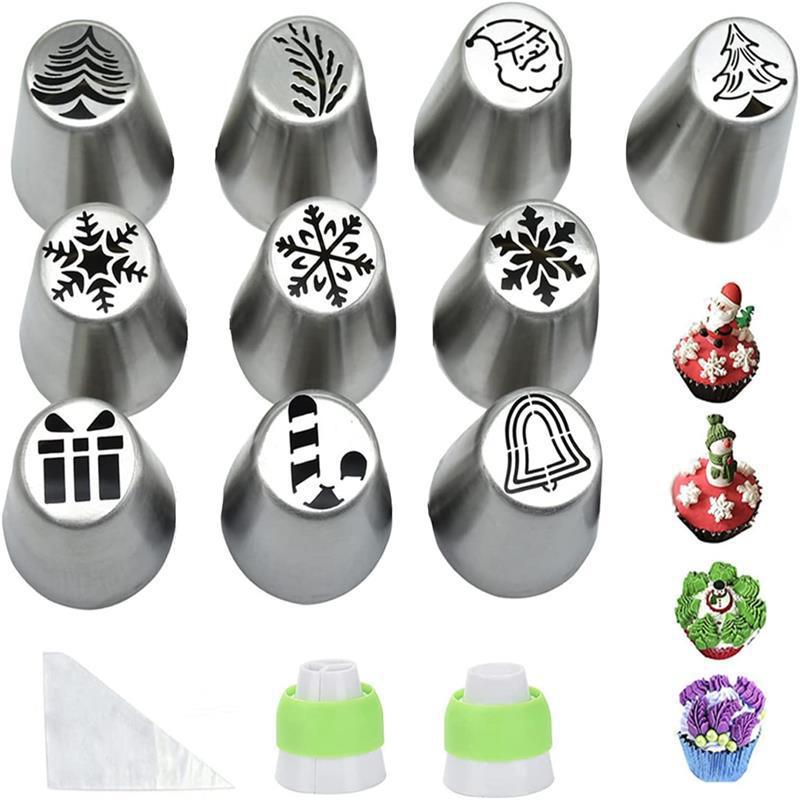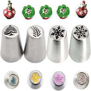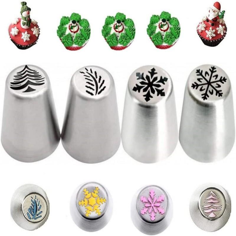 Boquilla Rusa de Estilo Navideño de 4 Piezas Boquilla de Acero Inoxidable Juego de Herramientas para Hornear Cupcakes