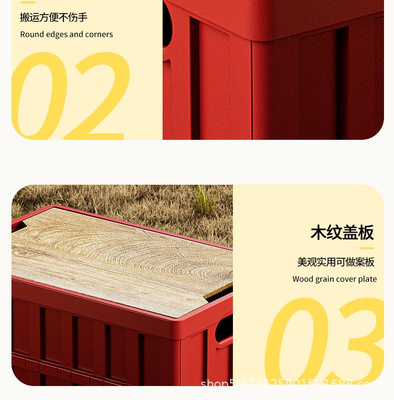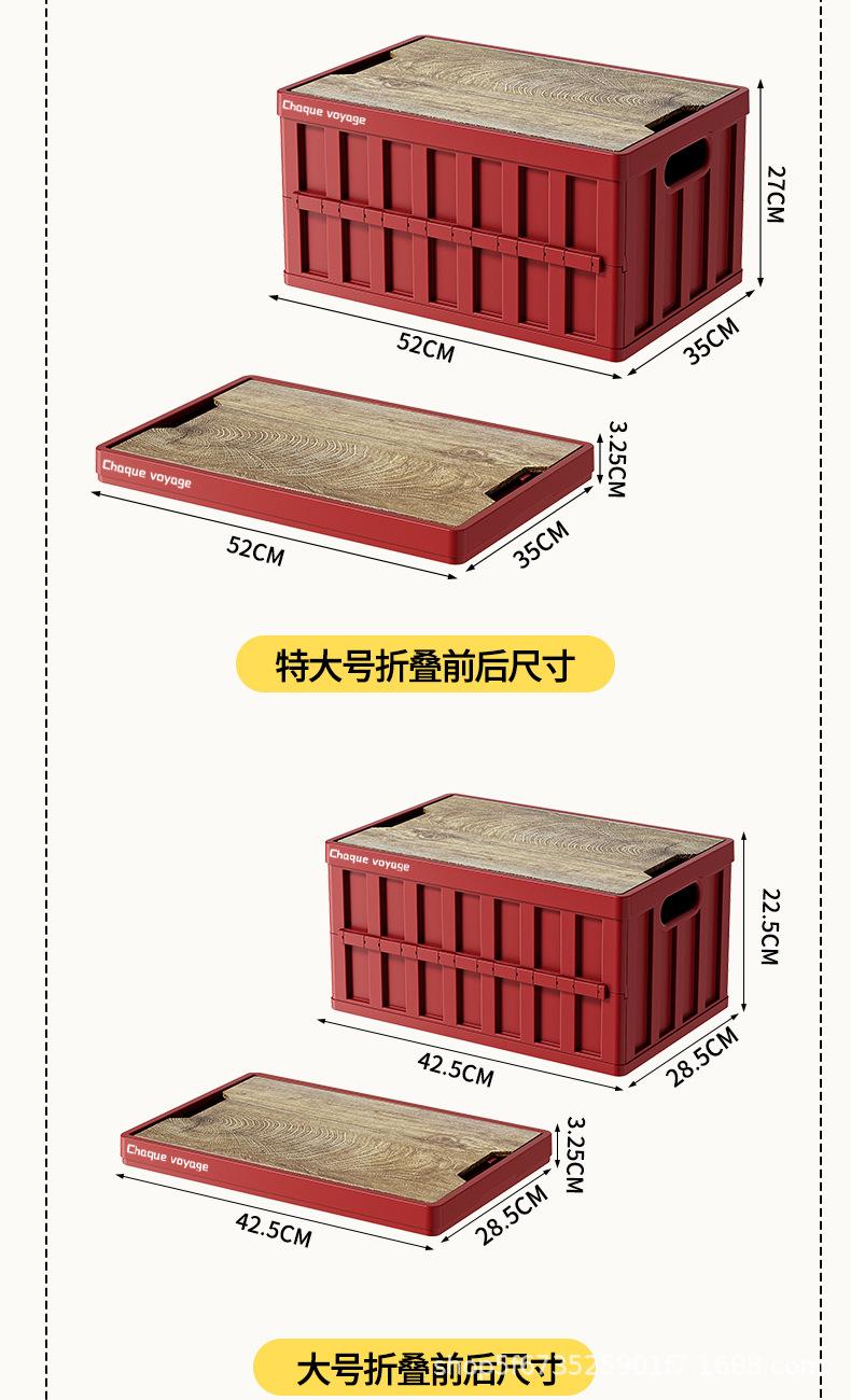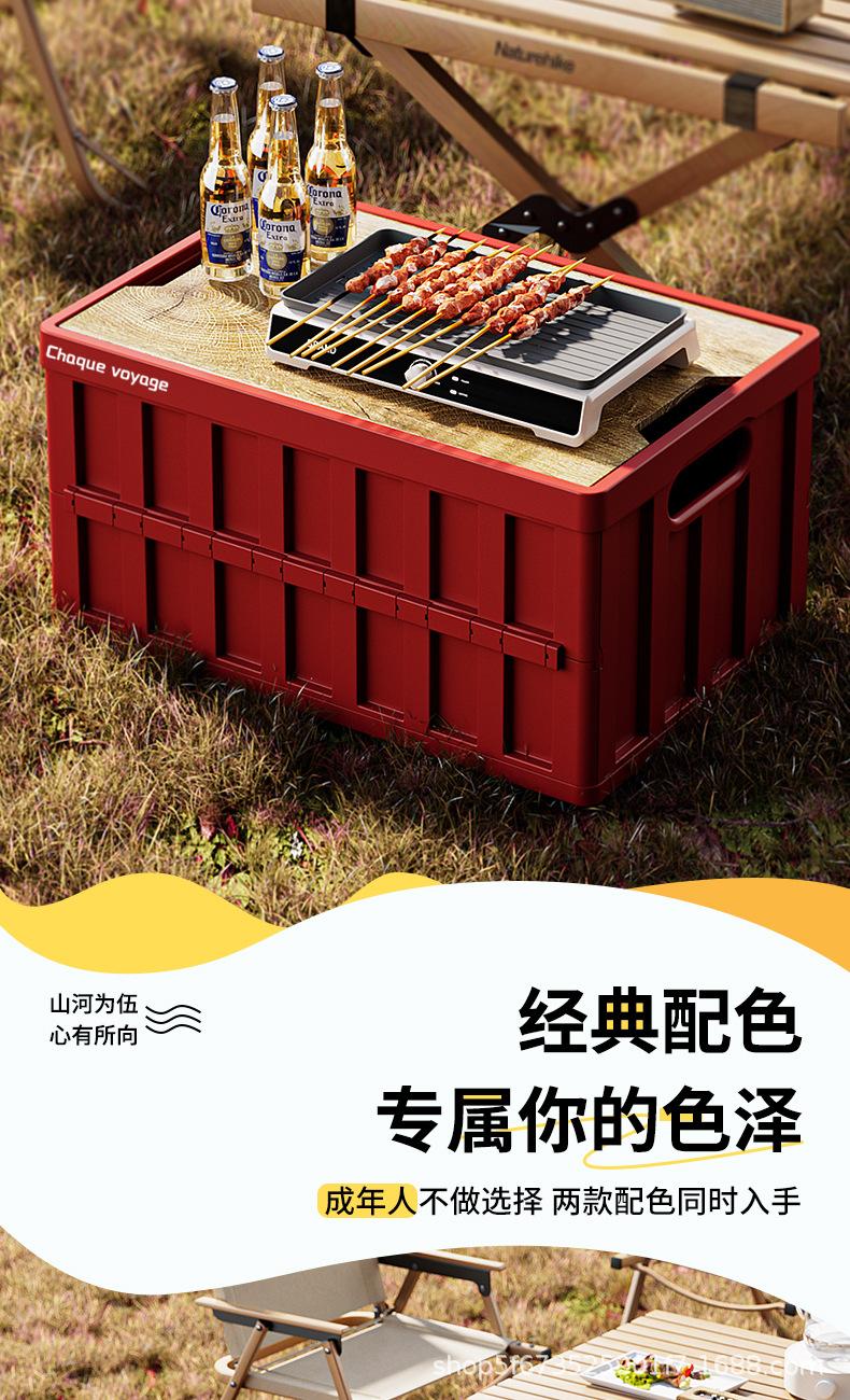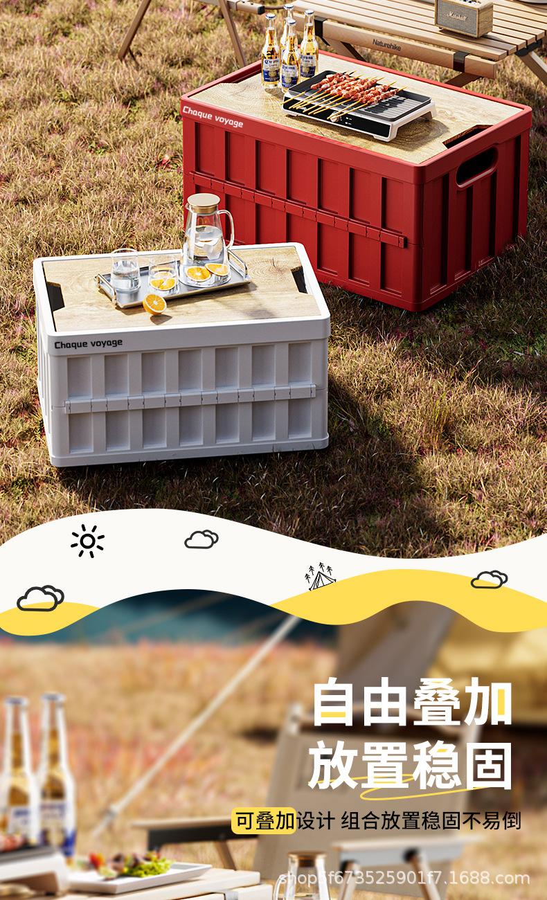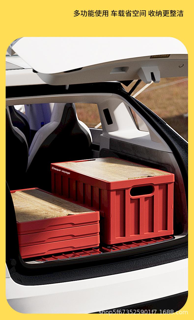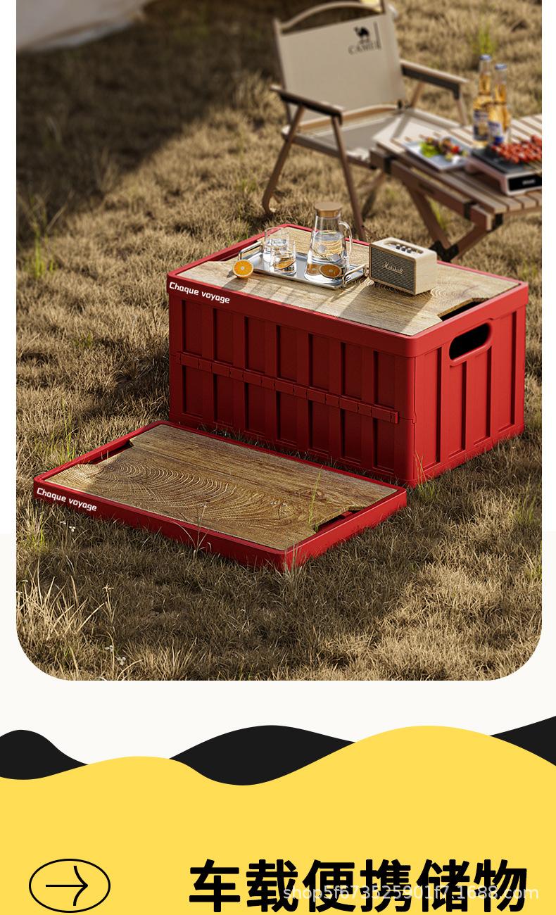 Caja de Almacenamiento Tipo Baúl para Camping al Aire Libre para Coche con Tapa de Madera Plegable Caja de Almacenamiento Multifuncional de Gran Capacidad para Camping