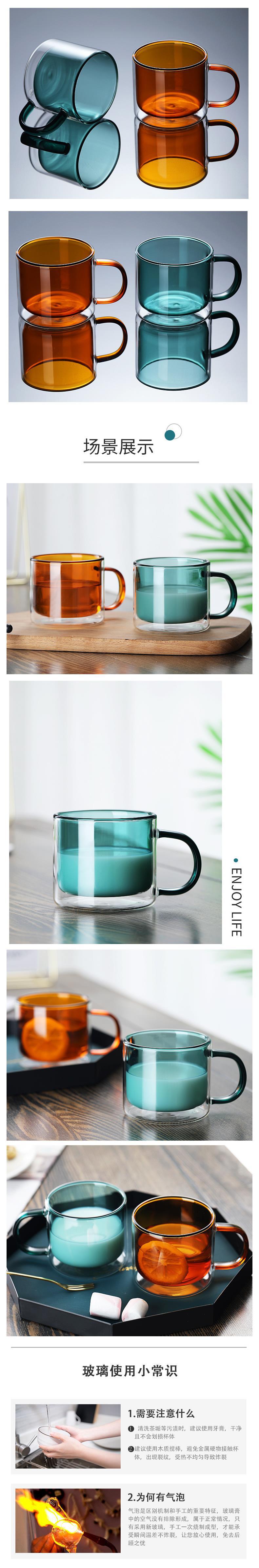 Vaso de Doble Capa de Vidrio de Borosilicato de Colores Vaso para Café Estilo Ins con Asa Taza de Té para el Hogar Taza Aislada Personalizada