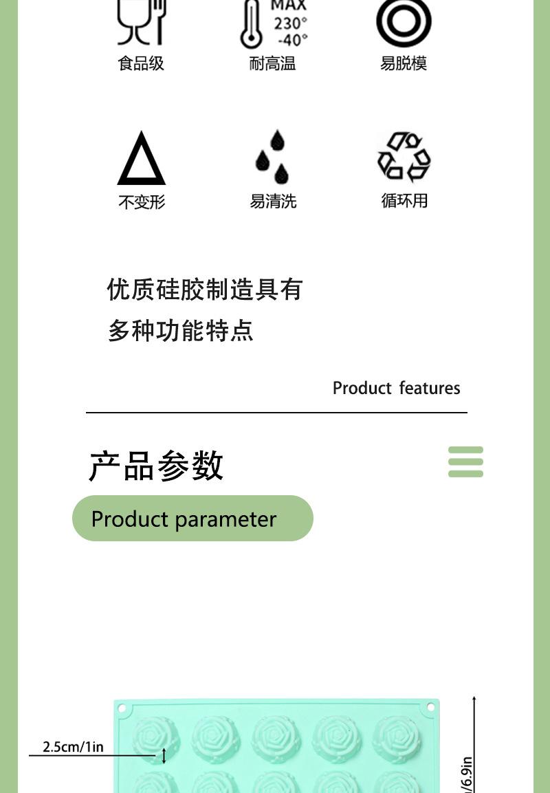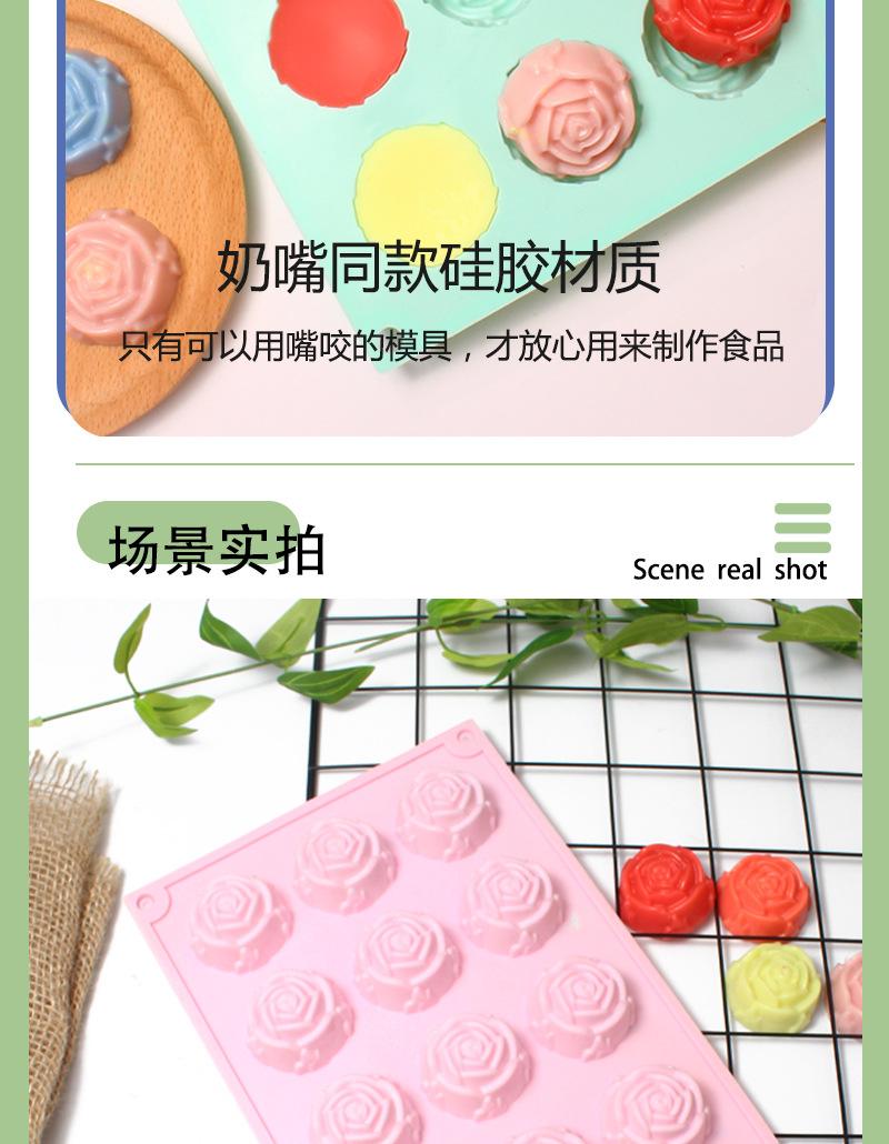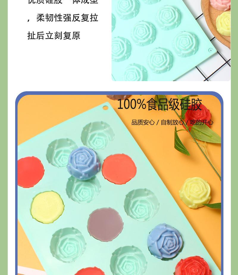 Molde de Silicona de Rosa Consecutiva Transfronterizo de 15 Cavidades para Pastel, Helado, Pudín, Gelatina, Molde para Jabón DIY Hecho a Mano al por Mayor