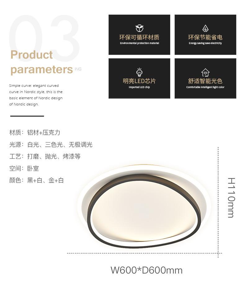Lámpara Redonda para Dormitorio, Simple y Moderna, Lámpara de Techo Ultrafina, Iluminación de Líneas Geométricas, Lámpara Nórdica de Diseño para Dormitorio Principal de Celebridad de Internet