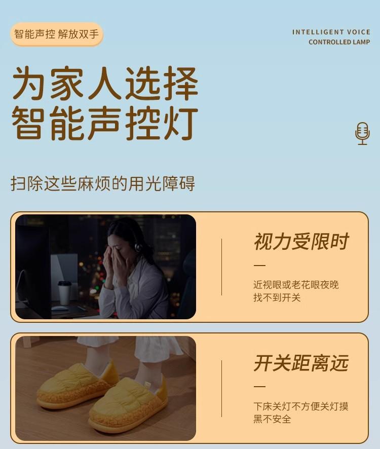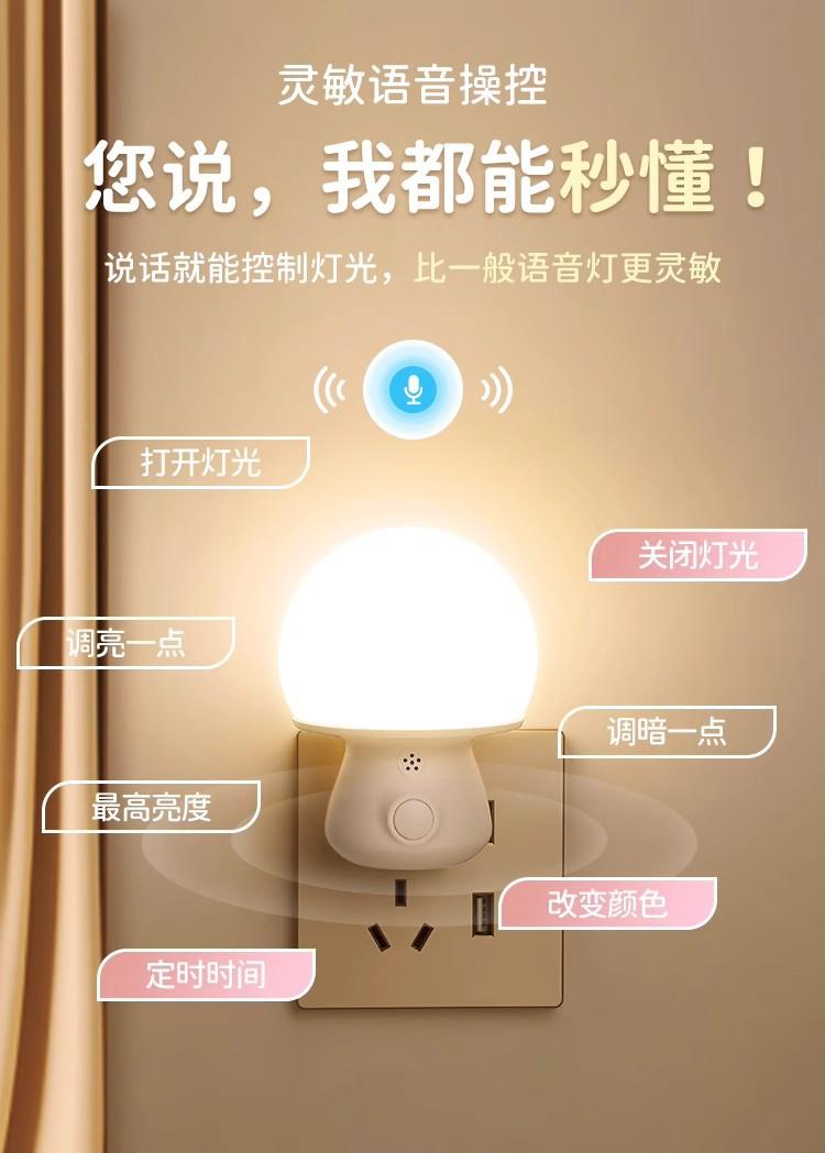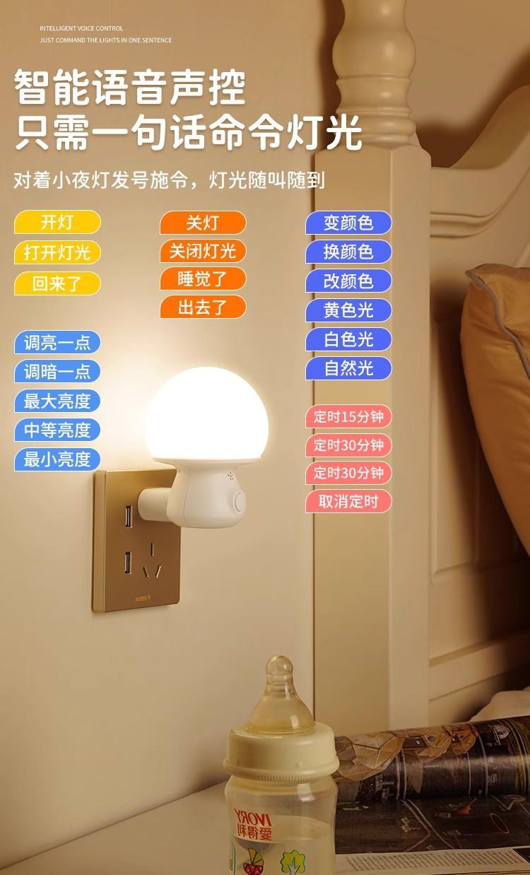 Luz nocturna LED inteligente por voz, luz para dormir de dormitorio, lámpara de inducción por control de voz, lámpara de noche con lámpara para dormir, control remoto, lámpara de escritorio