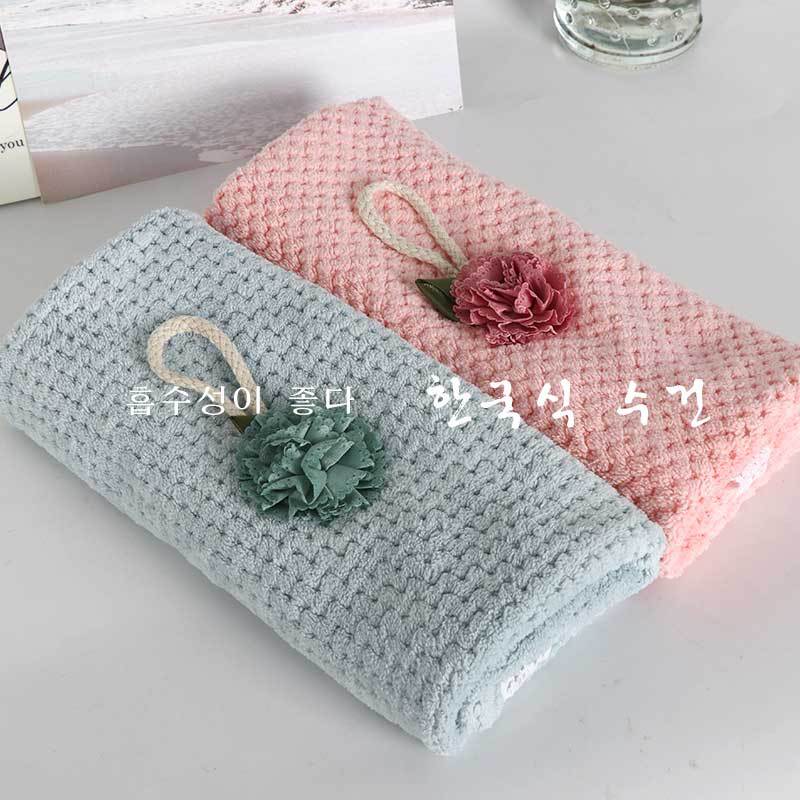 Toalla de mano de vellón coralino estilo coreano, toalla gruesa y linda, súper absorbente, toalla de mano de cocina, colgante creativo