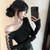 2025 Sexy Sexy Camiseta de Manga Larga con Protección Solar para Mujer, Delgada, con Espalda Descubierta, Un Hombro, Color Puro, Transpirable, Fresca