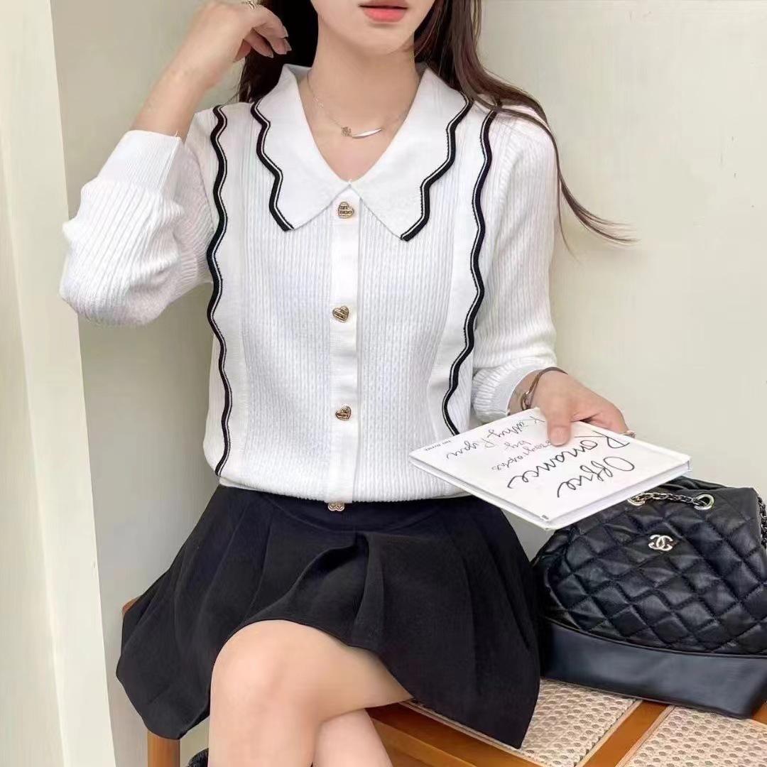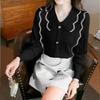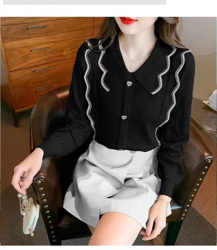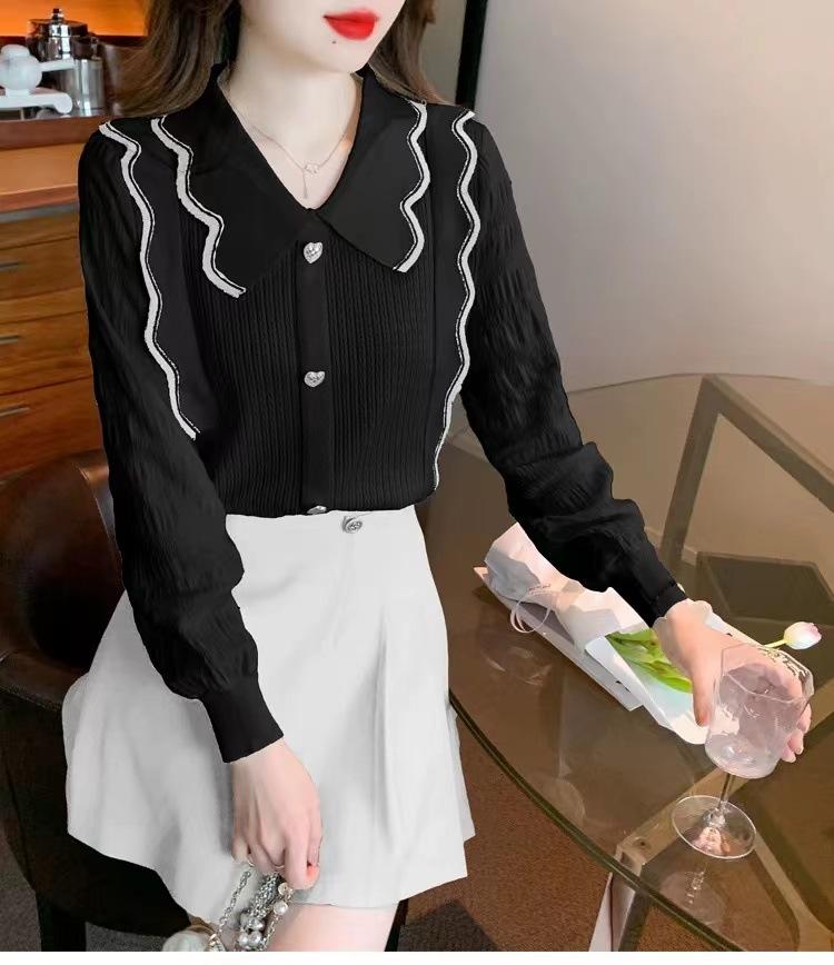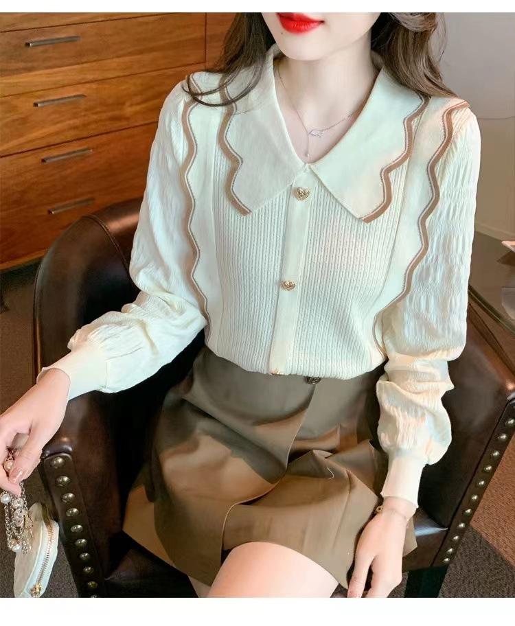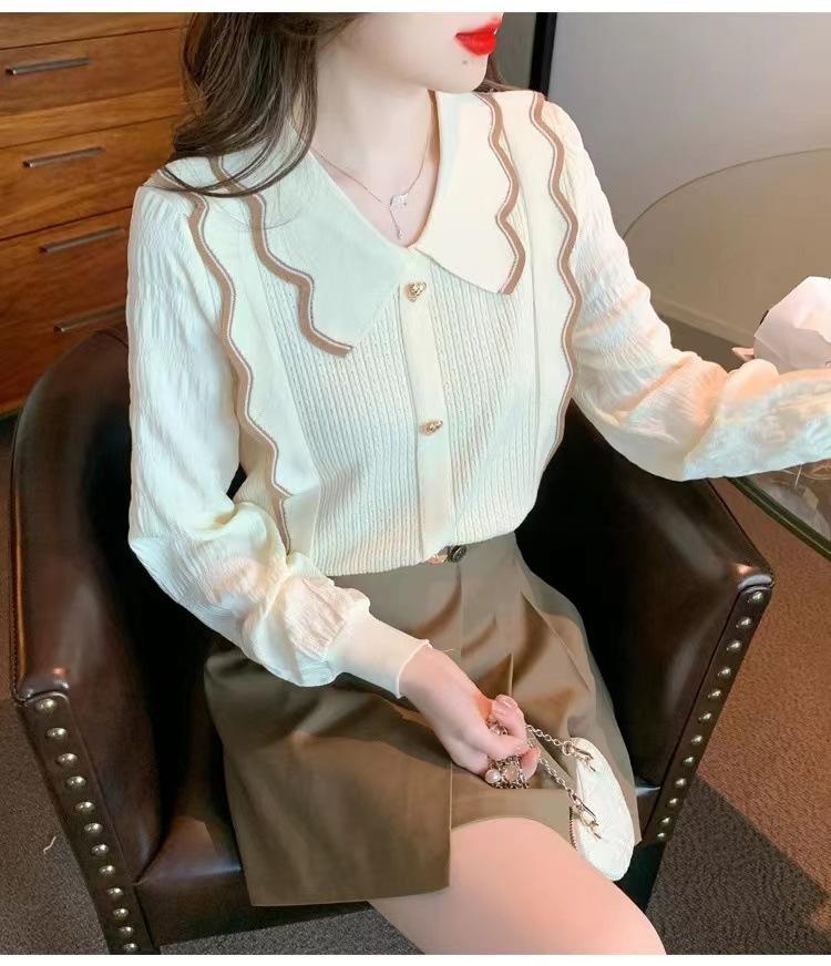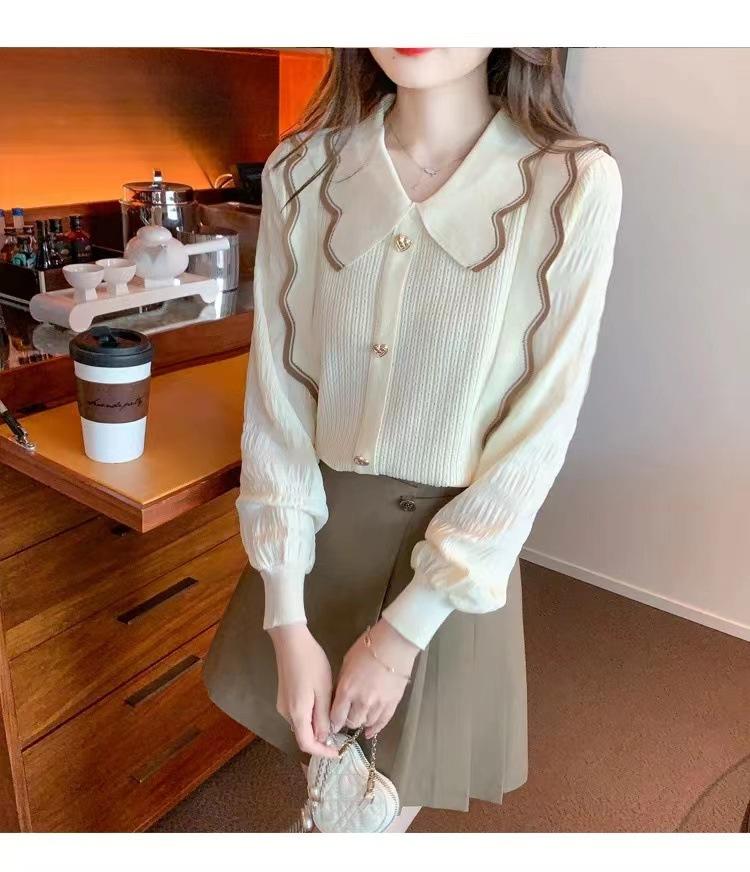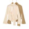 Dulce Blusa de Chifón de Manga Larga con Cuello de Muñeca para Mujer Otoño Diseño Niche Top Moda Estilo Occidental Versátil Camisa Pequeña