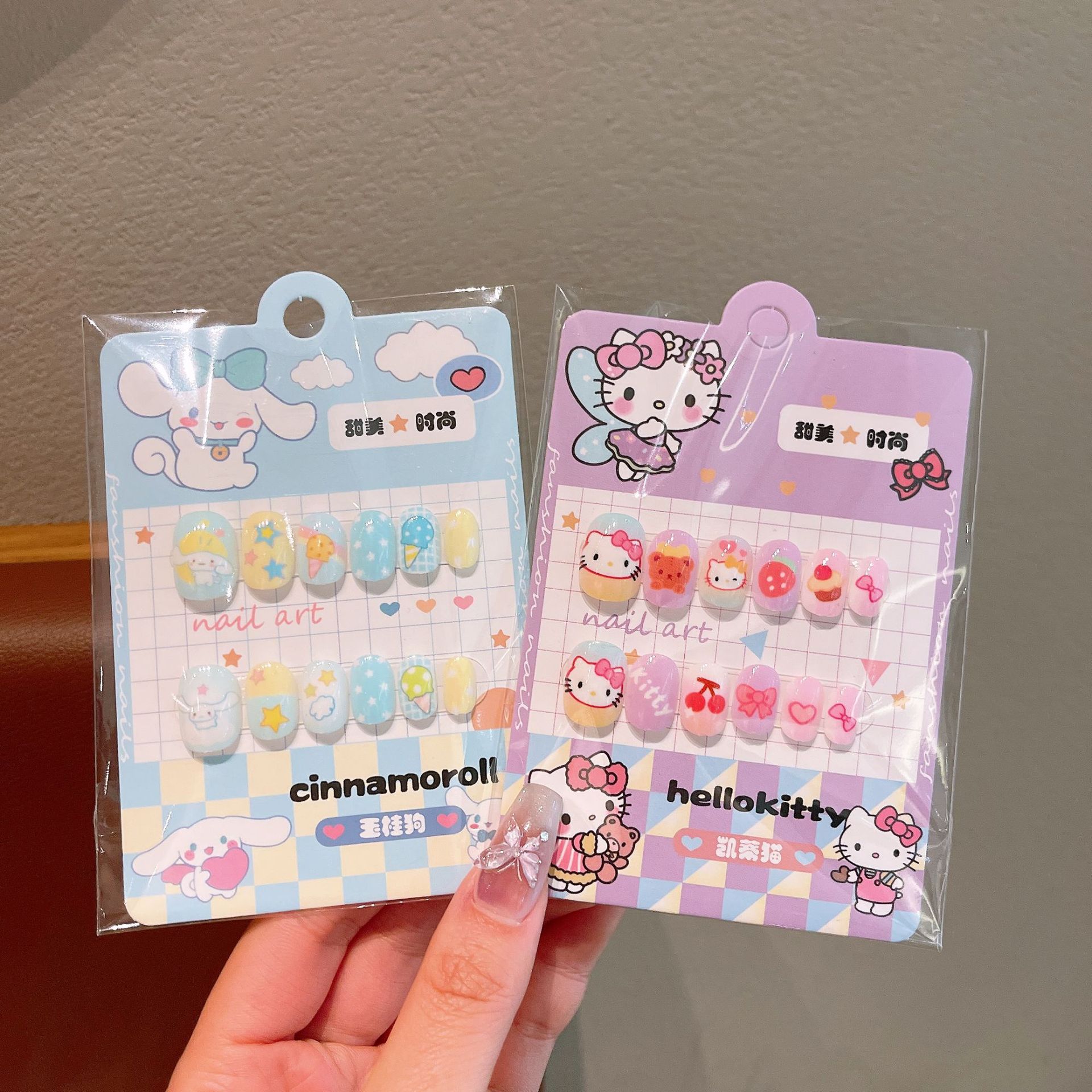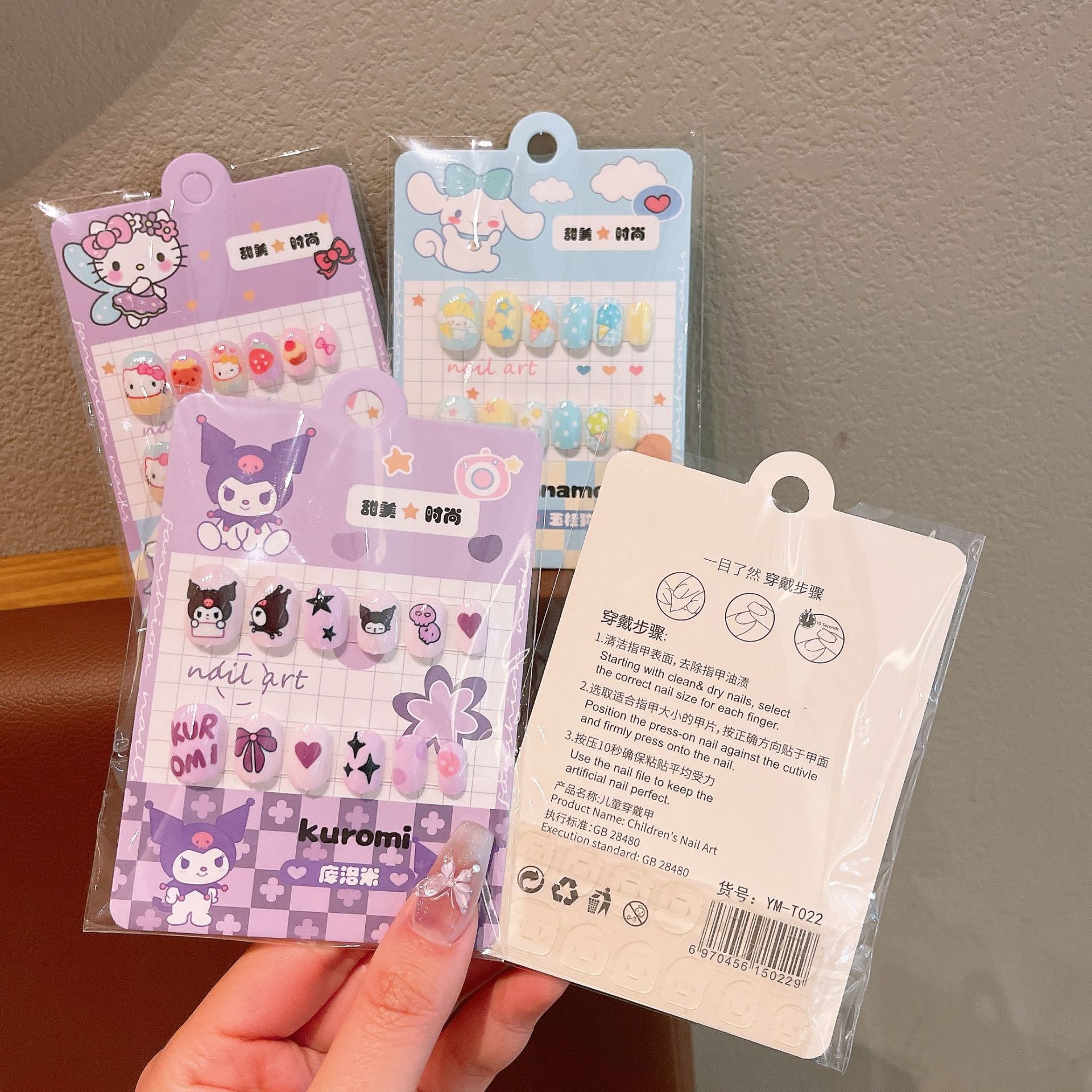 Uñas postizas desmontables para niños, pegatinas para uñas, parche para uñas tridimensional de dibujos animados lindo, pieza para uñas, uñas postizas acabadas