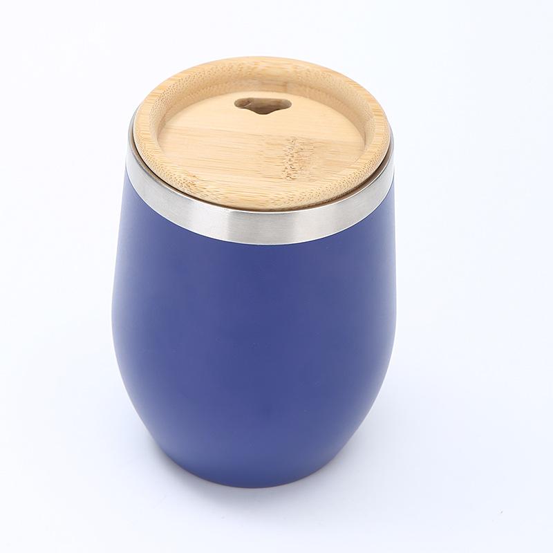 Taza de huevo swig de bambú de 12 oz para llevar, acero inoxidable 304, taza con forma de cáscara de huevo en forma de U, mini taza termo de doble capa al por mayor