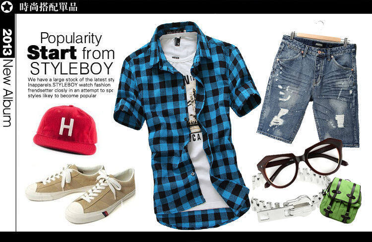 Tendencia de Moda Masculina Verano 2025 Nueva Camisa Casual de Solapa a Cuadros Moda Juvenil Camisa Casual de Manga Corta