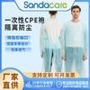 Bata CPE desechable de uso inverso con hebilla para el pulgar, bata de aislamiento, manga larga con puño elástico, delantal, ropa de trabajo protectora de plástico