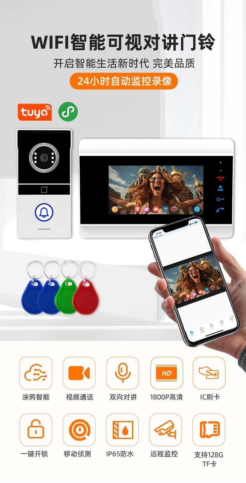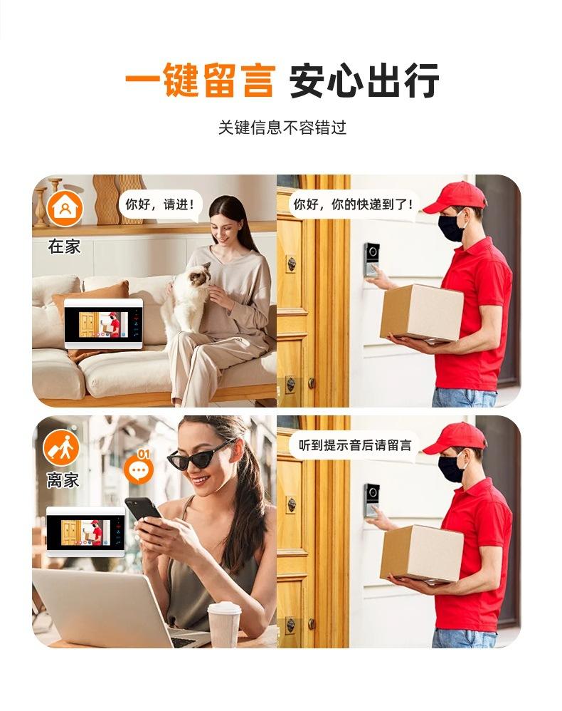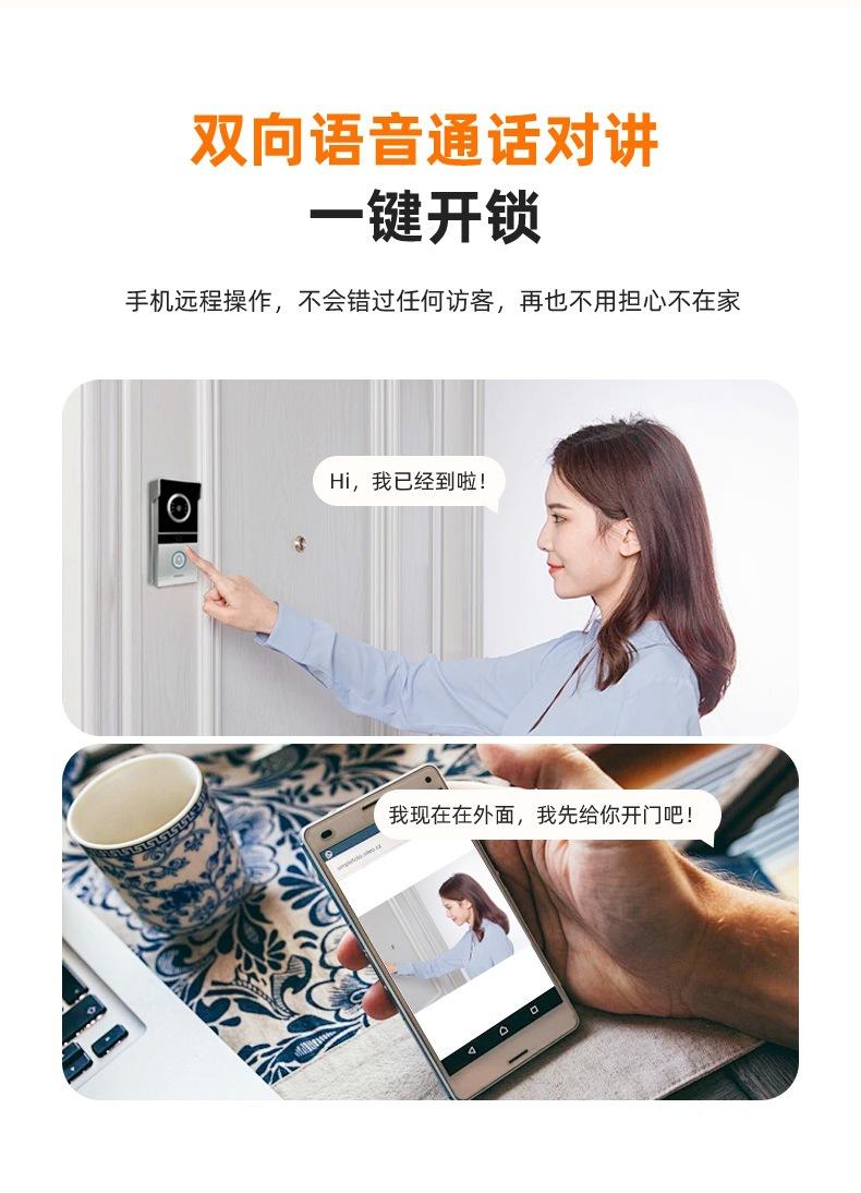 Timbre de video inteligente transfronterizo, notificación de timbre en la aplicación, control remoto, llamada, intercomunicador de voz bidireccional, timbre de puerta de casa