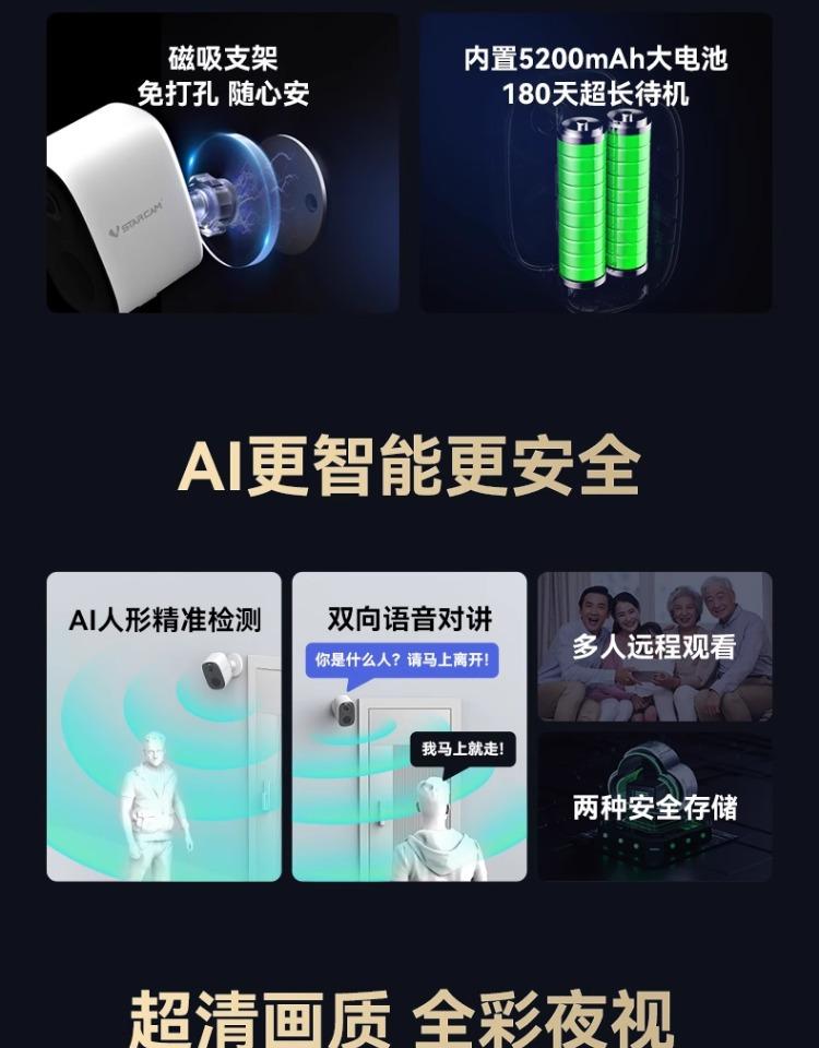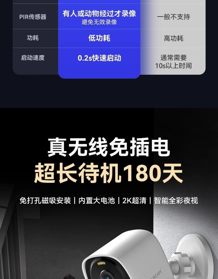 Suministro transfronterizo de cámara inalámbrica con batería sin enchufes, cámara inalámbrica Wifi de bajo consumo, cámara con batería de bajo consumo