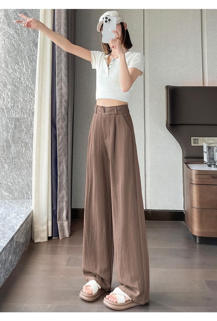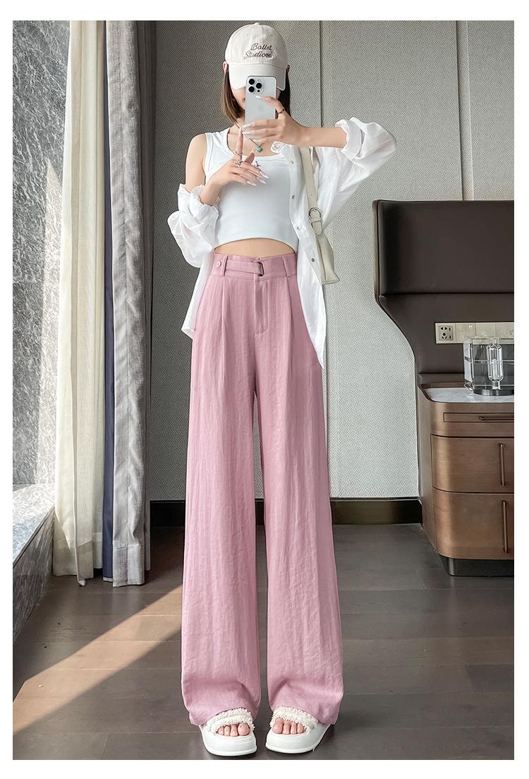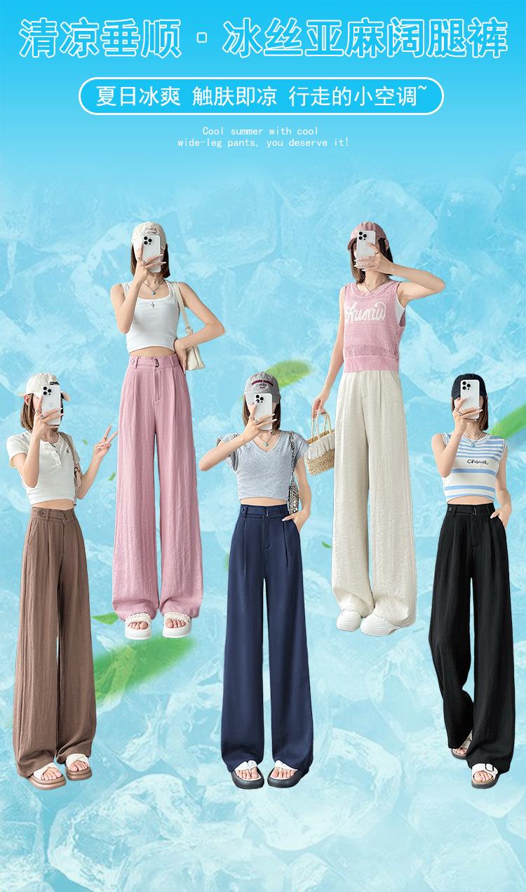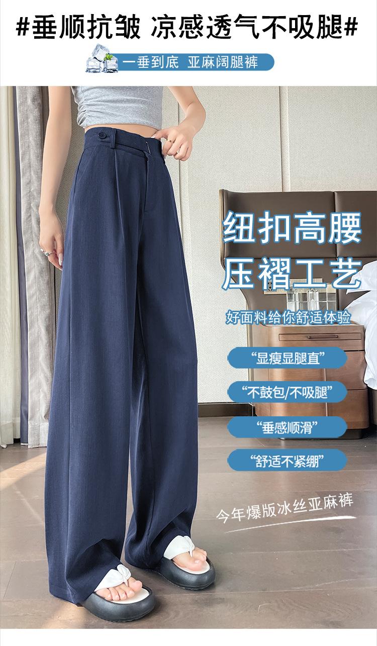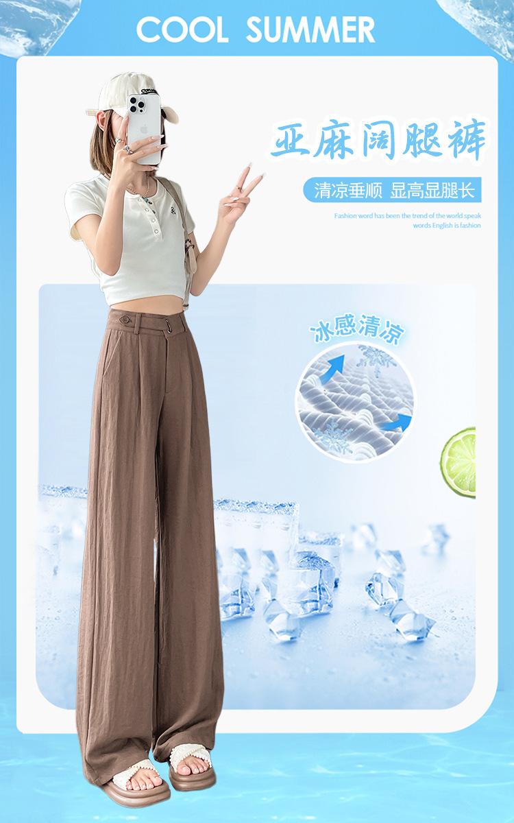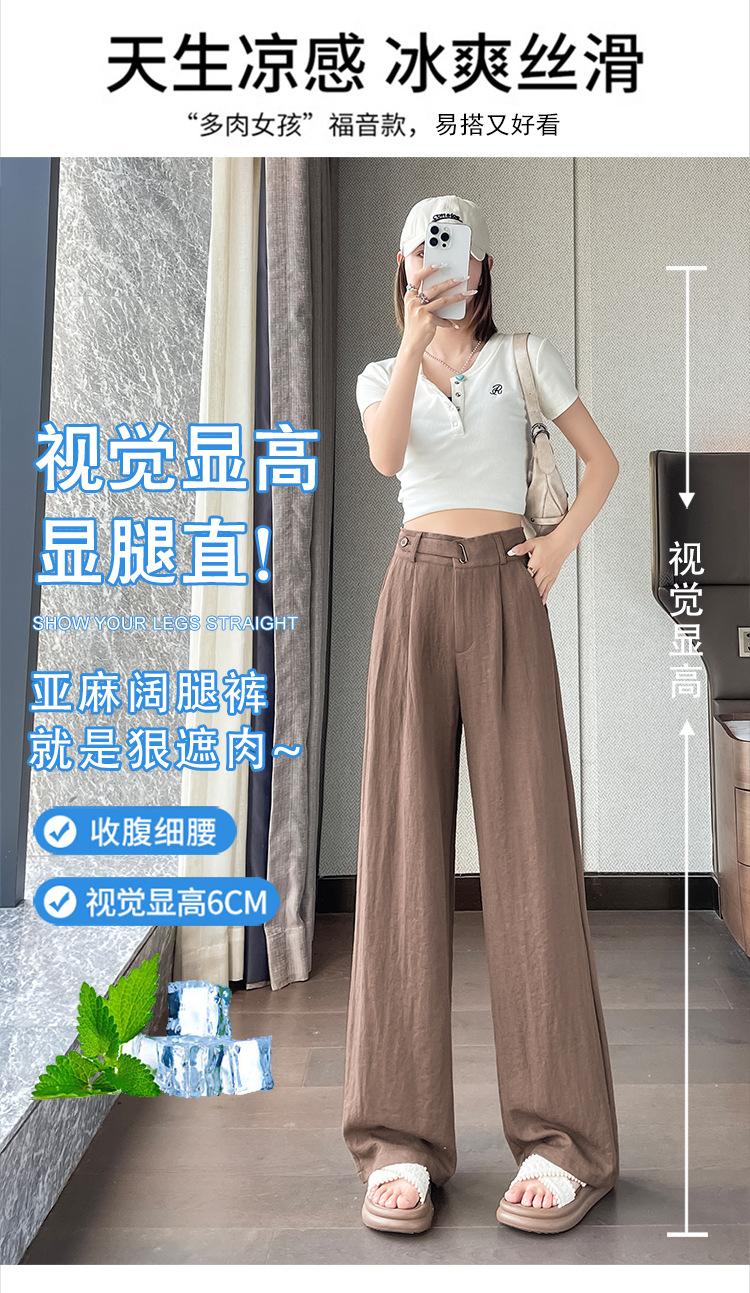 Verano 2025 Nueva Llegada Pantalones de Lino de Cintura Alta Seda Hielo Pierna Ancha Pantalones Holgados Rectos Casuales con Caída para Mujer