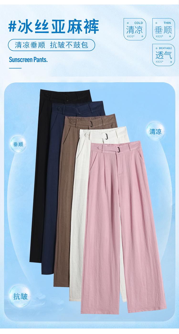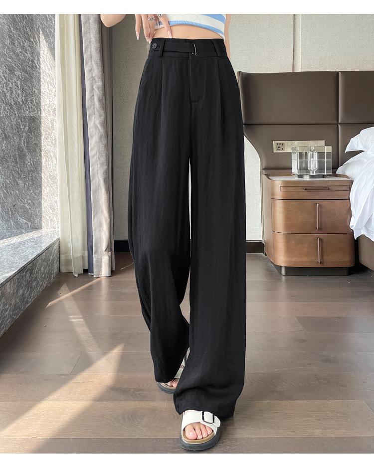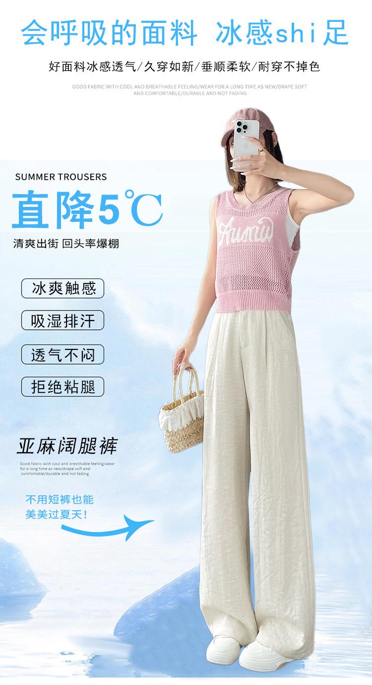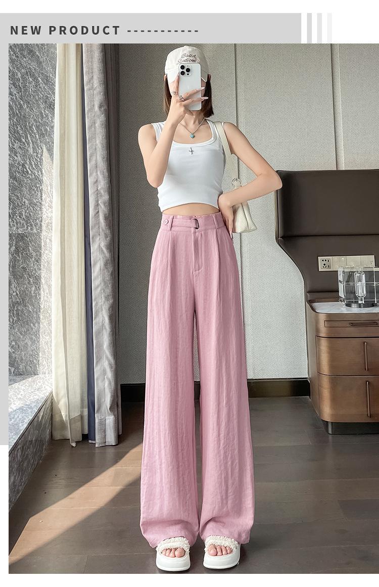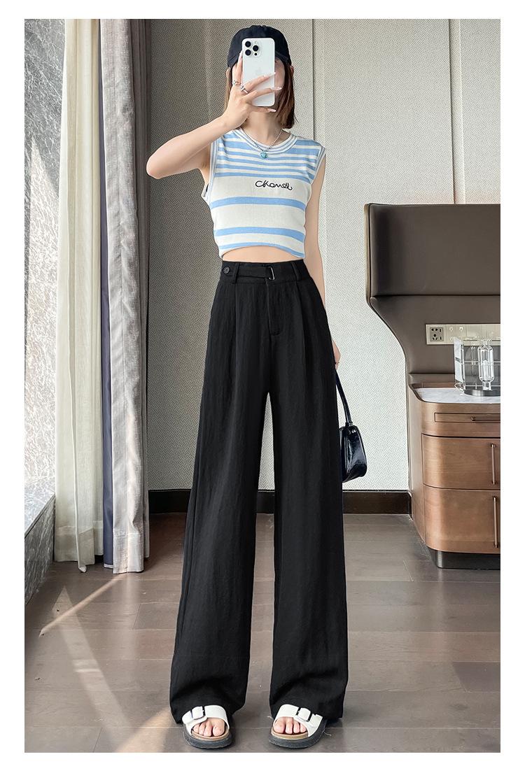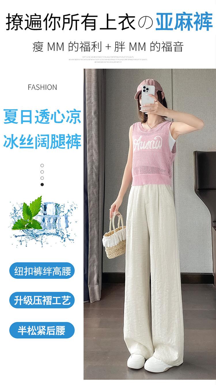 Verano 2025 Nueva Llegada Pantalones de Lino de Cintura Alta Seda Hielo Pierna Ancha Pantalones Holgados Rectos Casuales con Caída para Mujer