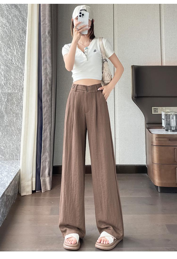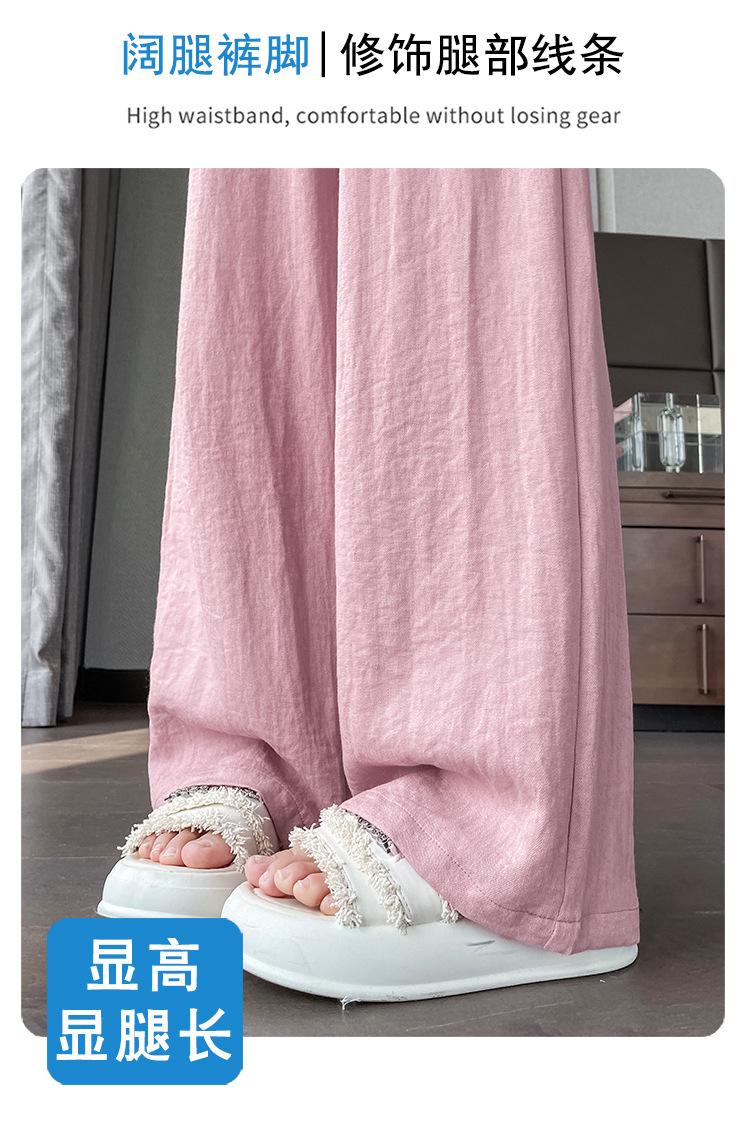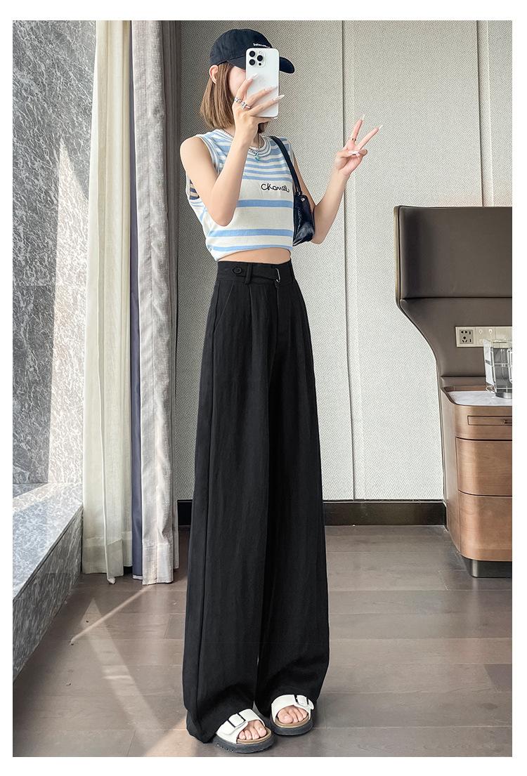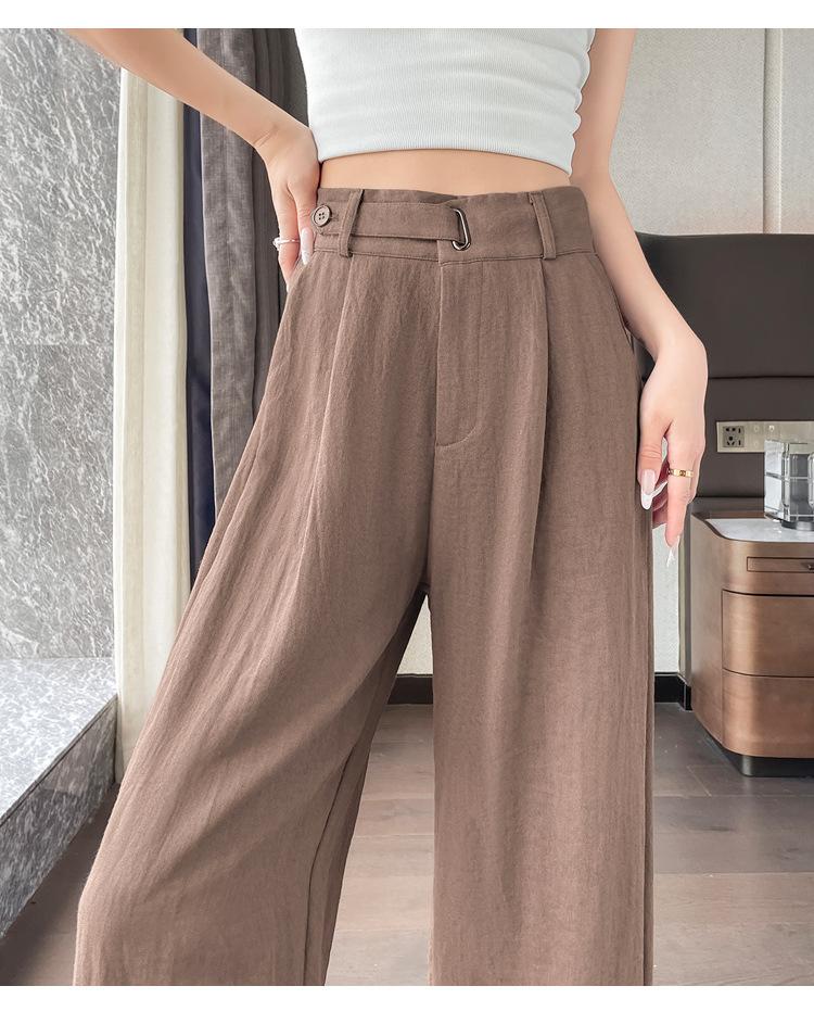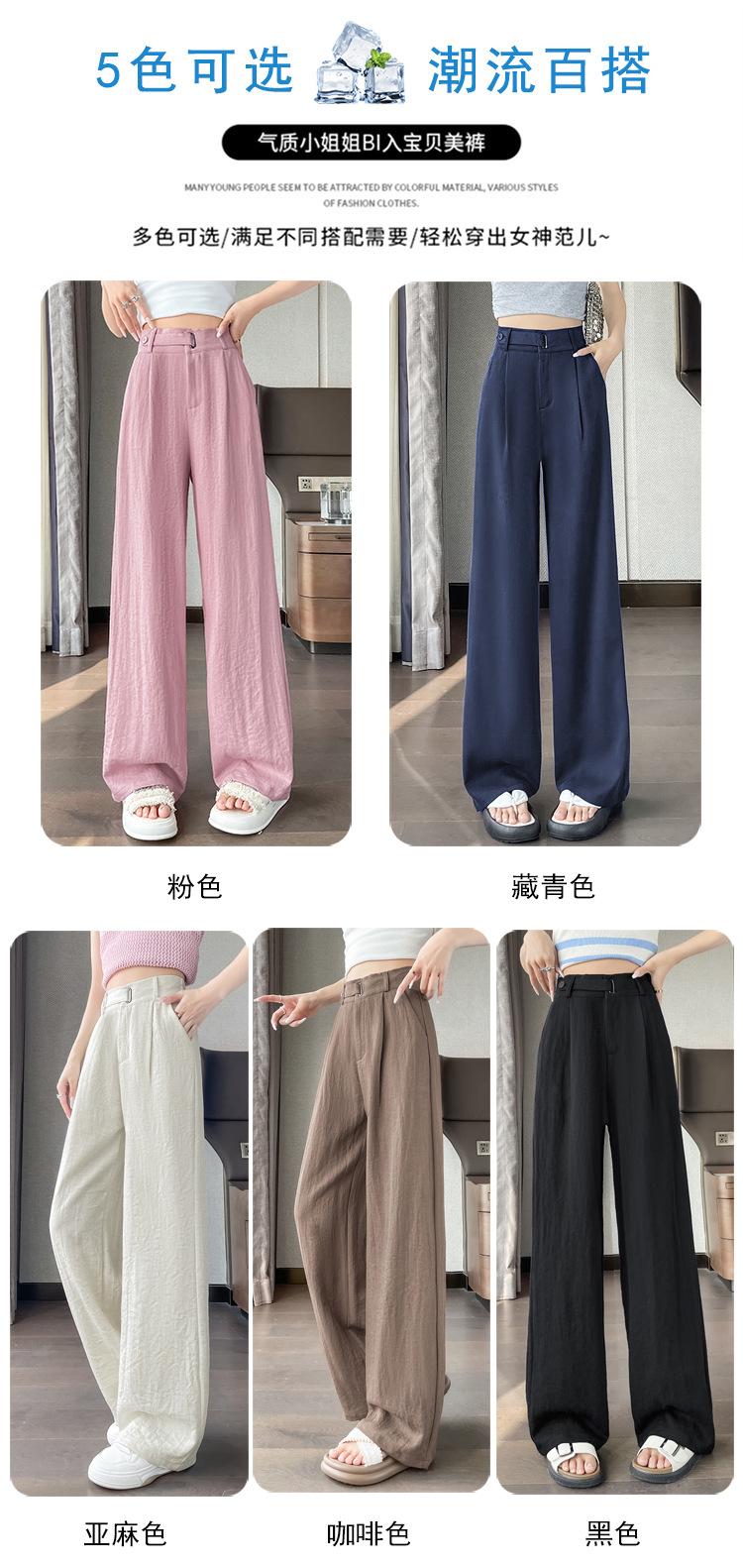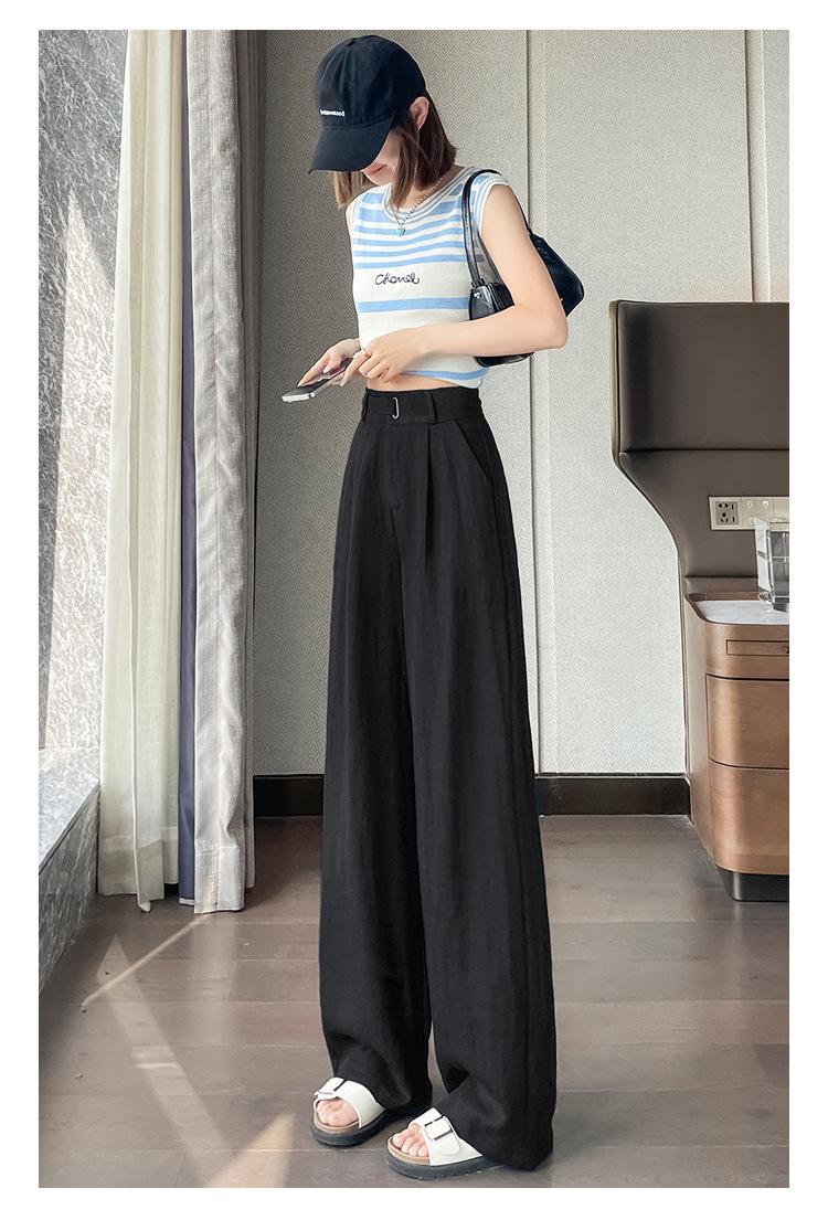 Verano 2025 Nueva Llegada Pantalones de Lino de Cintura Alta Seda Hielo Pierna Ancha Pantalones Holgados Rectos Casuales con Caída para Mujer