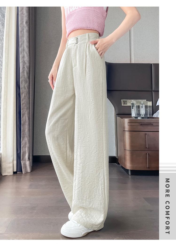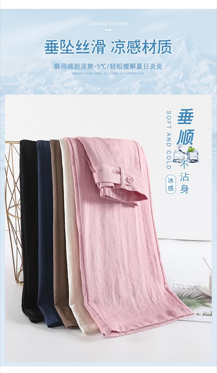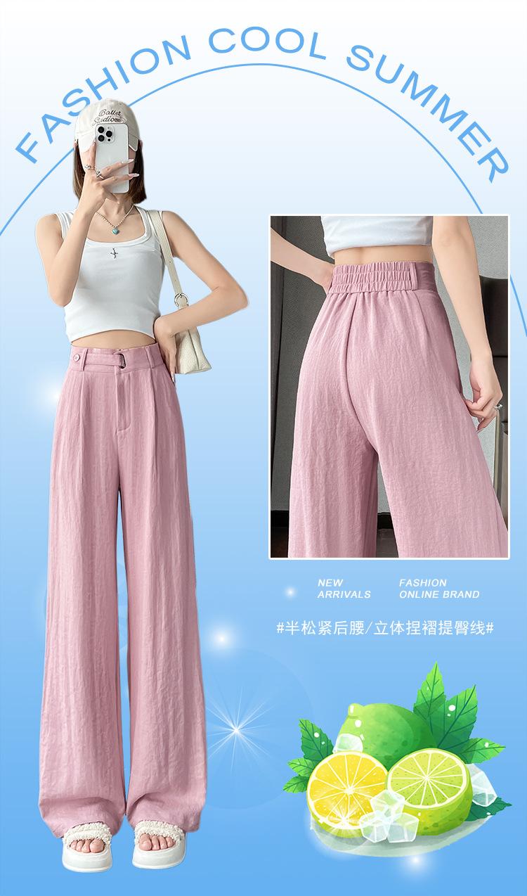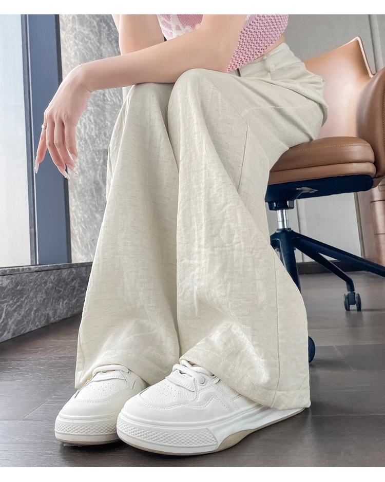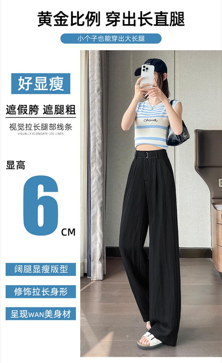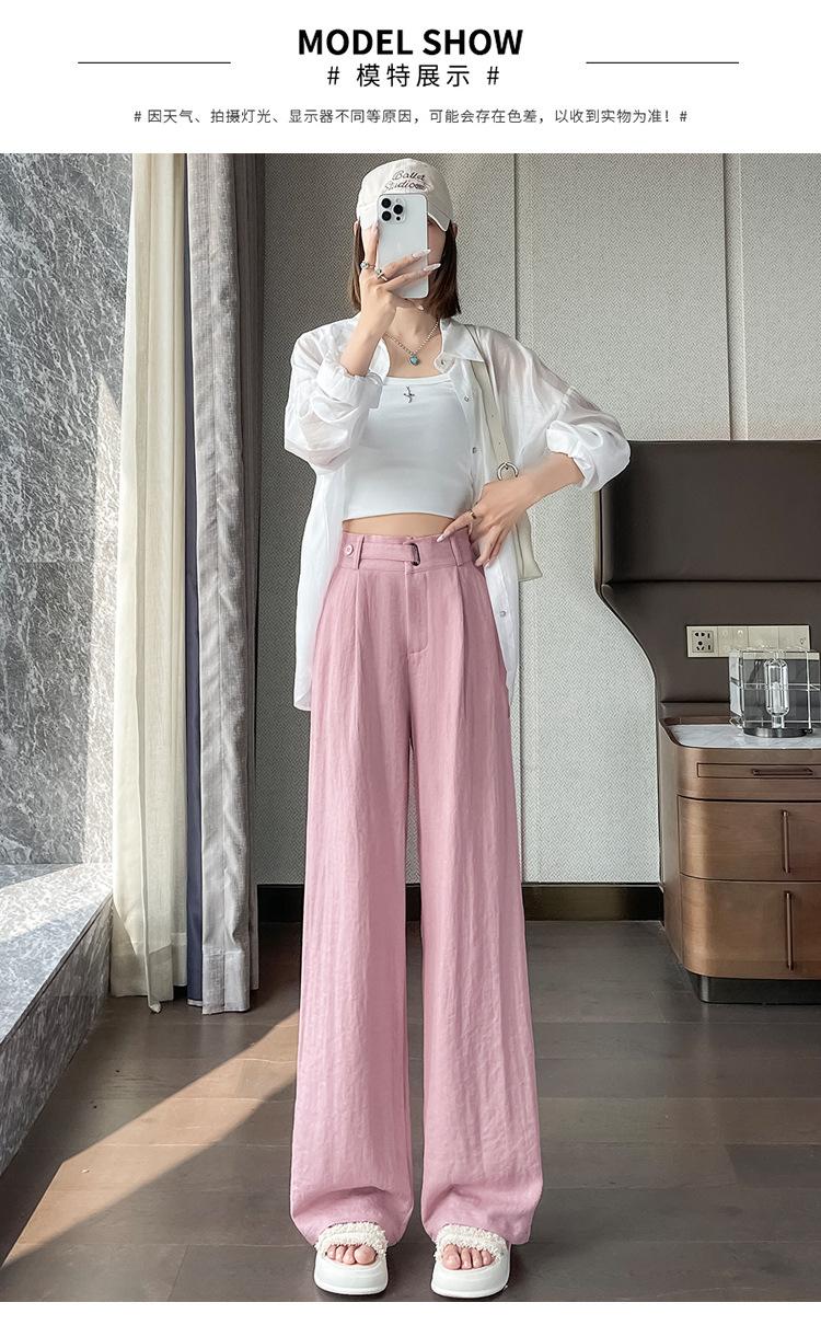 Verano 2025 Nueva Llegada Pantalones de Lino de Cintura Alta Seda Hielo Pierna Ancha Pantalones Holgados Rectos Casuales con Caída para Mujer