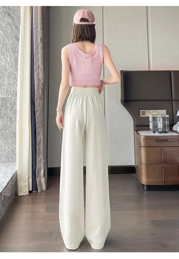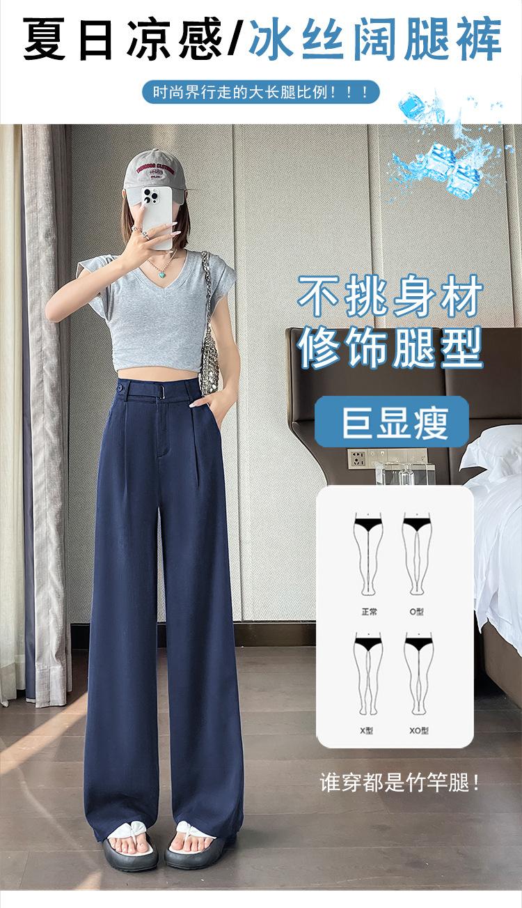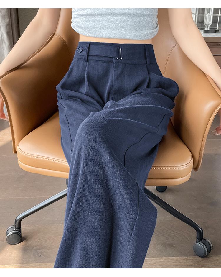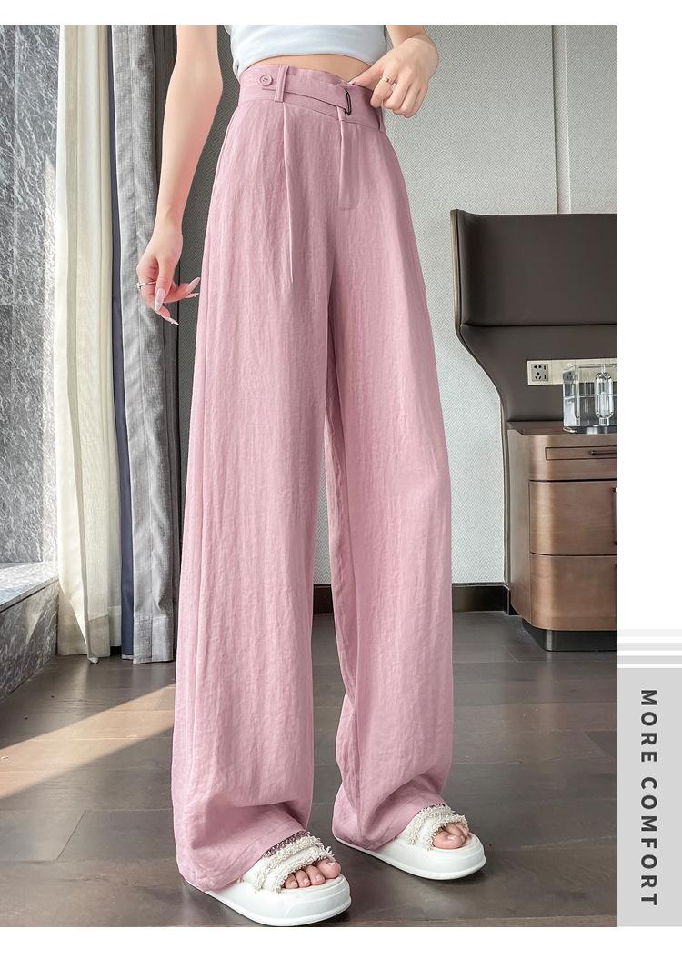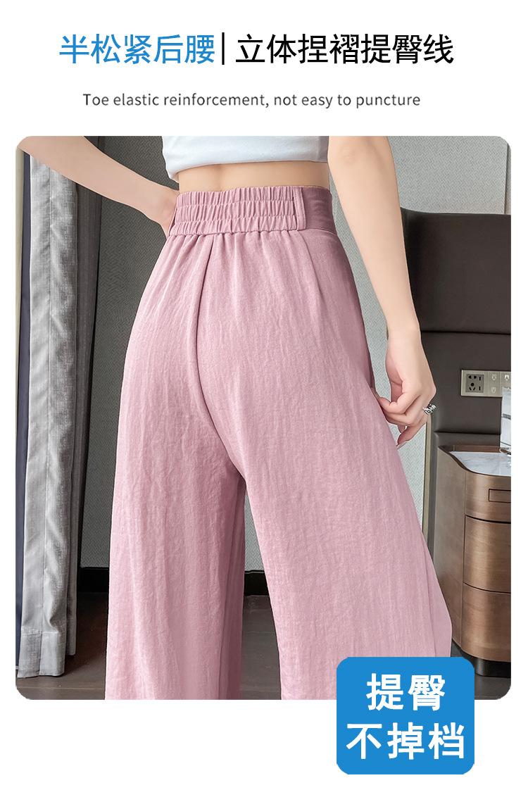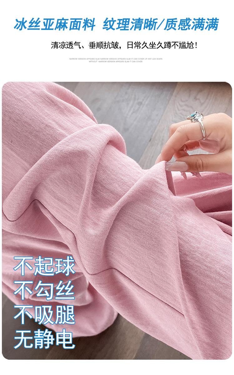 Verano 2025 Nueva Llegada Pantalones de Lino de Cintura Alta Seda Hielo Pierna Ancha Pantalones Holgados Rectos Casuales con Caída para Mujer