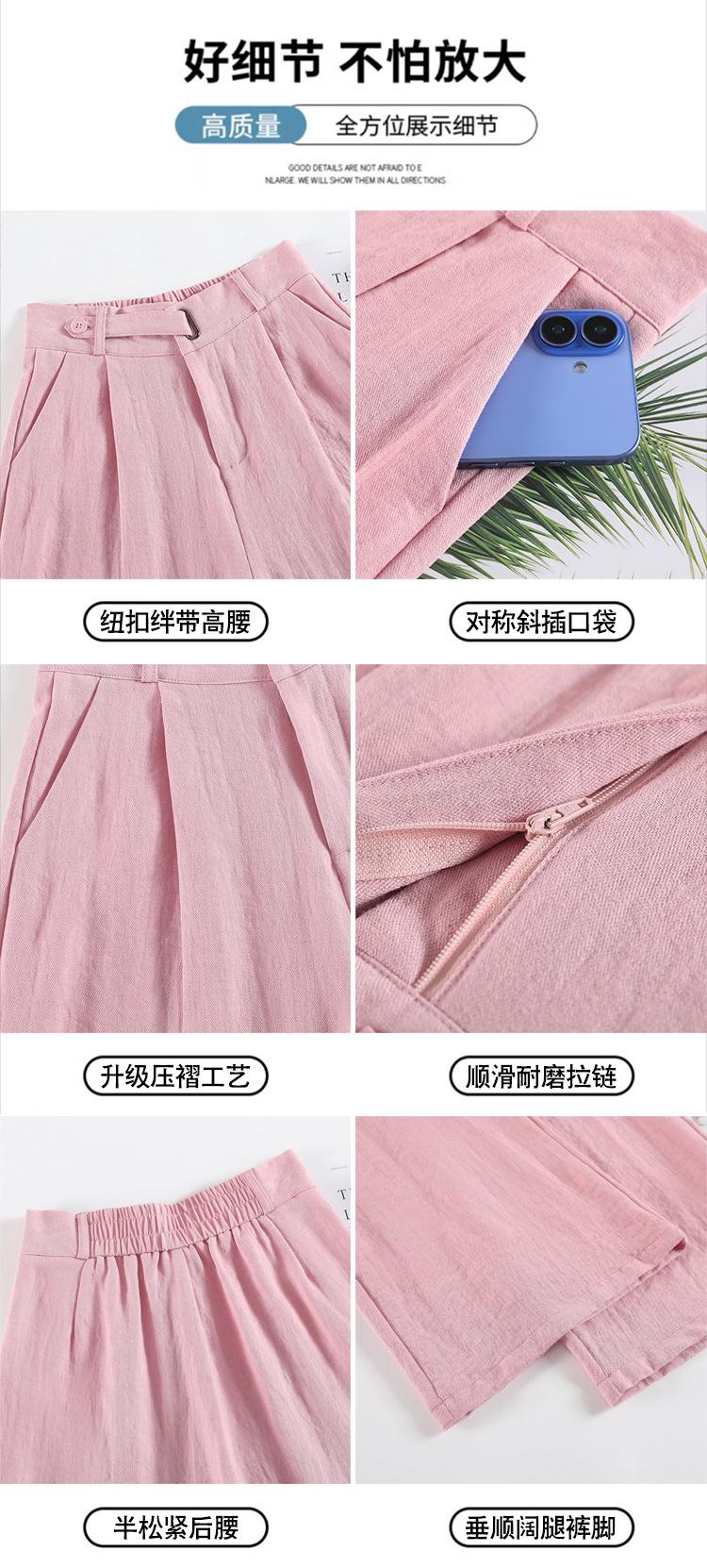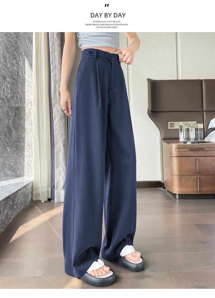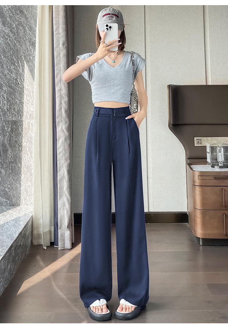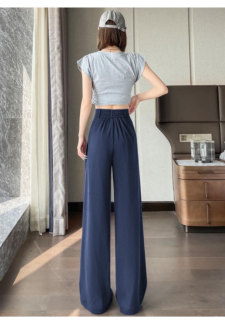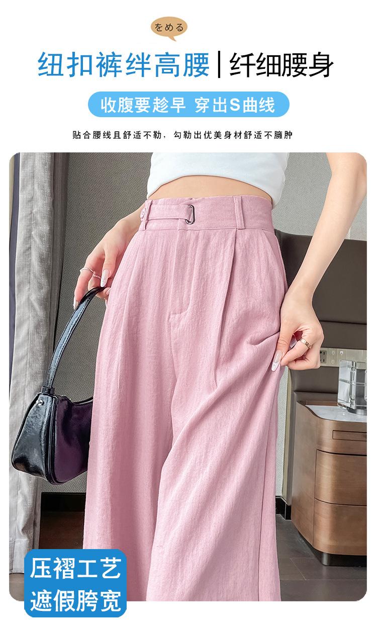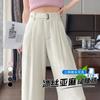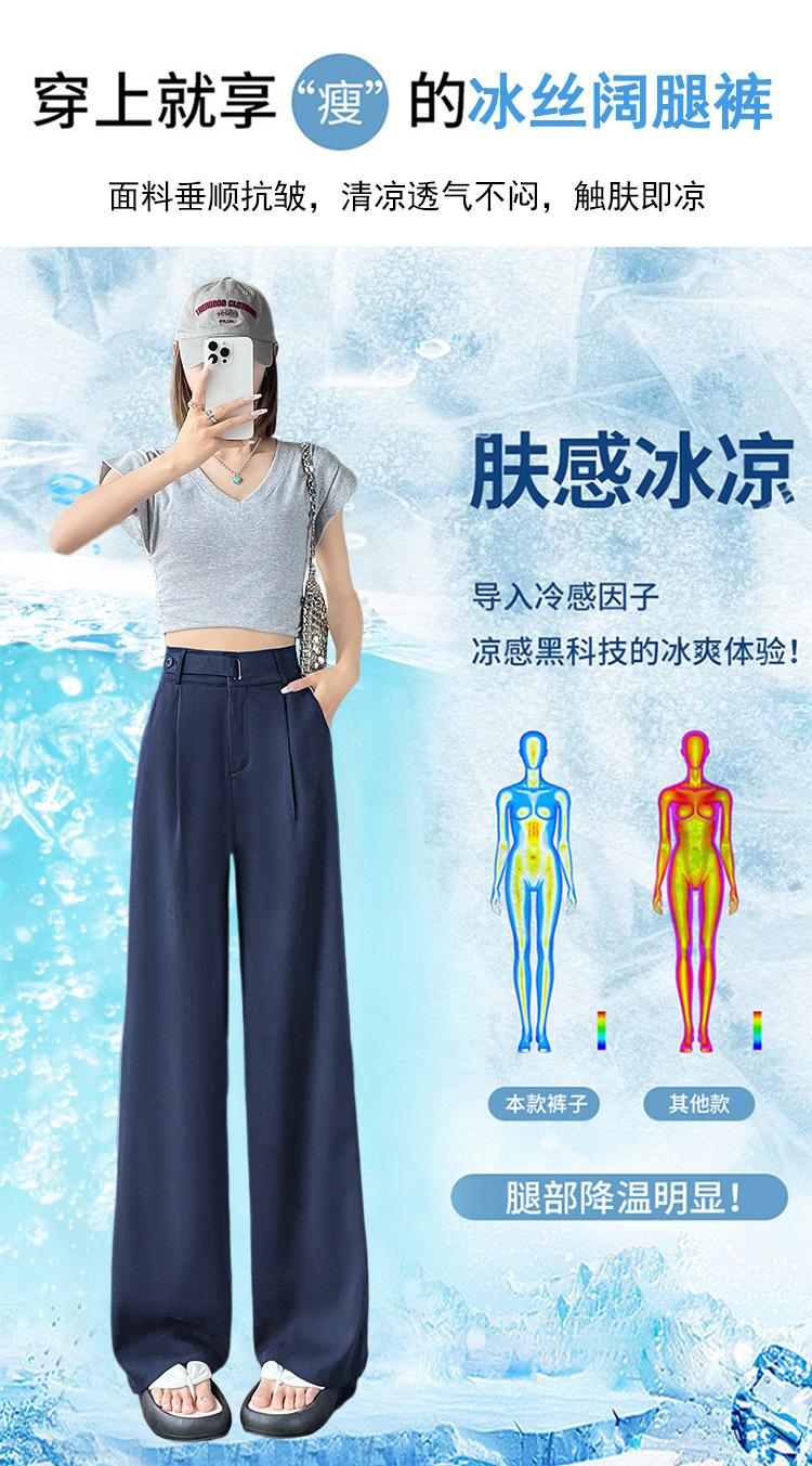 Verano 2025 Nueva Llegada Pantalones de Lino de Cintura Alta Seda Hielo Pierna Ancha Pantalones Holgados Rectos Casuales con Caída para Mujer