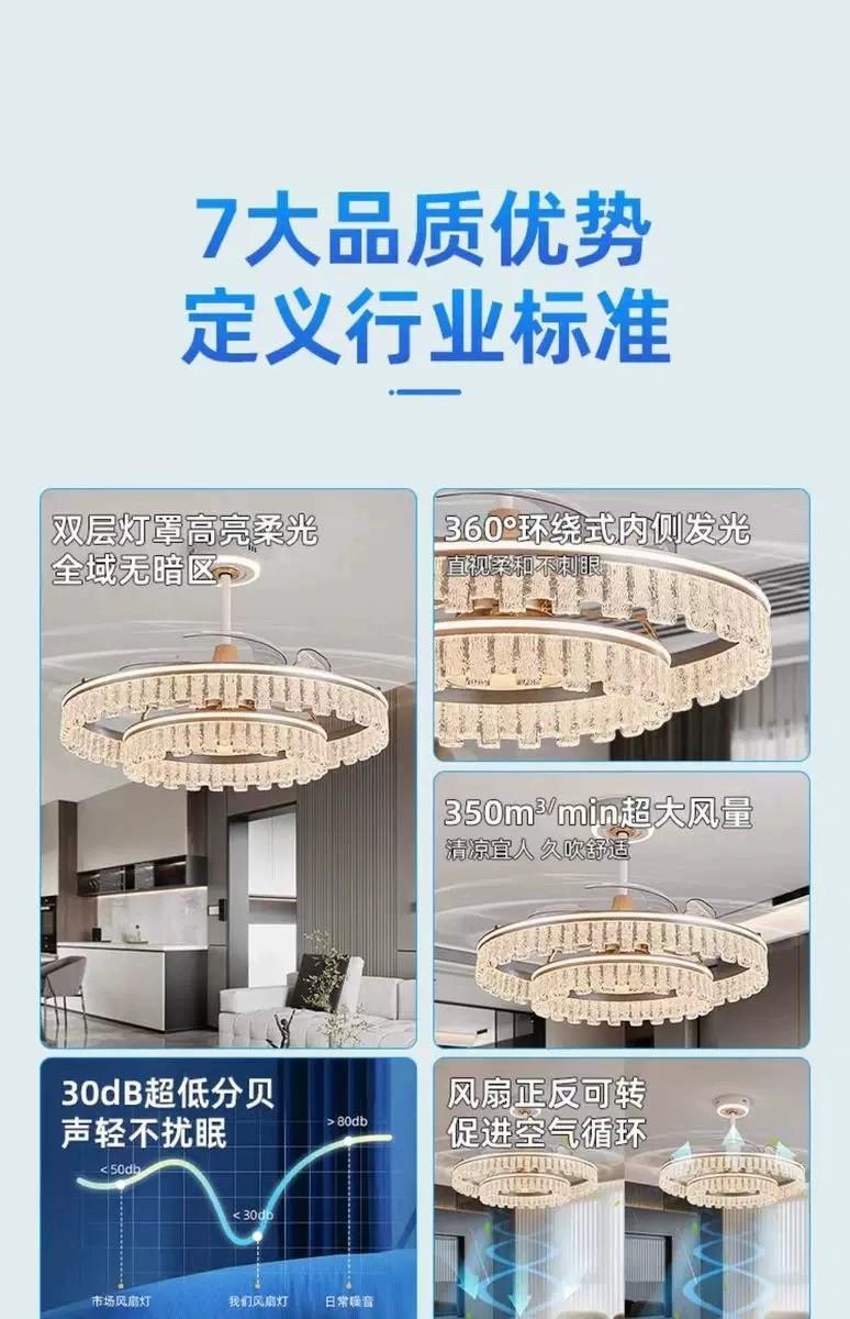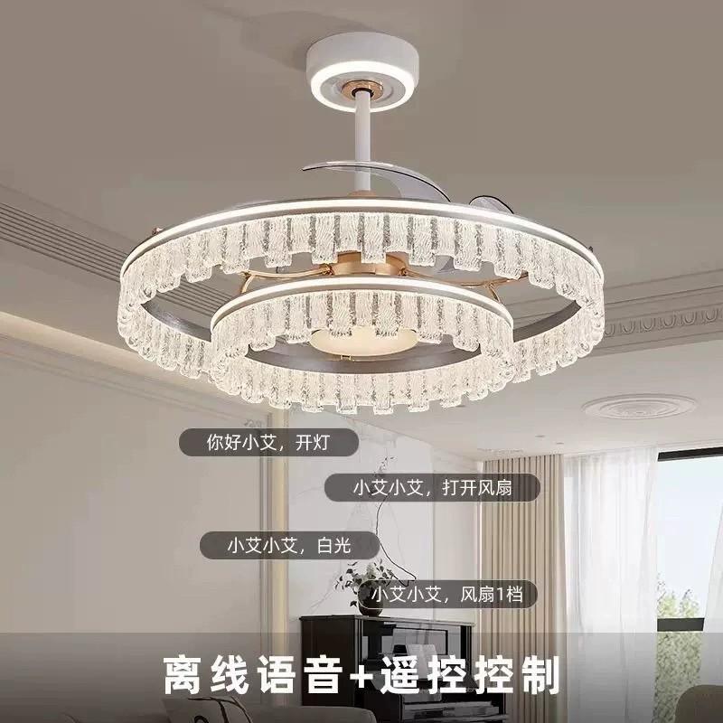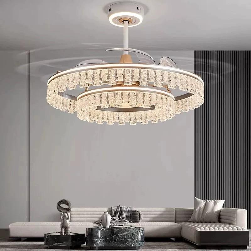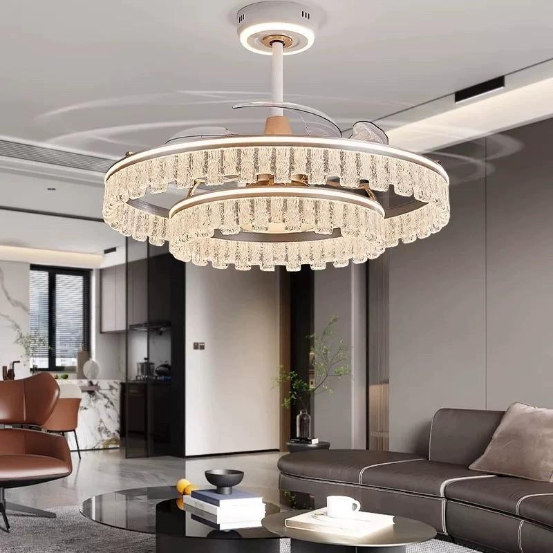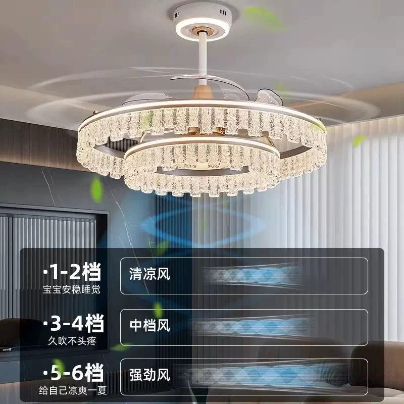 Lámpara Ventilador de Sala de Estar 2025 Nuevo Restaurante Lámpara de Araña Ventilador Invisible Integrado Hogar Recámara Principal Lámpara de Techo Ventilador