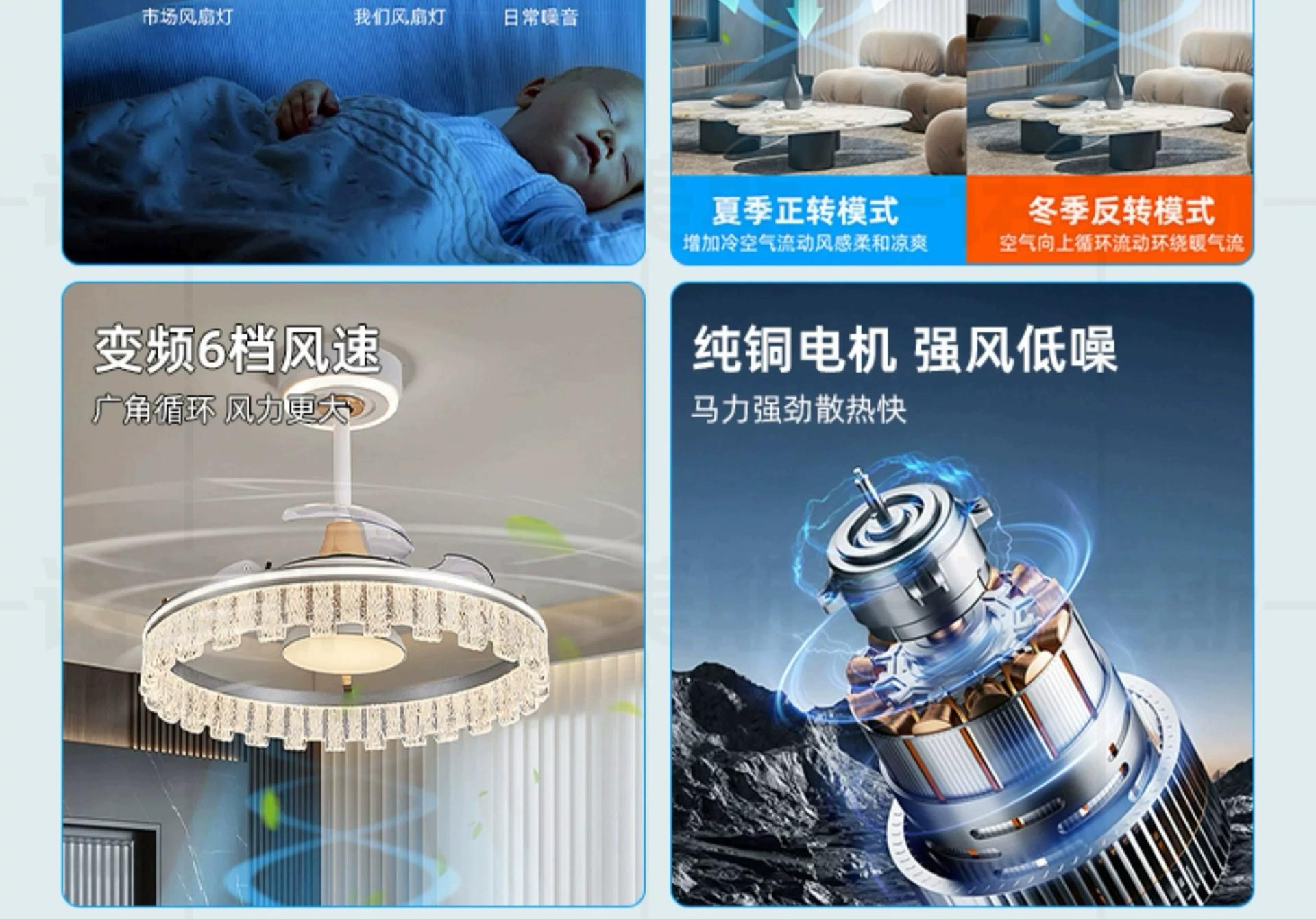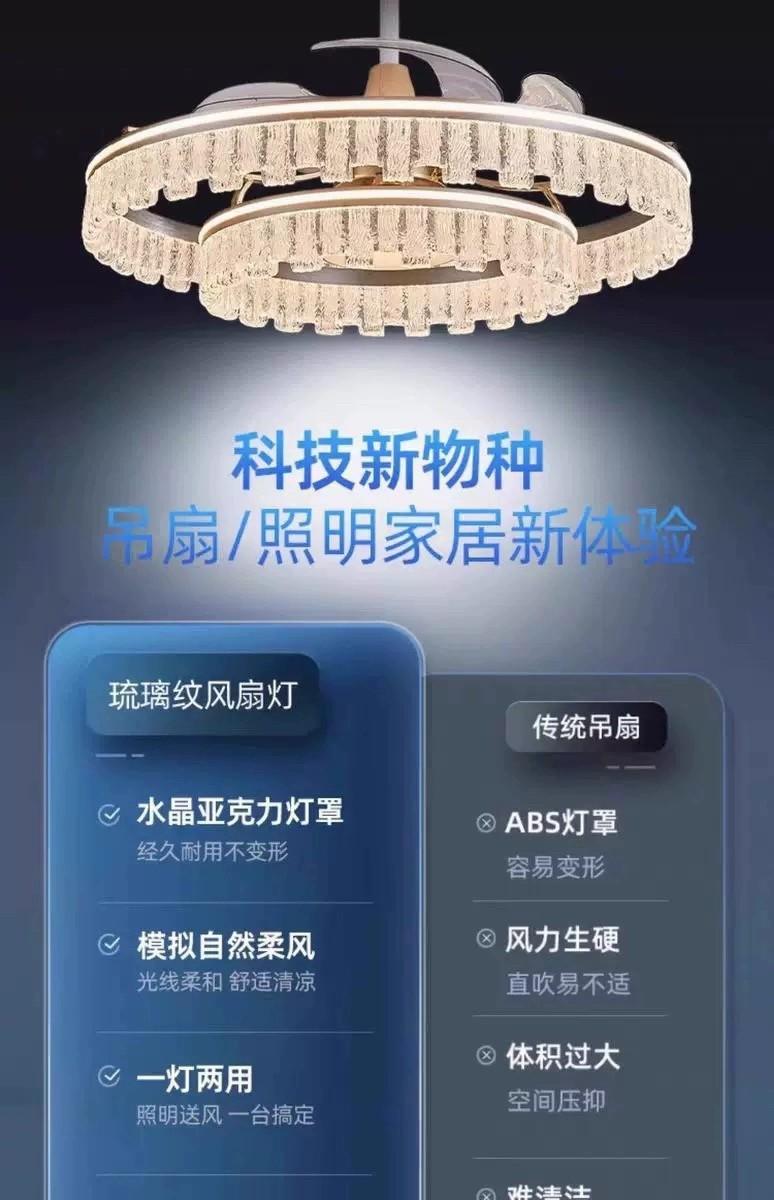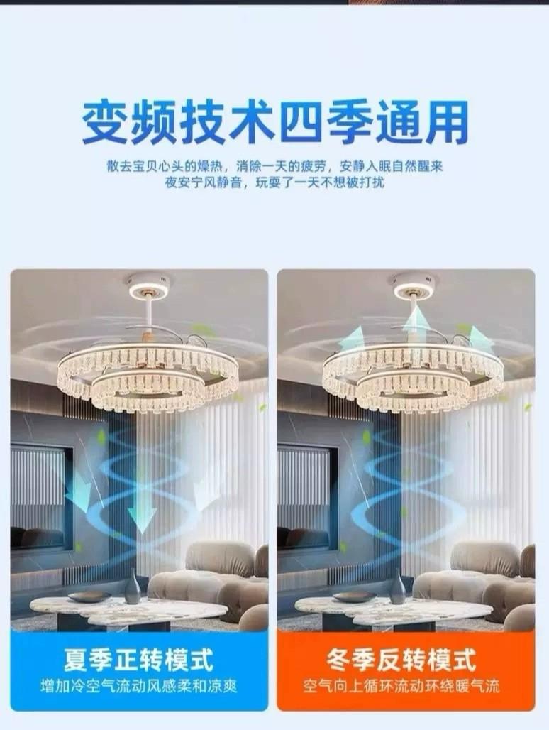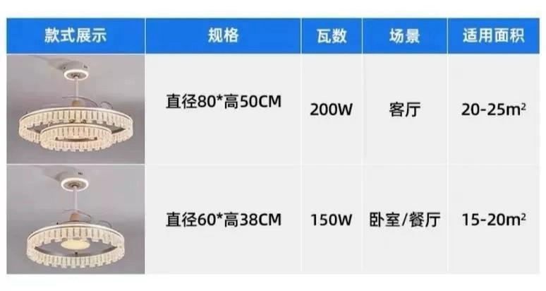 Lámpara Ventilador de Sala de Estar 2025 Nuevo Restaurante Lámpara de Araña Ventilador Invisible Integrado Hogar Recámara Principal Lámpara de Techo Ventilador