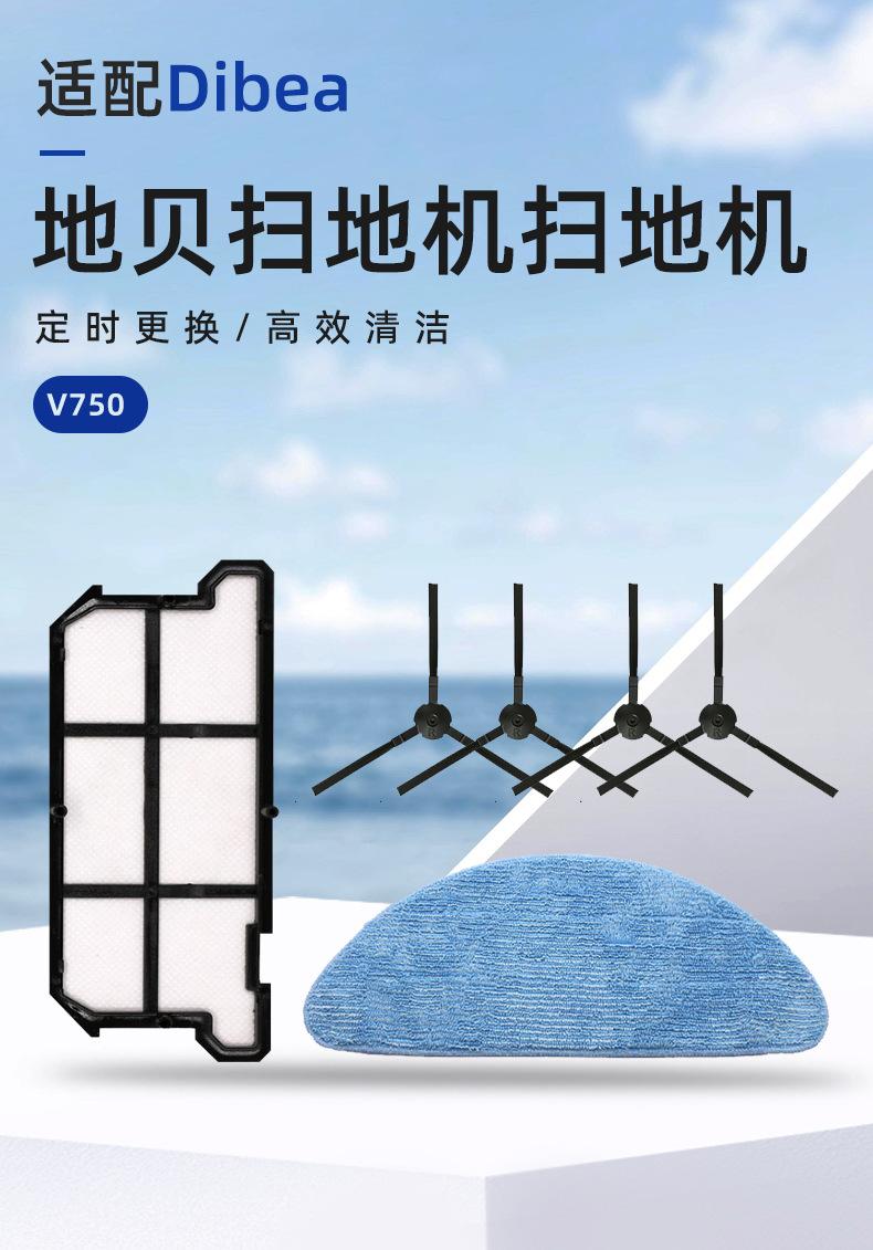 Adecuado para robot aspirador Dibea V750 accesorios cepillo lateral filtro de efecto inicial paño de mopa consumibles