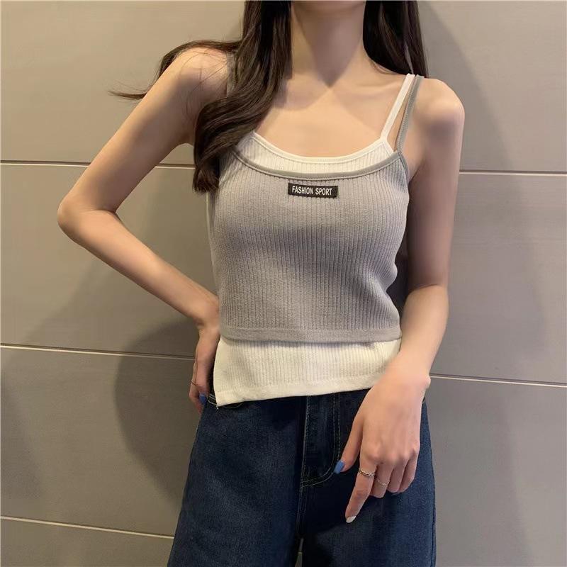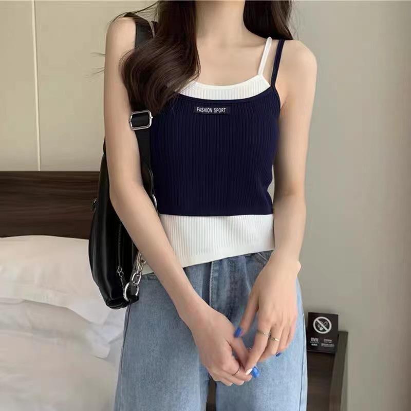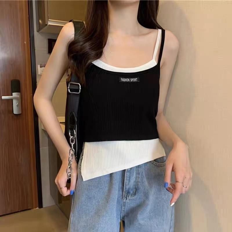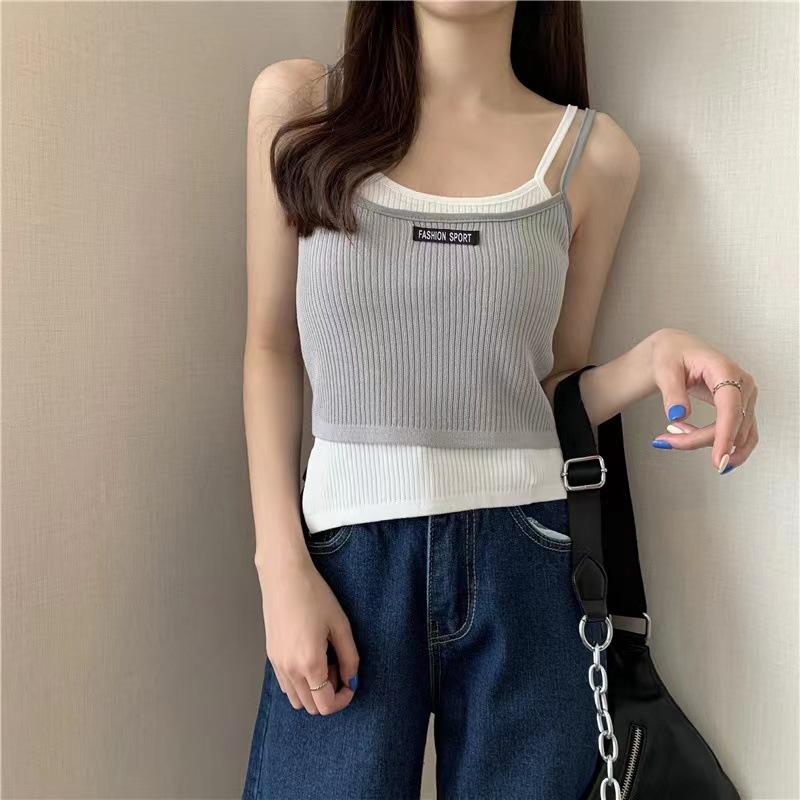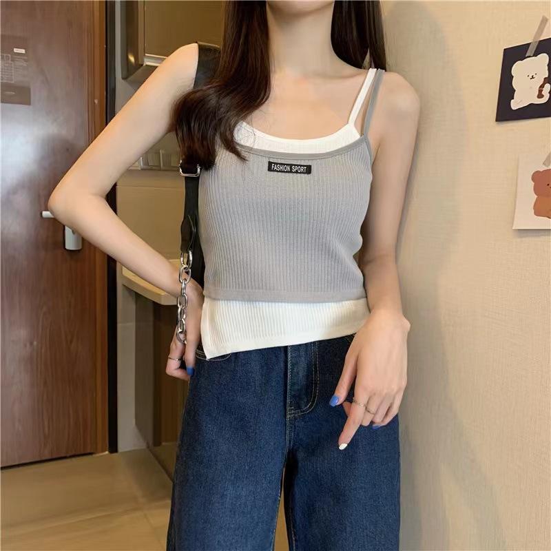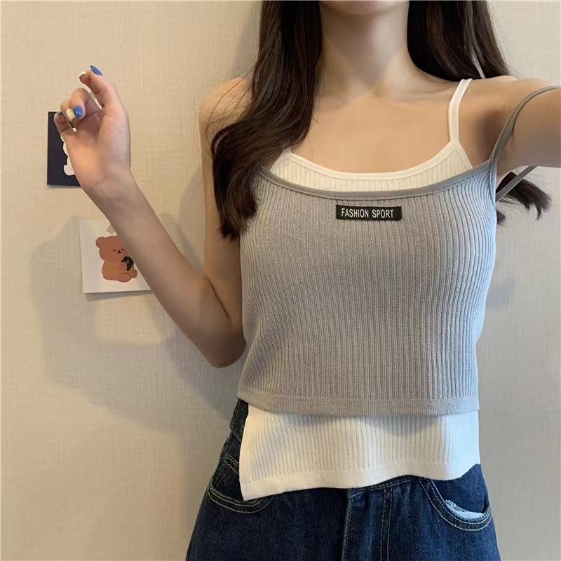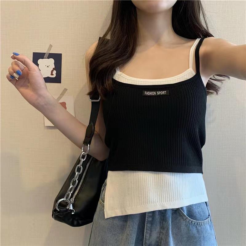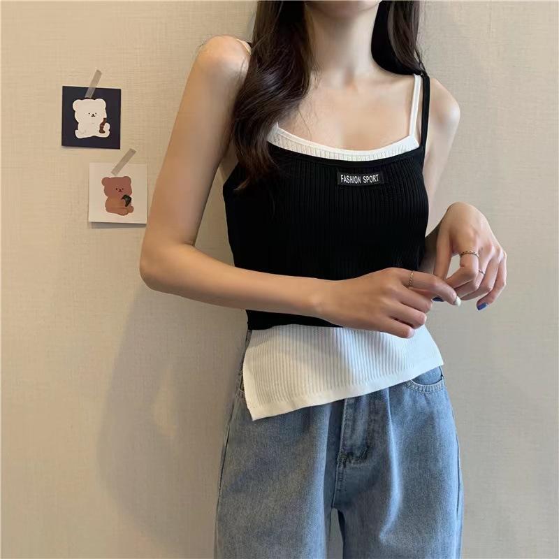 Compra Camisola pequeña de dos piezas falsas Ropa interior y exterior para mujer Verano 2025 Nuevo Ajuste ceñido Camiseta corta básica al por mayor en Joom.pro