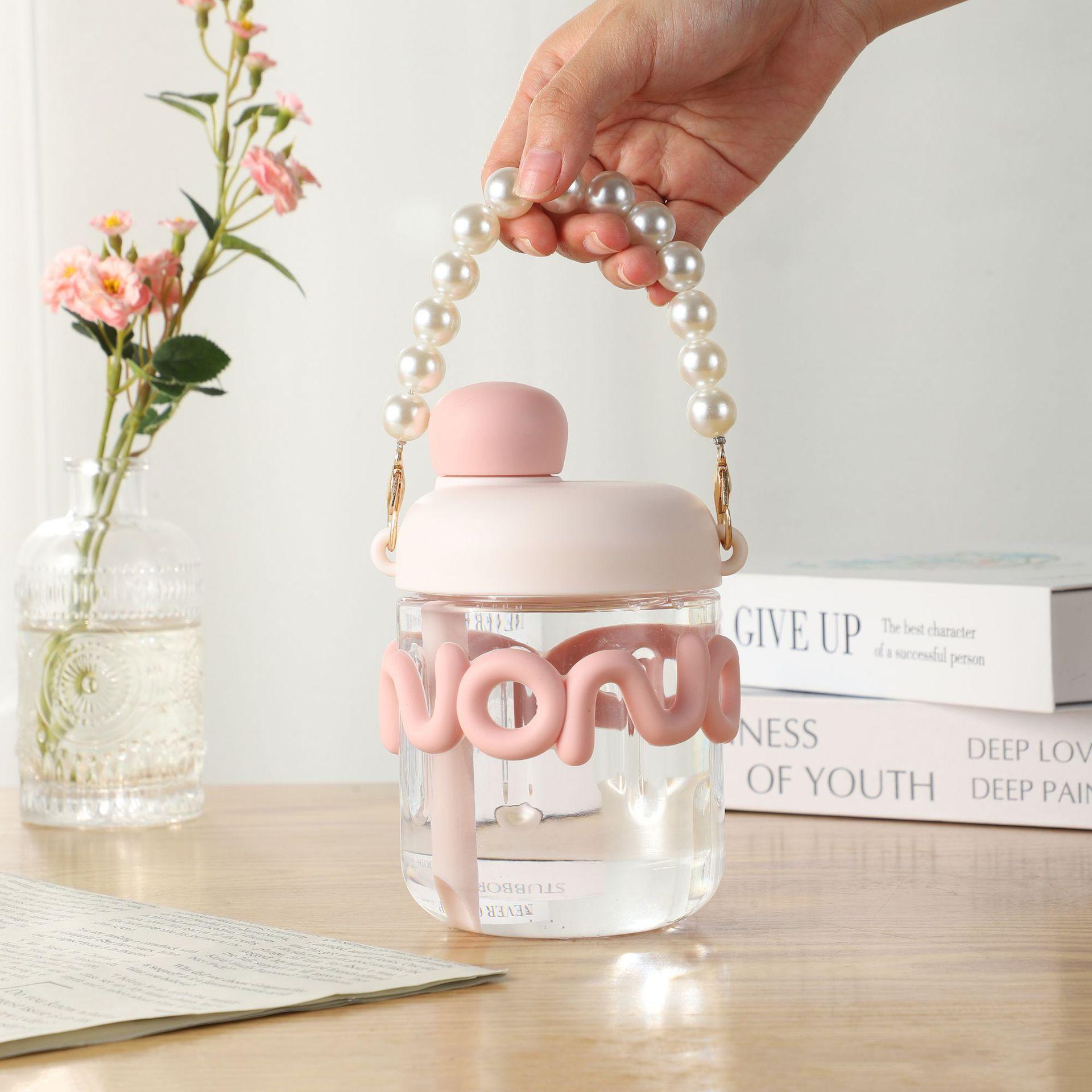 Nueva Linda Taza de Agua de Vidrio Pequeña para Estudiantes para Niños de Dibujos Animados Taza de Mano con Perla Taza Práctica Regalo Logotipo Impreso
