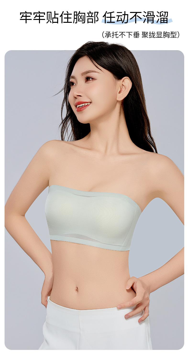 Sujetador Top de Tubo Strapless Nude para Mujer Fino Verano Invisible Antideslizante Sin Costuras Anti-Exposición Pecho Pequeño Push-Up
