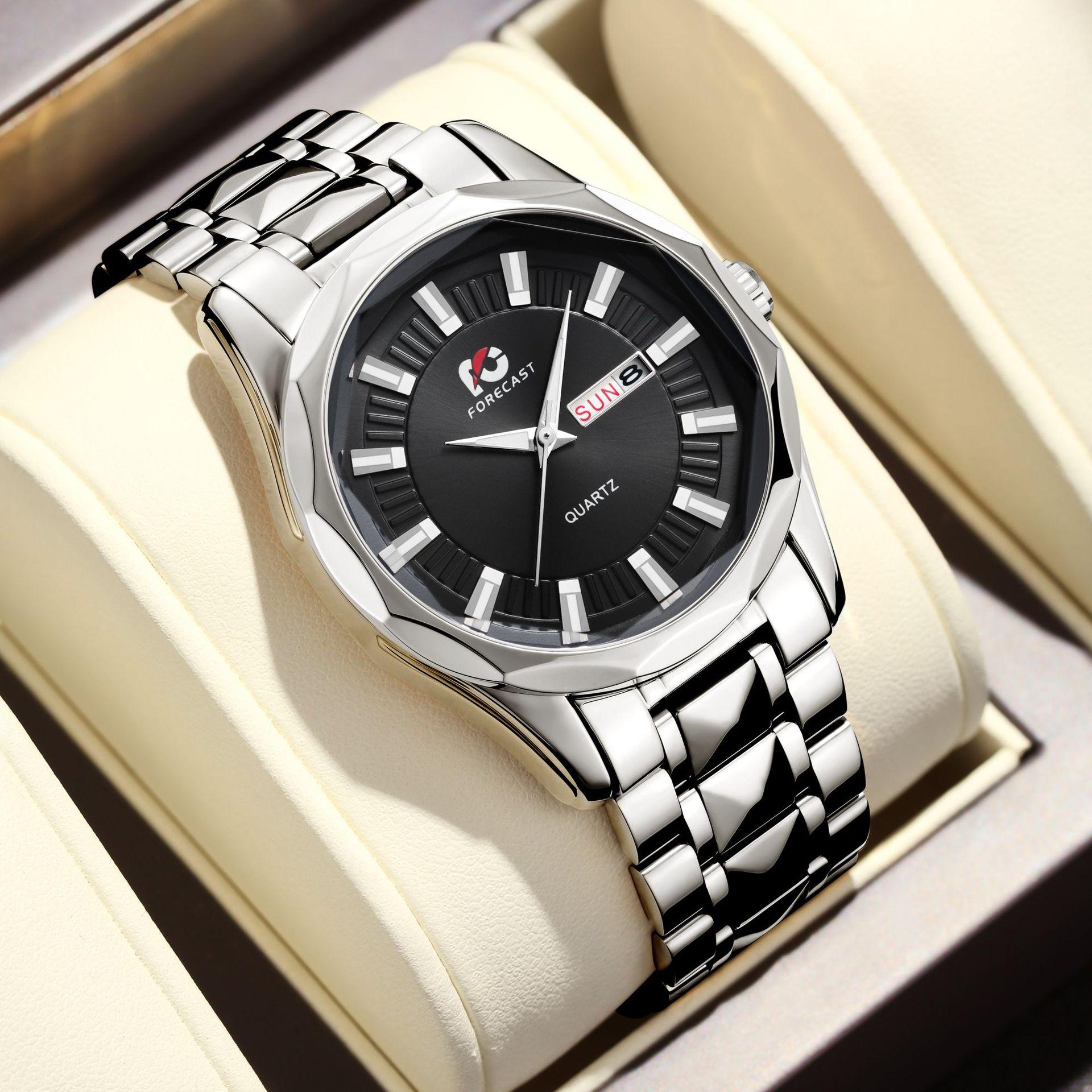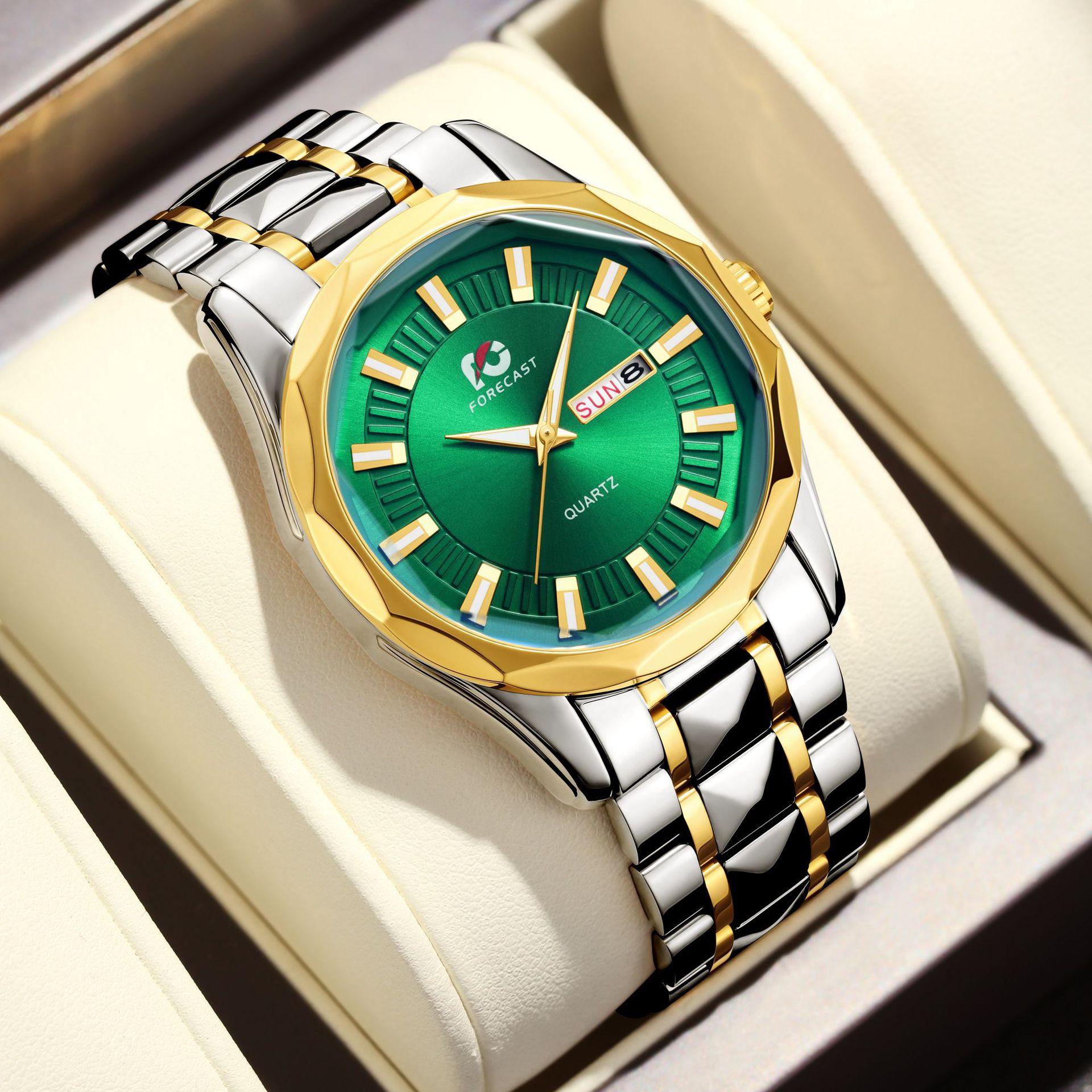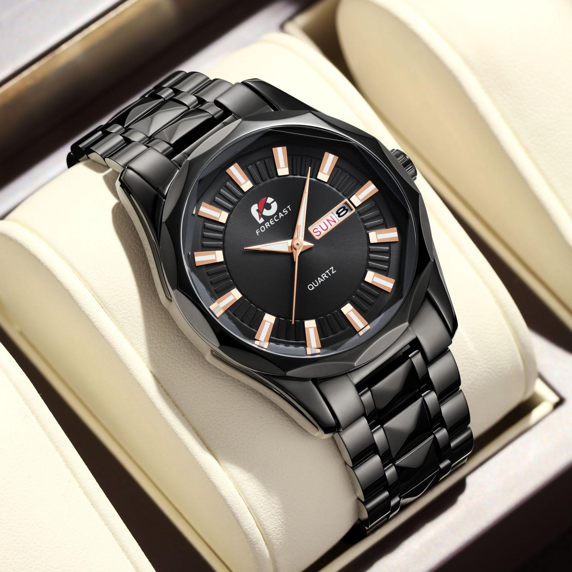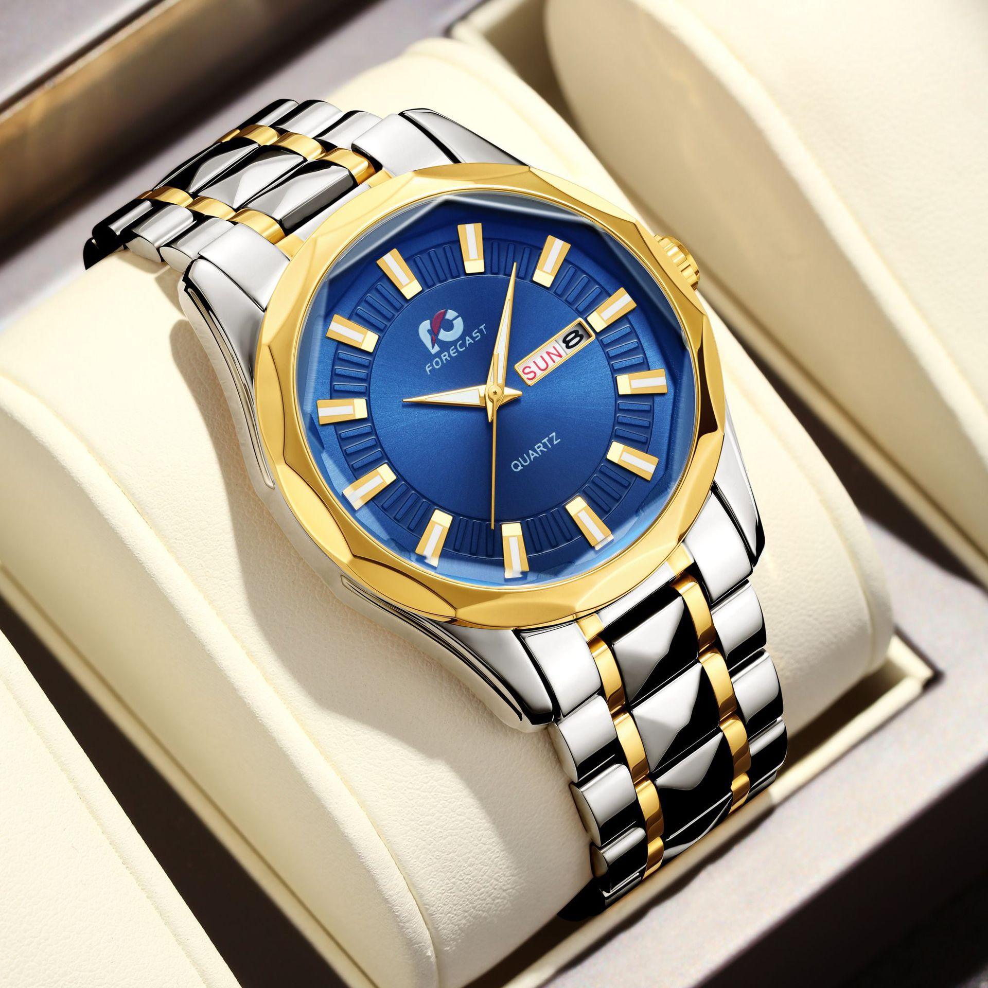 Reloj de Hombre 2025 Nueva Moda Lujo Accesible Movimiento de Cuarzo Luminoso Remache Correa de Acero Calendario Dual Reloj Impermeable para Hombre