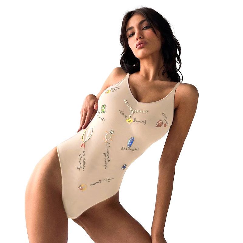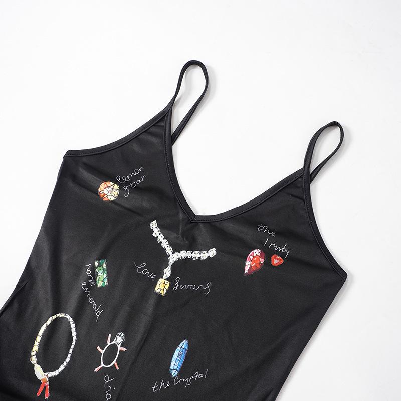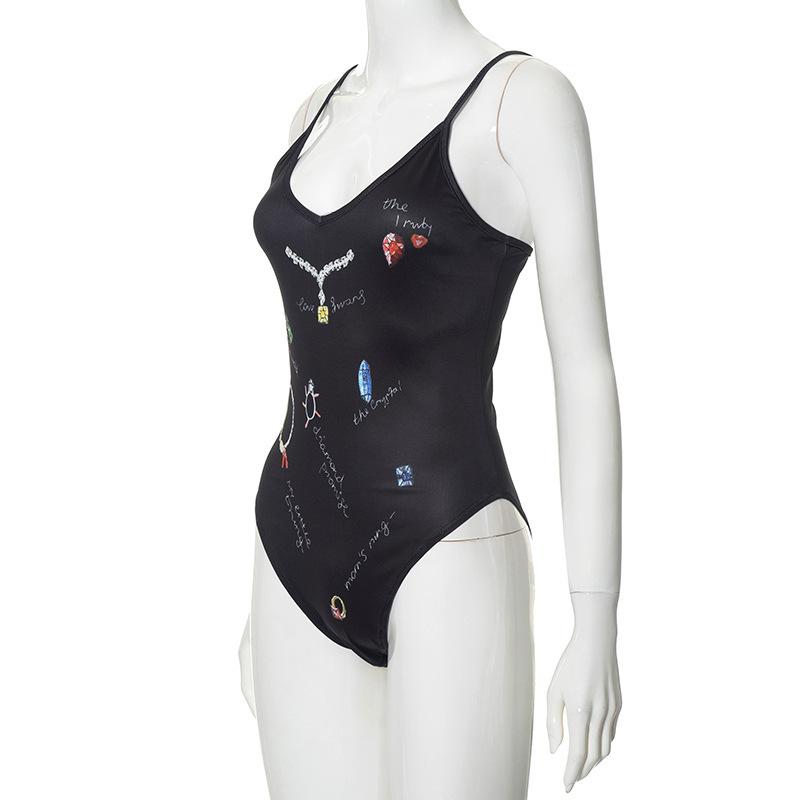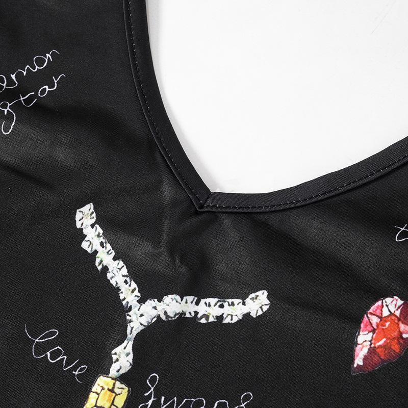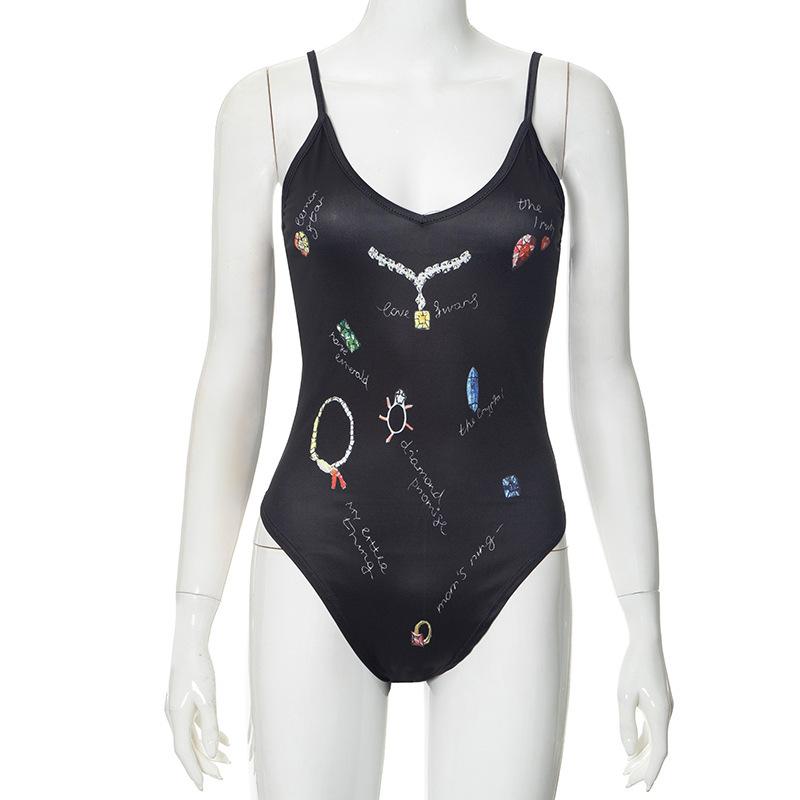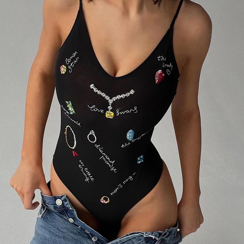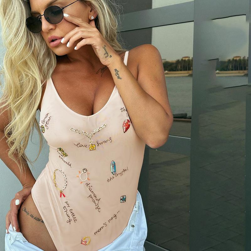 Ropa de Mujer Europea y Americana 2025 Verano Nuevo Estilo Tirantes Slim Estampado Sexy Malla Mono Grande sin Espalda