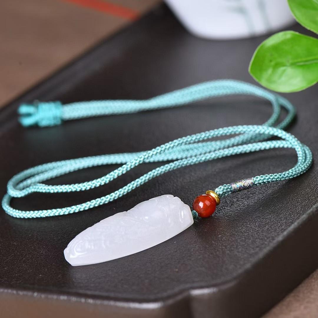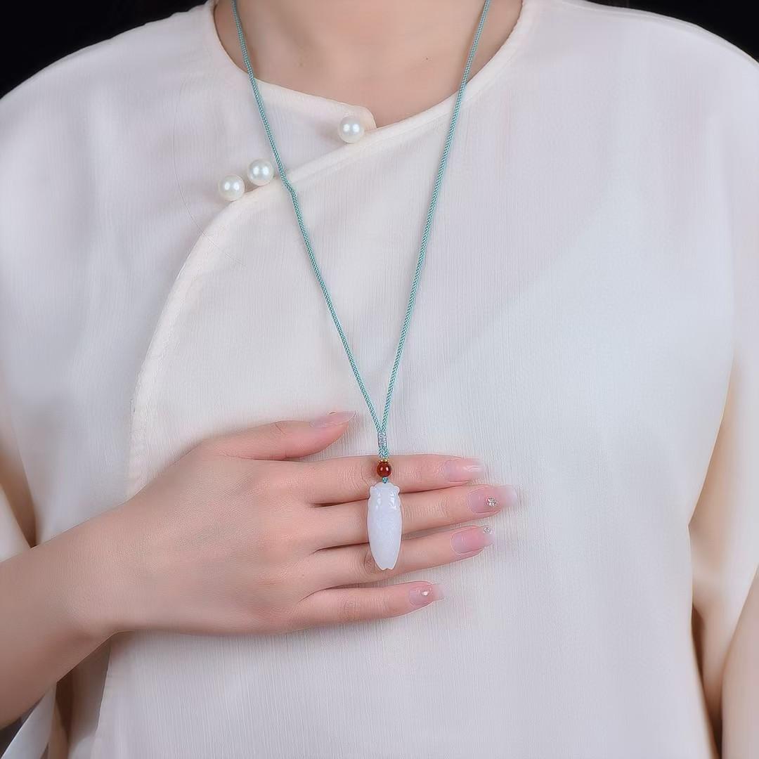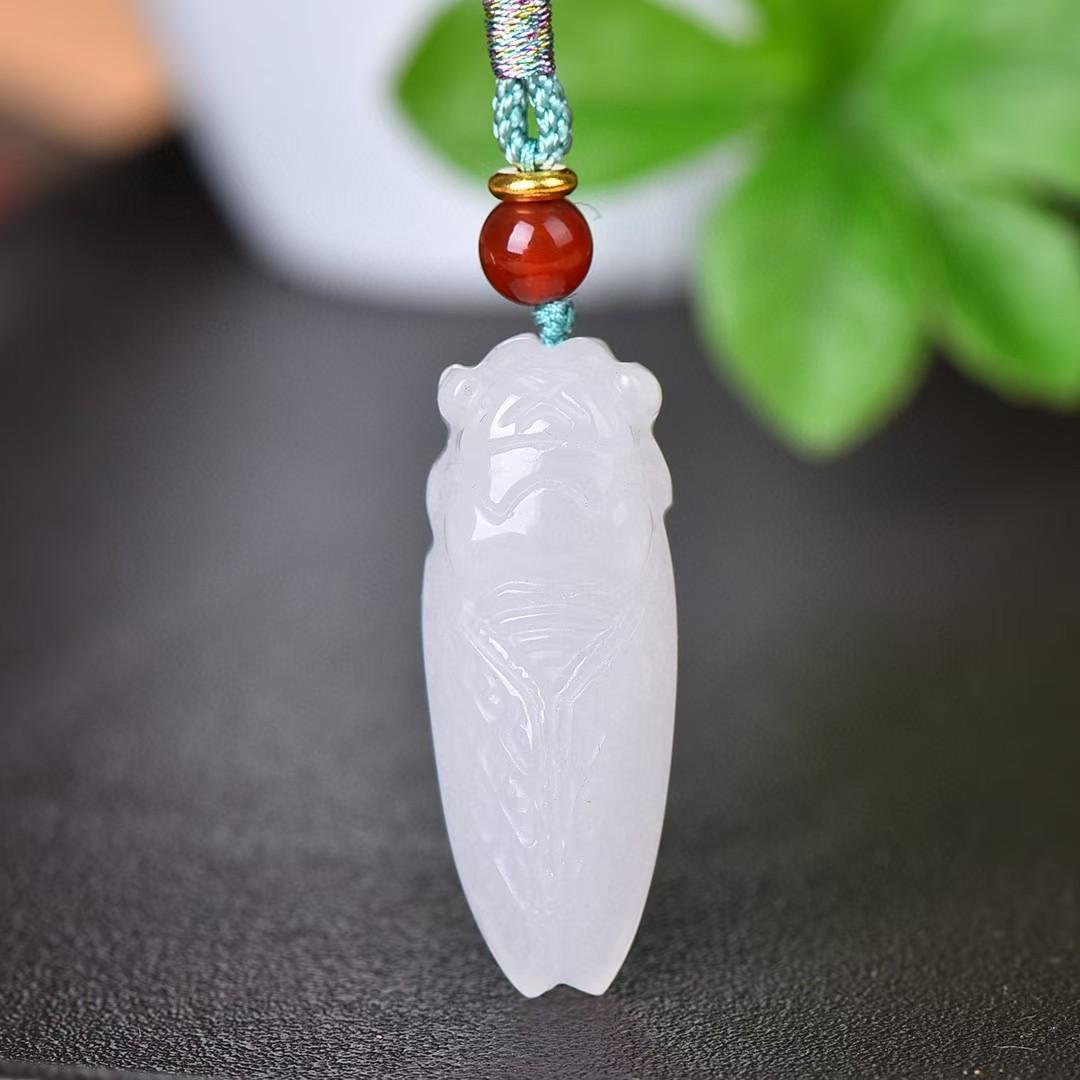 El Colgante de Jade Seda de Oro Mineral Crudo Natural "Cigarra" es un Impresionante Colgante de Jade