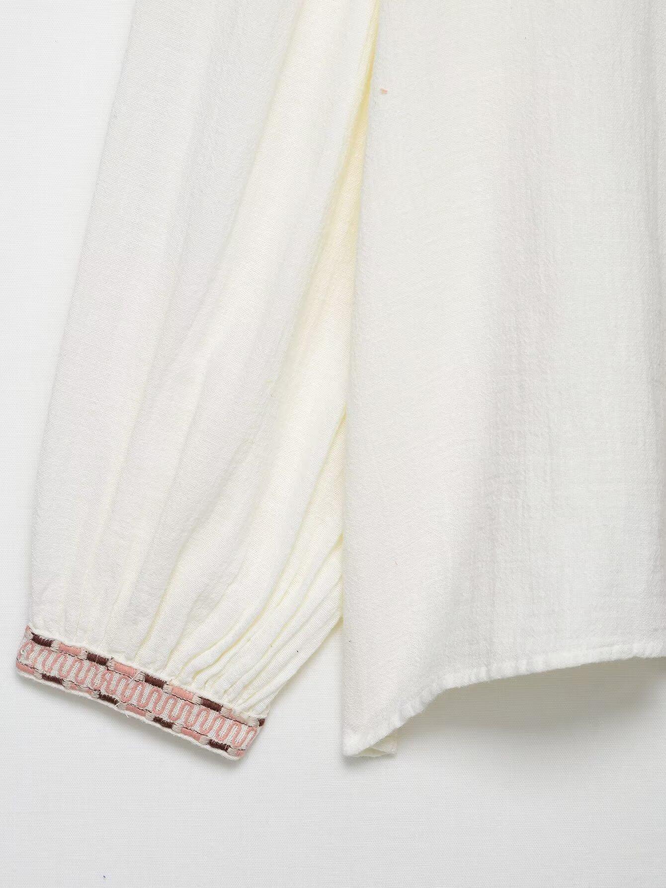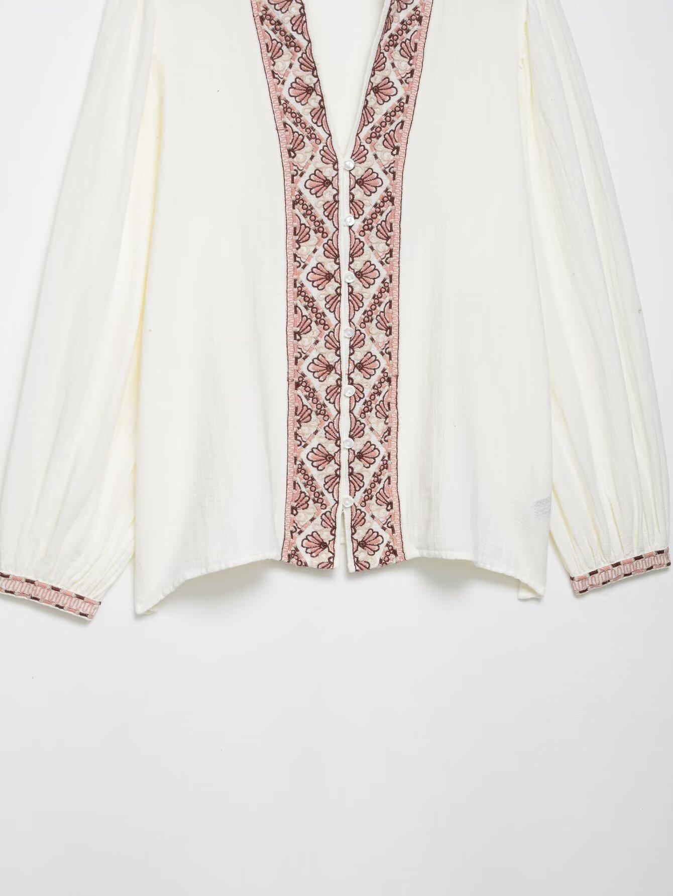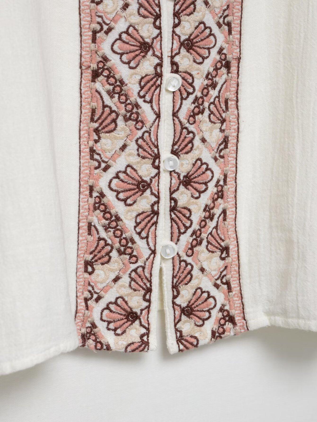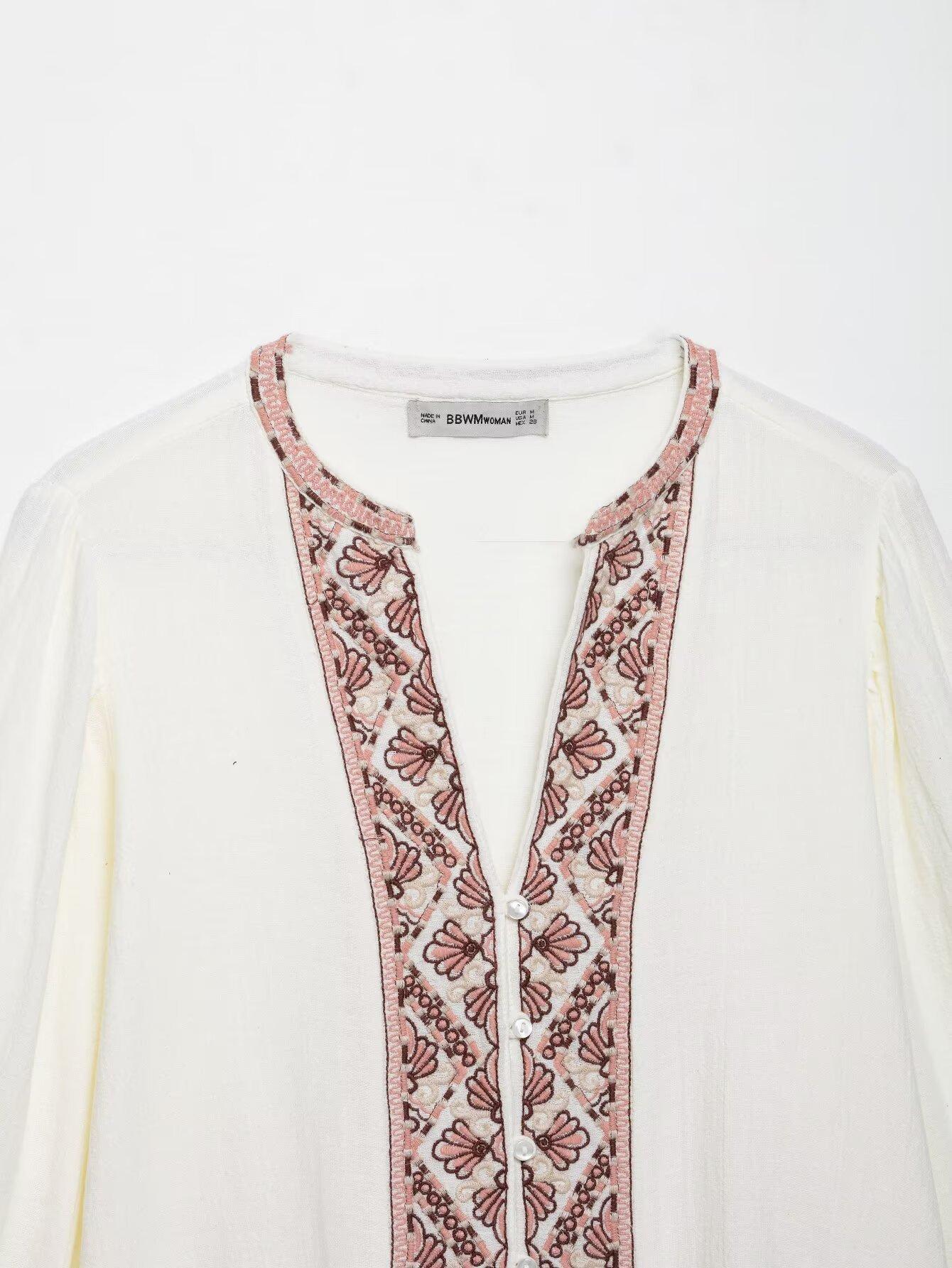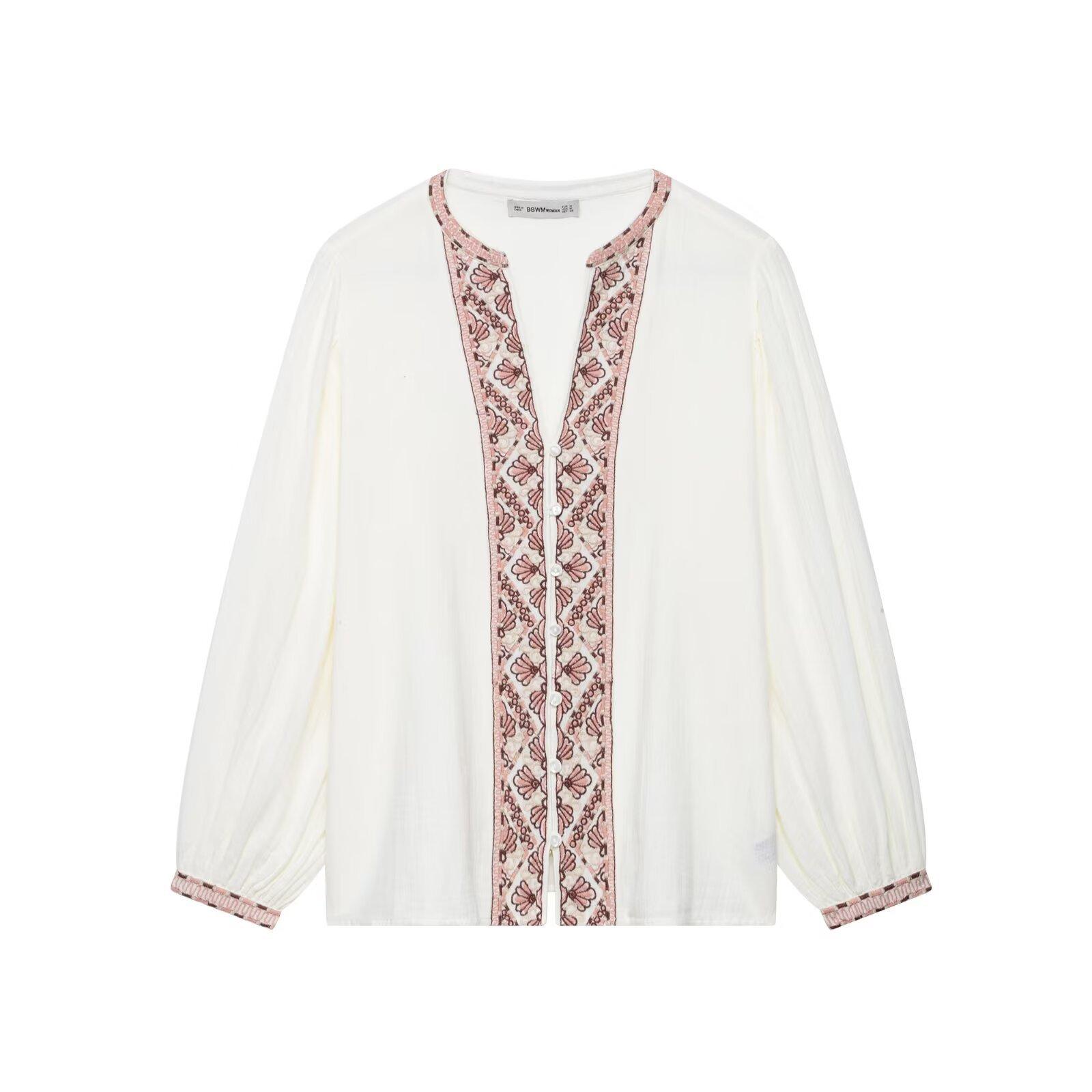 Compra Verano 2025 Nuevo Europeo y Americano Transfronterizo Moda Urbana para Mujer Casual Versátil Camisa Bordada de Manga Larga W03 6473 al por mayor en Joom.pro