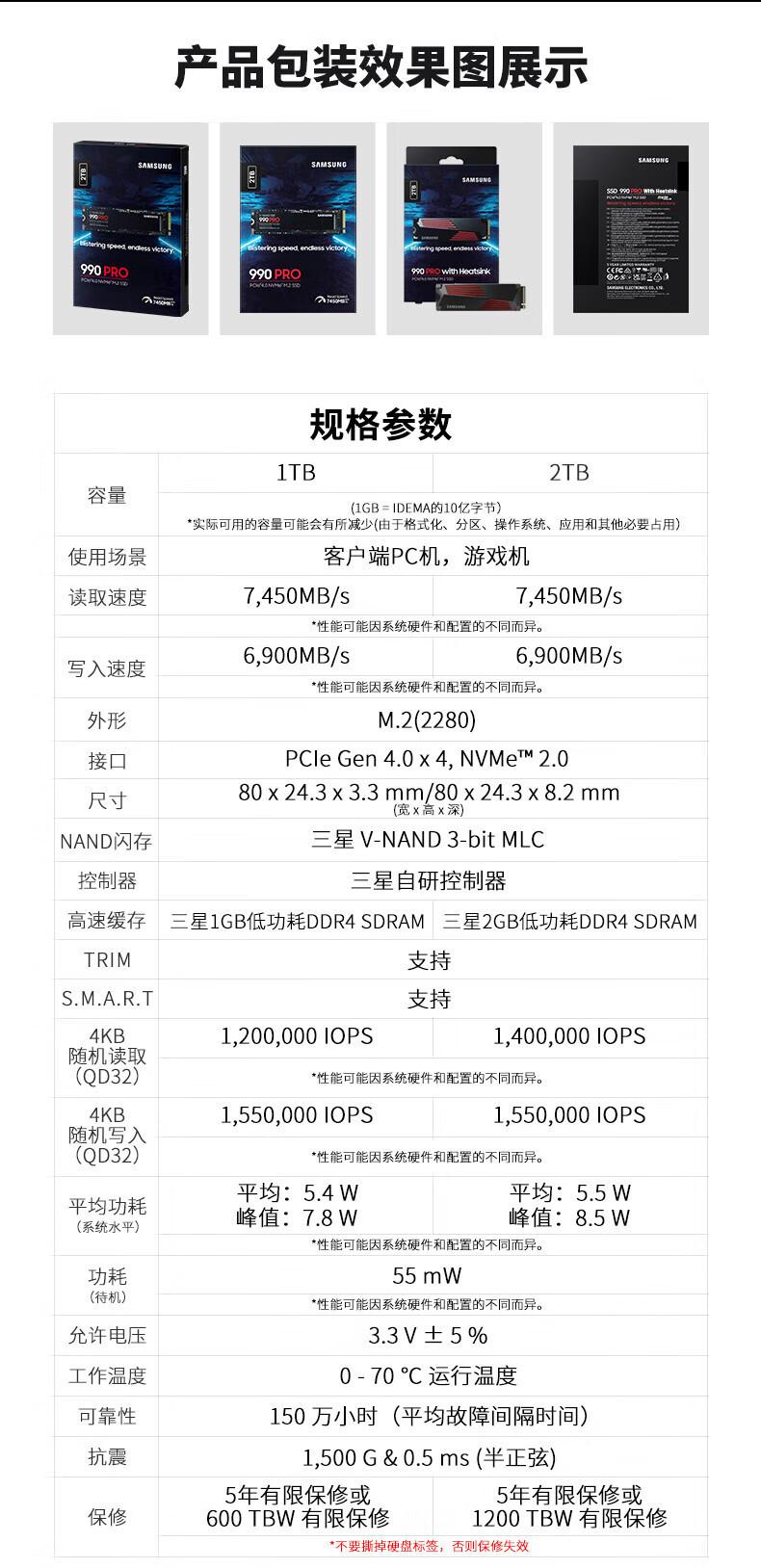 990PRO 1TB (MZ-V9P1T0BW), 990PRO 2TB(MZ-V9P2T0BW), 990PRO 4TB