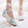 Elegantes Zapatos de Tela de Pekín Antiguo con Peonía, Estilo Étnico, Zapatos Hanfu de Disfraz Antiguo para Mujer, Zapatos Bordados Antideslizantes con Aumento de Altura Oculto